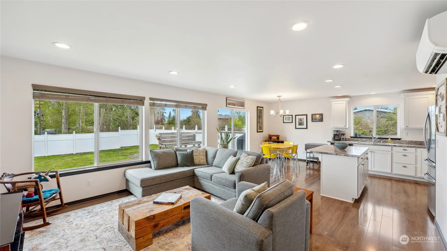 This newer construction home will absolutely delight you. House features an open floor plan perfect for everyday living as well as entertaining. Large, fully fenced backyard provides plenty of room for activities, vinyl fencing provides durability from the elements. Primary bedroom features a walk in closet and en-suite with roomy shower. Den/office/hobby room has a closet for bedroom possibility. Mini-split ductless heat pump system provides both heat and A/C for those warmer summer days. Community of Bon Air features pool, clubhouse and beach access. Have it all on Whidbey Island!