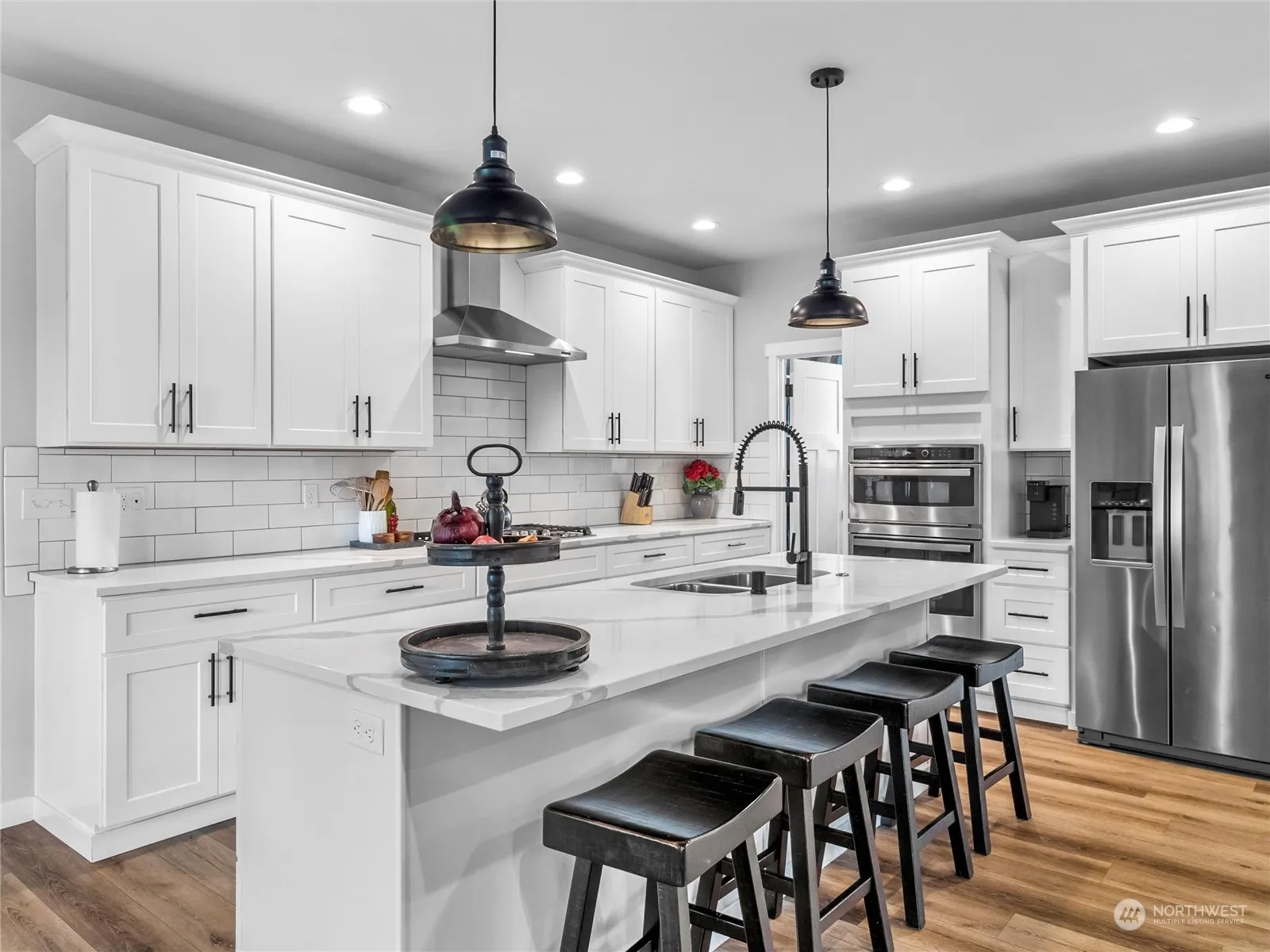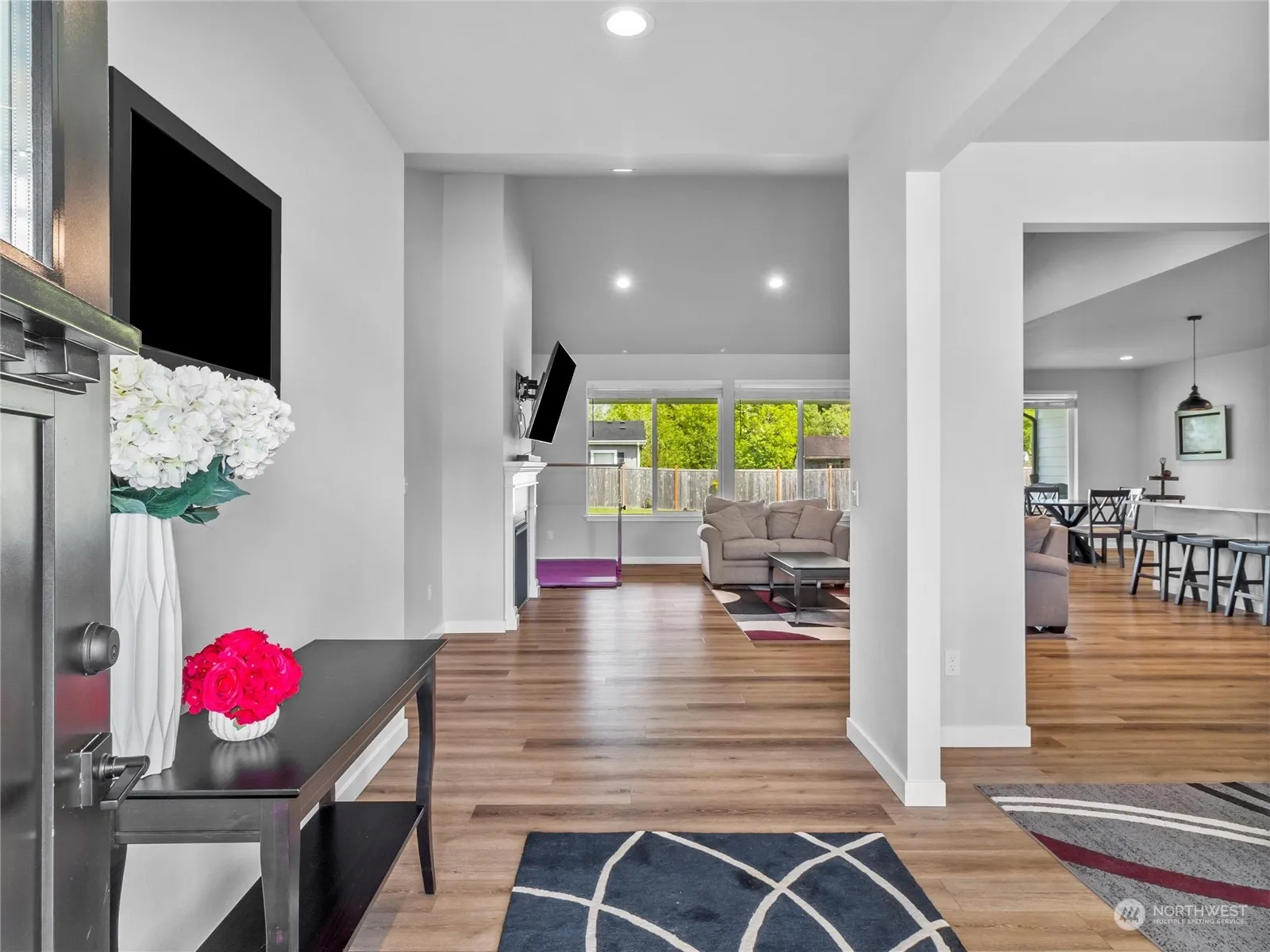 Introducing your dream home: a stunning, modern masterpiece with a split bedroom floor plan that offers both privacy and luxury. This residence boasts a chef’s kitchen, perfect for culinary enthusiasts, with top-of-the-line appliances and sleek quartz countertops. One of the standout features of this property is the impressive 10′ wide by 12′ high RV bay, seamlessly integrated into the 3-car attached garage, providing ample space for all your vehicles and storage needs. Step outside to enjoy the large, covered outdoor areas at both the front and back of the home, featuring elegant pine ceilings that add a touch of rustic charm. This home is not just a place to live, but a sanctuary that combines modern design with functional elegance.