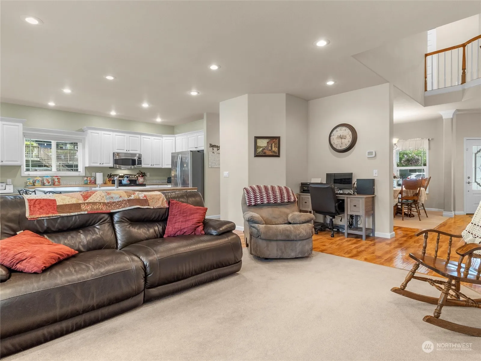 This beautifully maintained, one-of-its-kind home is ready for new owners! With over half an acre of space and custom-made fire-pit seating, this home provides a quiet, shaded oasis on a dead end road. The primary bedroom boasts its own ensuite bathroom with soaking tub, a walk in closet, and French doors that lead to the open living space. Christmas morning will be magical with the vaulted ceilings and staircase in the entryway – plenty of room for your dream tree. Upstairs, you’ll find another two bedrooms plus a giant bonus space over the garage that has been used as a fourth bedroom. Other features of the home include a main floor office, welcoming front porch, large two-car garage, and river rock accents. Contact your agent today!