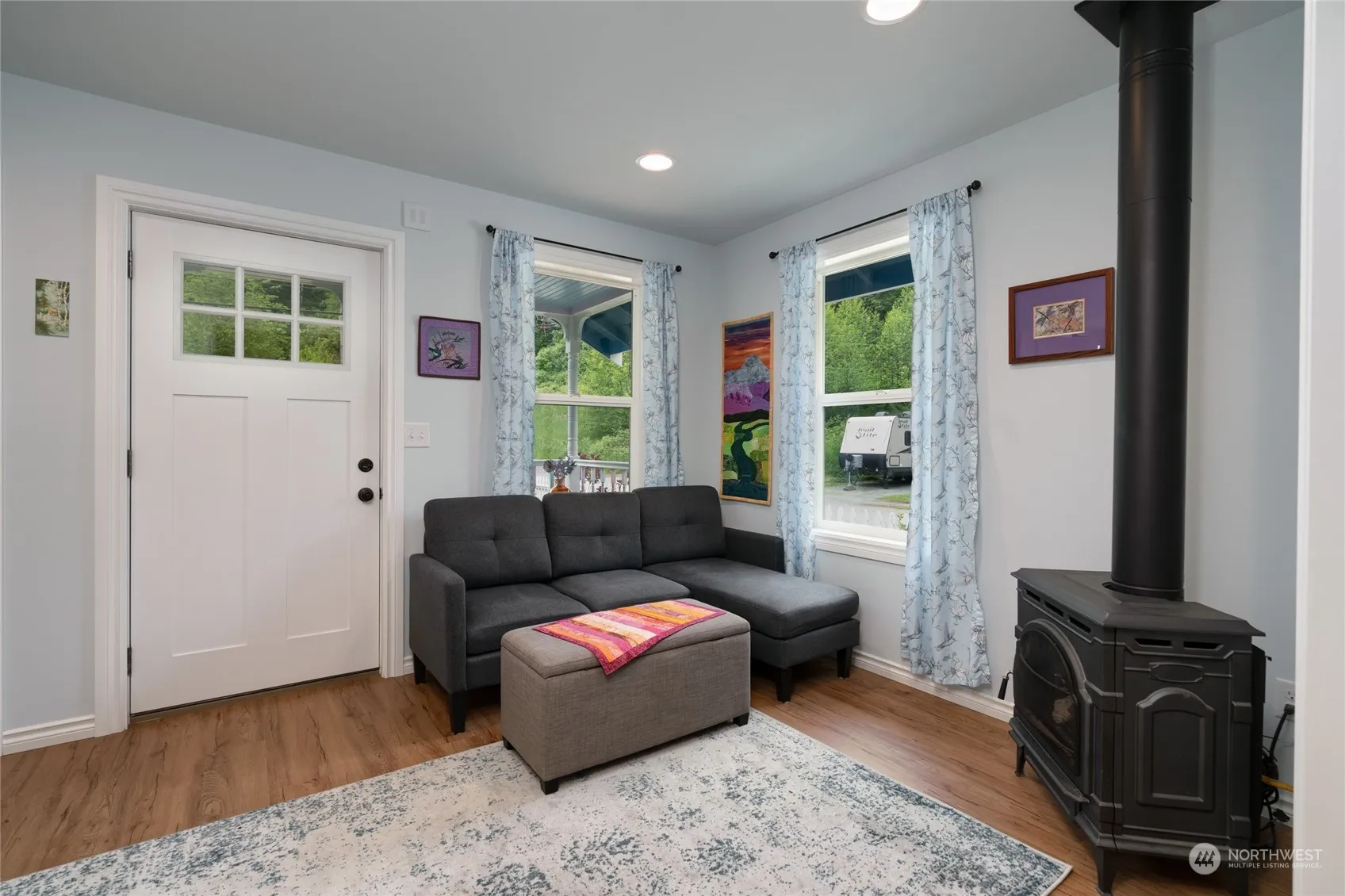 Charming 2-year-old home in Concrete! This adorable home boasts 615 sqft of optimized living space with 2 cozy bedrooms and propane fireplace. Enjoy modern LVP floors, solid core doors, and durable Hardi-Plank siding. Full bath includes a stackable washer and dryer for added convenience. The kitchen features soft-close cabinets, a stylish tile backsplash, stainless steel appliances including a gas range and pantry space. Outside, you’ll find a fenced yard, a great covered front deck, fruit trees, berries and an outbuilding with power for your hobbies or additional storage. This turn-key home is move-in ready and just a short walk to downtown, shopping, entertainment, schools, and outdoor recreation. Don’t miss out on this gem!
