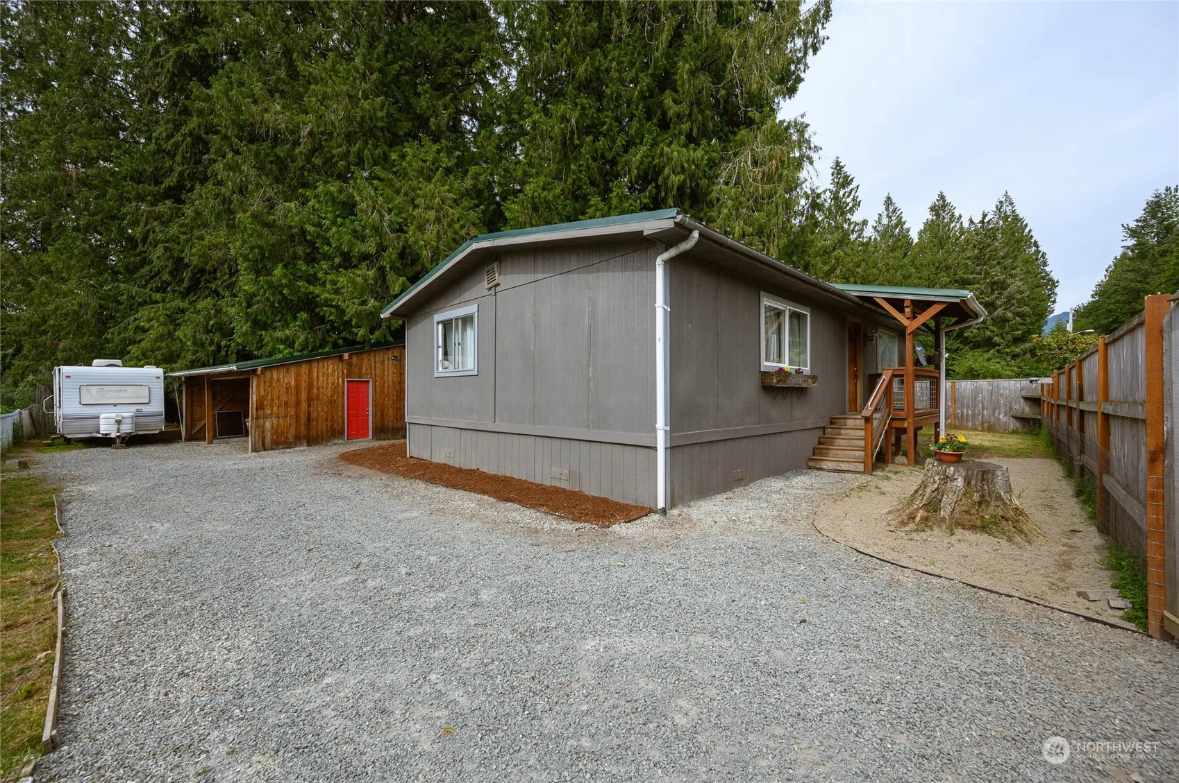 Charming Home with River and Mountain Views! Nestled on a 0.57-acre lot with mature evergreens, this updated 2-bed, 1-bath home offers tranquility and outdoor adventure in Concrete, WA. Enjoy new LVP flooring, fresh paint, modern fixtures, a custom walk-in closet, and new laundry area. The expansive back deck is perfect for entertaining, and the property includes a covered carport with potential loft storage, 2 covered entries, and RV hookups. Relax by the fire pit, explore nearby Skagit River, or enjoy the serene mountain views. This home is your gateway to nature and peaceful living. Community HOA 100$yr.
