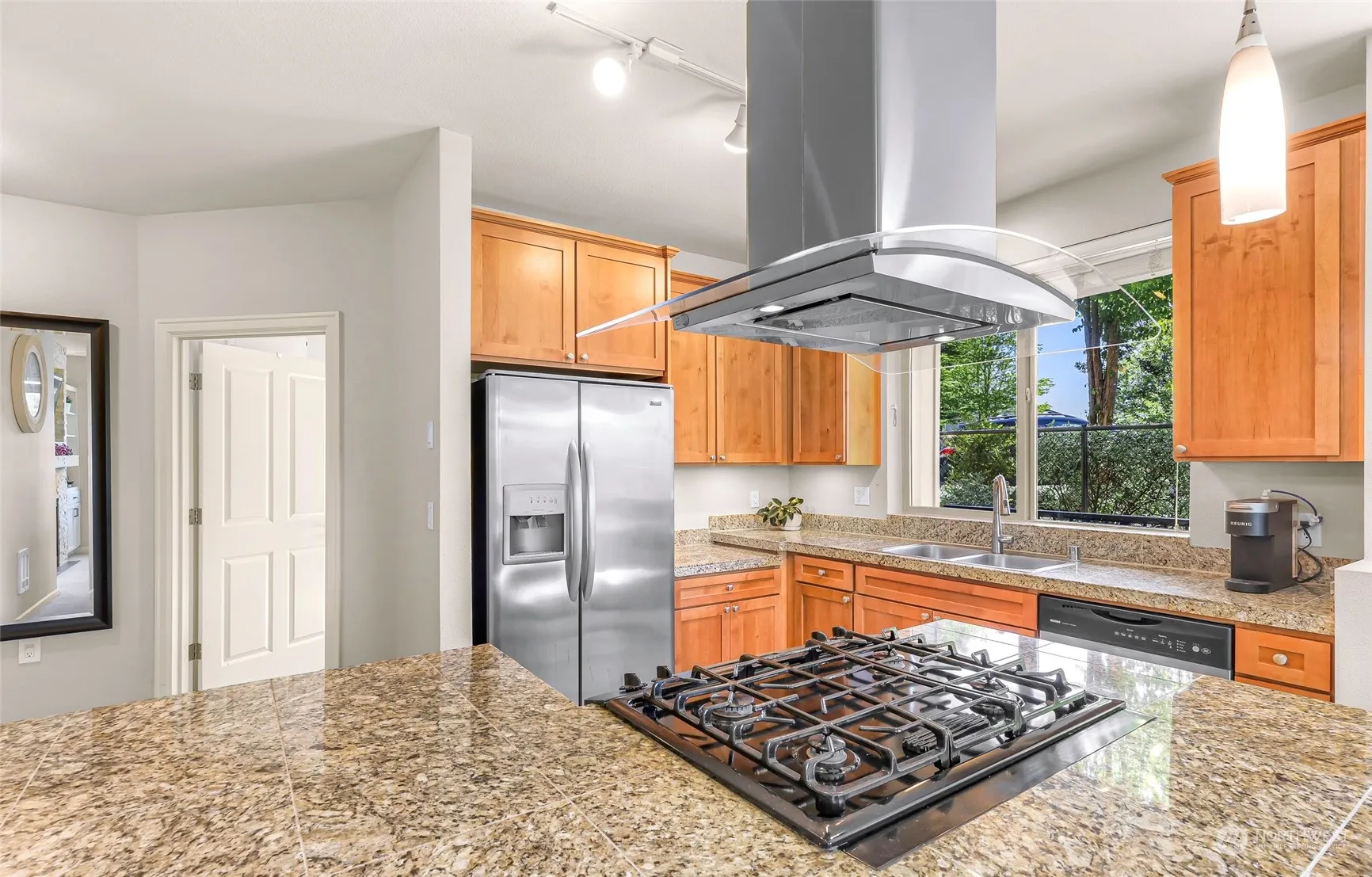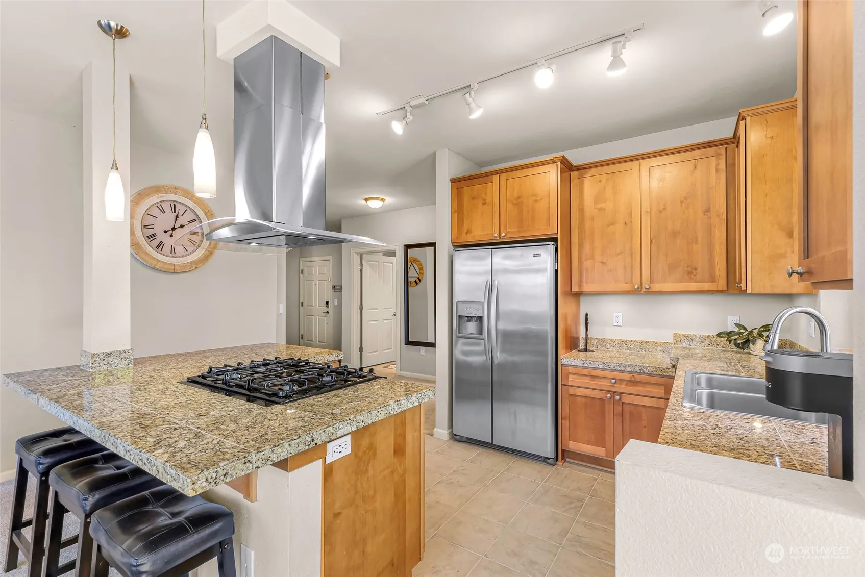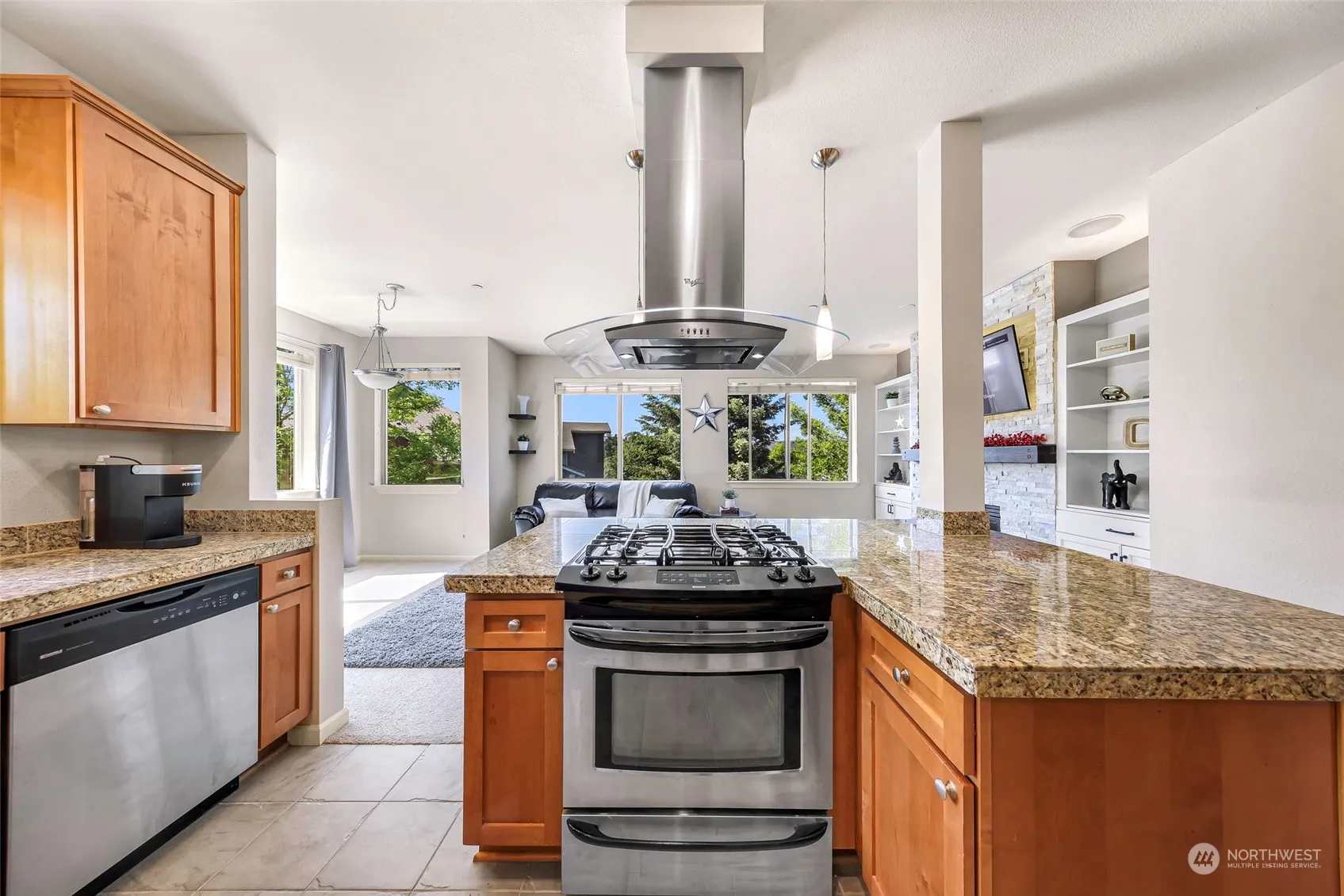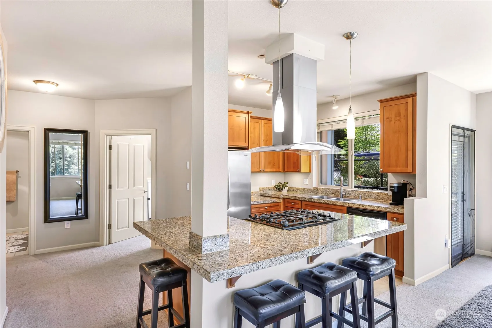 Rare ADA corner unit located in the heart of Newcastle! This beautiful 2 bed & 1.75 bath condo features a gorgeous kitchen w/ granite counters, large living room w/ a cozy gas fireplace & balcony for entertaining, 9′ tall ceilings. Spacious primary has an ensuite & walk-in closet. In-unit laundry with ample storage throughout. Secure garage with 2 assigned parking space & storage unit. Secure entrance & elevator for easy access! Natural gas, water/sewer & garbage included in HOA dues. Nearby trails, groceries shops &restaurants, Newcastle Commons, & YMCA. Easy commuting to I-5, 405, Golf Club & Bellevue Factoria Mall. No rental cap!