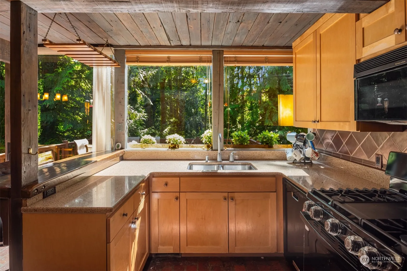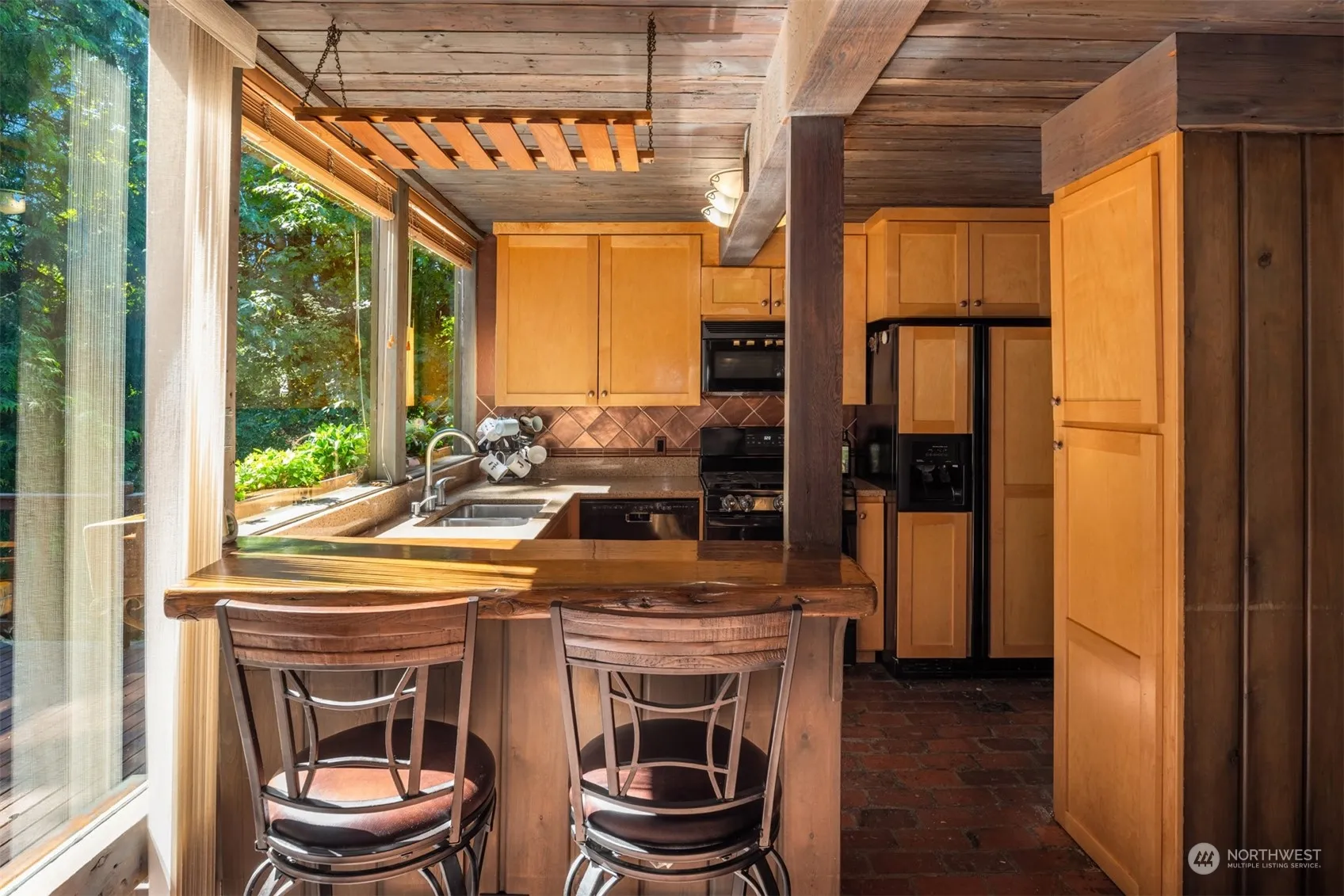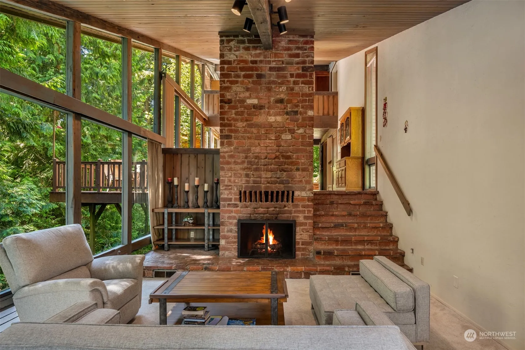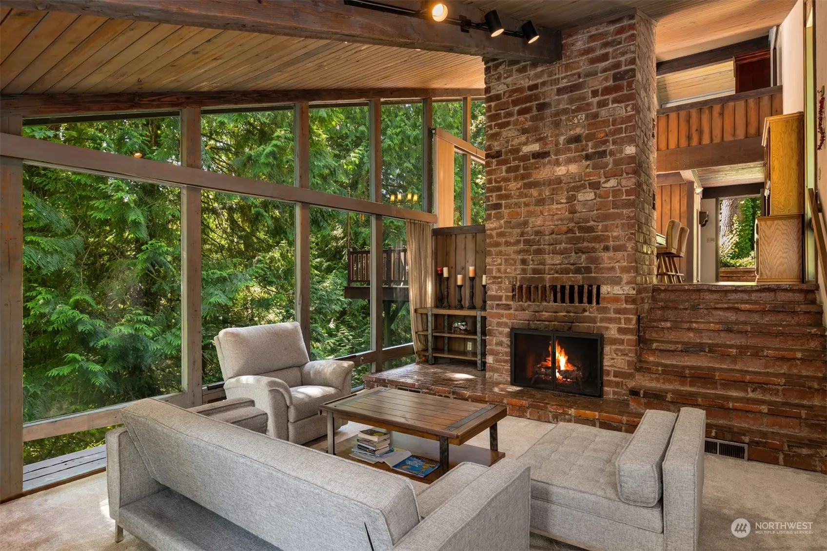 One of a kind unique property sits nestled amongst the trees & two creeks, giving the ultimate privacy & serene setting. Its hard to believe you can find this Newcastle charm situated on large 1.77 acre lot, just 10 minutes to Downtown Bellevue! Designed & built with repurposed doors & original glass/brass materials from the hotel that was knocked down to create the Kingdome! FULL wall of South facing windows, allowing natural light to fill the home! Main living area has beautiful brick floors, all leading out to multiple outdoor entertaining decks & patios! Two wood burning fireplaces, loft style Primary, Bonus/Media Room, & workshop. New development in the area, road improvements including bike lane, create increasing area home values.
