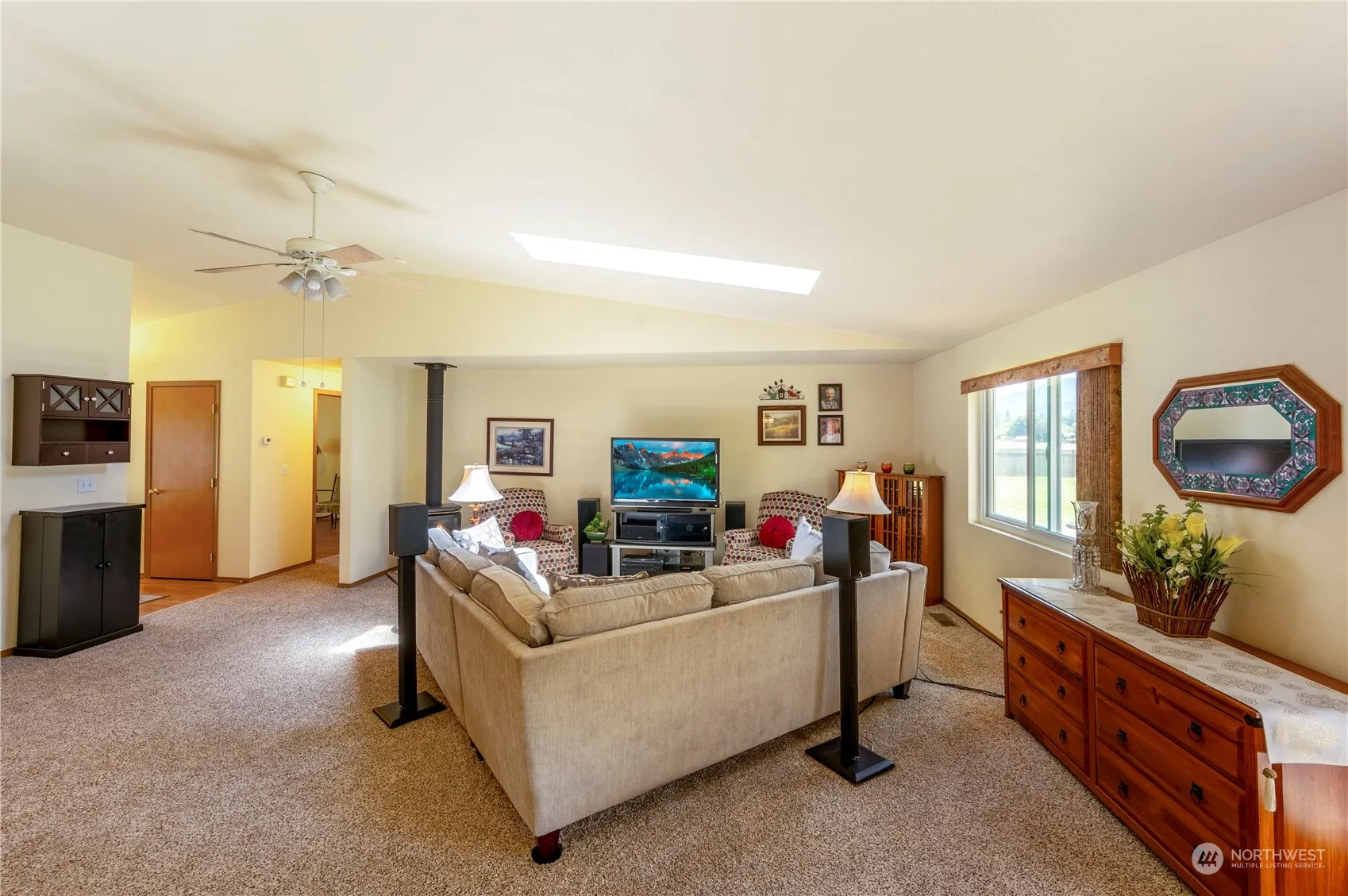 Nicely maintained single level 3 bedroom 2 bath home on manicured 2.51 acres. This home has spectacular mountain and territorial views in every direction. Custom built home features: fully paved driveway, covered front porch, large deck in the back. Vaulted ceilings with plenty of light coming through skylights and new Anderson windows. New Roof, new carpet, new kitchen tile floors and wood laminate floors in the bedrooms. Fully fenced orchard with mature fruit trees. Multiple sheds, and also a fenced garden area. Plenty of room for RV and boat parking. Cascade trail across the street!
