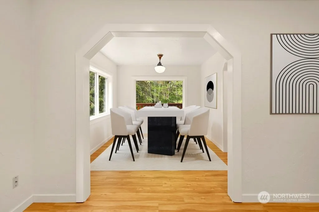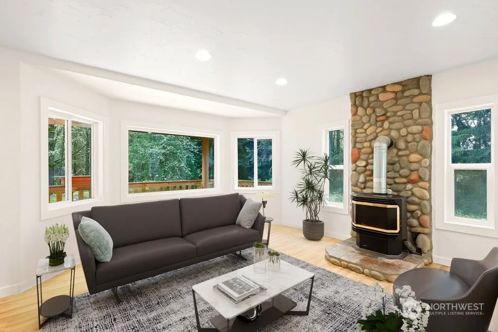 Welcome to this 3+bed, 2.5 bath home w/a full basement MIL suite. Entry from the large covered porch, leads you into the main living areas w/great flow to the dining room, open kitchen to informal living area. Upstairs is the large primary bedroom w/5 piece ensuite, 2 guest rooms, a den and full guest bath. The fully completed basement adorns the MIL w/full kitchen, living area and bathroom. The amenities keep coming w/a generously sized 1100+ SF shop that is plumbed & permitted for a 1/2 bathroom + covered carport, Property offers a tranquil escape, yet it’s conveniently located just minutes from downtown Kingston, Kingston Edmonds Ferry, and the Seattle Fast Ferry. Much of the home utilizes wood milled directly from trees on the property.
