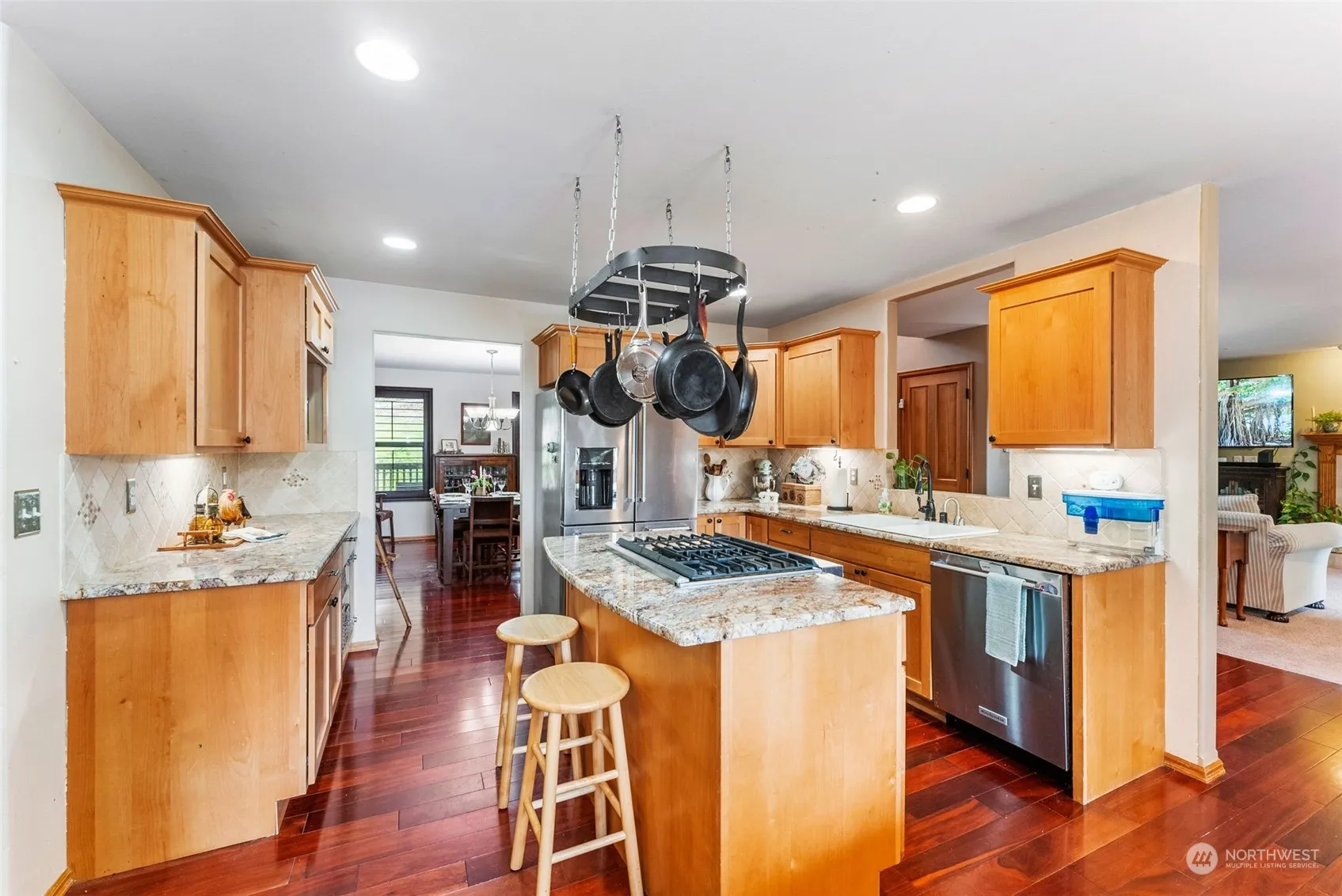 Experience PEACEFUL living in this exquisite cliffside beach community, featuring beautiful views of the Olympics. This spacious 3 story mini-mansion boasts five large bedrooms, (4 bedroom septic) offering the ambiance of living amidst the trees. Enjoy the best of both worlds with privacy and proximity to town. Spread across three levels, the home includes two primary bedrooms, each with five-piece baths and jetted tubs. The expansive suite on the bottom floor features a spacious walk-in closet, making it ideal for multi-gen living. Fully private fenced backyard perfect for garden enthusiasts. Entertain year-round on the large deck. This home is a perfect blend of elegance and functionality, awaiting your arrival.