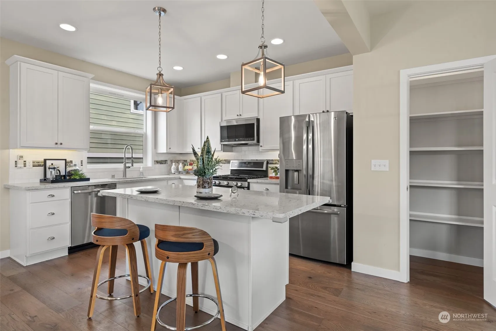 Discover luxury living in this stunning 3-BD, 3.5-BA, 2,770 sq. ft. home, the original model in the plat, boasting countless upgrades. Nestled on a corner lot, this residence offers a bright, open floor plan enhanced by engineered hardwood & vinyl flooring. The modern kitchen features stainless steel appls, 42-inch cabinets, & gas range. Finished basement provides versatile space for guests, home office or 4th BD. The primary suite is a retreat w/mini-split system for customized comfort. The garage has epoxy-floor w/ample storage & extra parking space. Outdoor living is a delight w/fully fenced backyard, deck/patio & sprinkler system. Located a short distance to the ferry, this home offers an ideal blend of comfort, style, and convenience.
