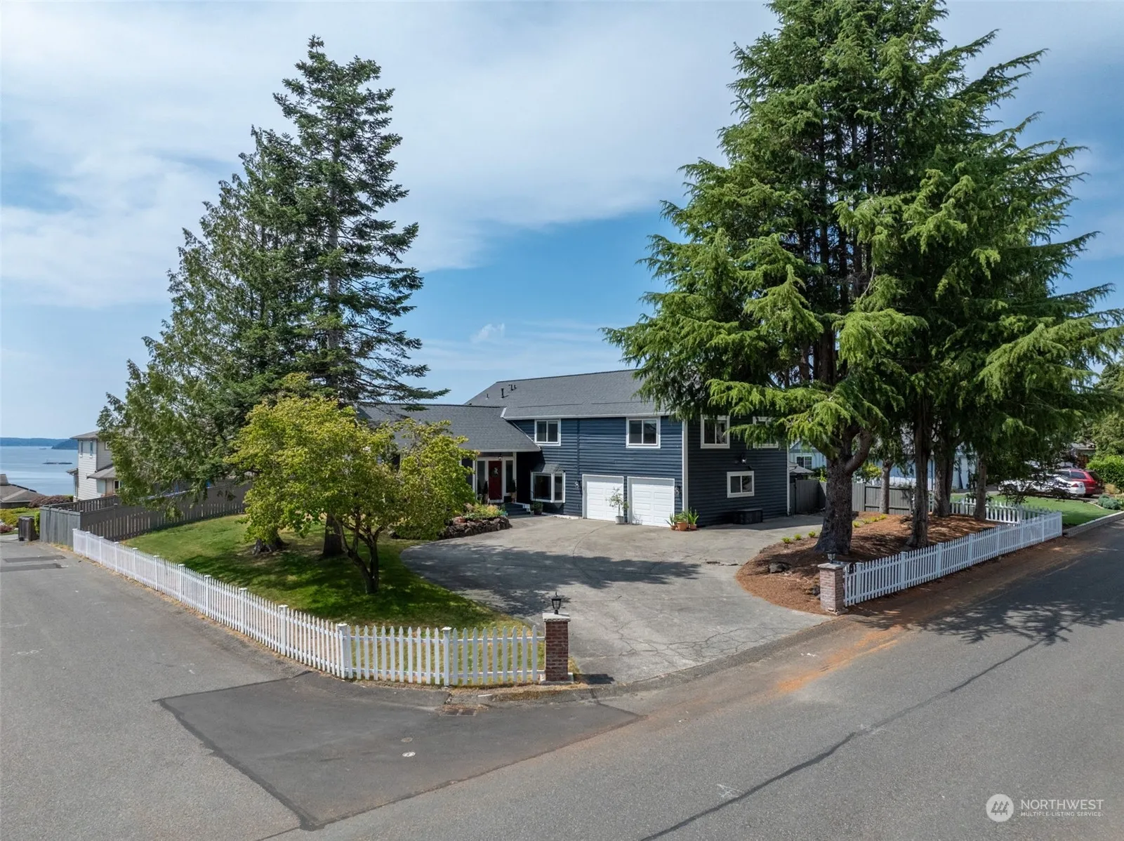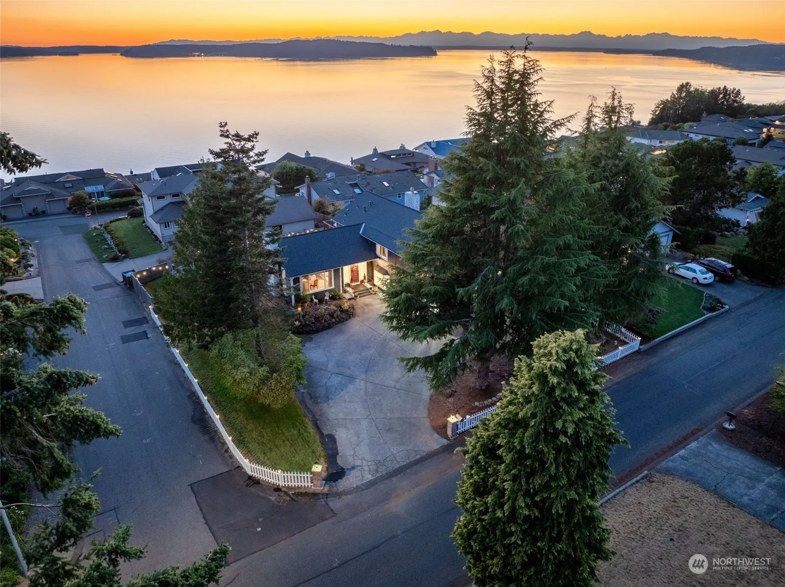 Welcome to Steilacoom, WA, a ultra-desirable oceanfront small town in Puget Sound. This rare-find home features a picturesque white-picket fence on a quarter-acre lot, steps from waterfront, beach, dining, shops, schools, ferry, Chambers Bay Golf, Clover Park+. Perched on a hill, it boasts stunning 180-degree Water and Olympic Mountain views. Main Flr Den/Bdrm + 3/4 Bath! Fully renovated, it blends modern upgrades with original charm. Inside, enjoy a great room with ocean views, cozy family rm, dining rm, and gourmet kitchen. The primary suite impresses with a fireplace, spa-like bath, walk-in closet, and private deck showcasing breathtaking views. A/C, ADU Potential, Multi-Generational. Appraised for $970K – listed under value, hurry!
