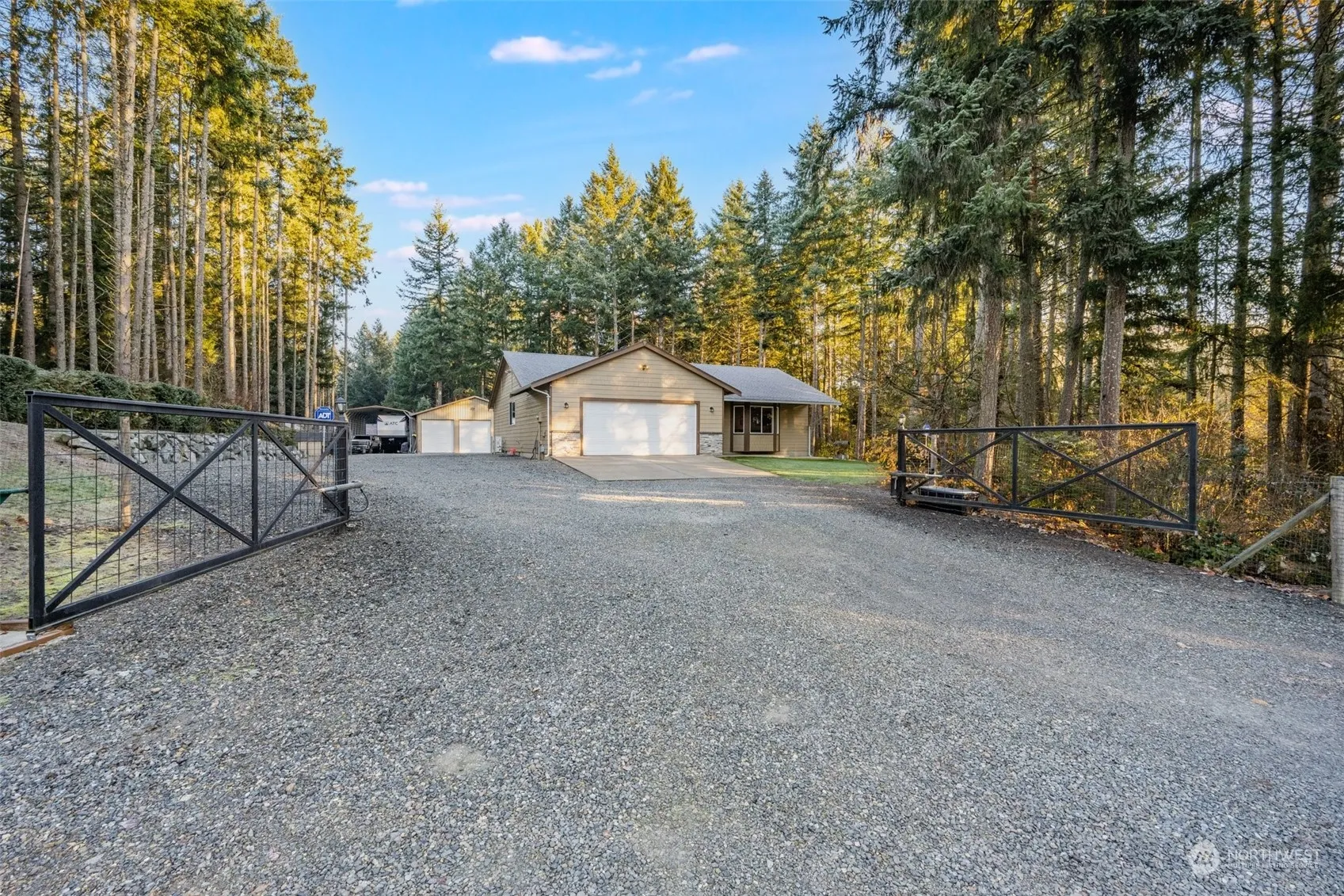 The Shop and home you’ve been waiting for is here! Introducing this ideal single-level home w/attached garage and additional polebuilding with tons of extra storage, parking space & RV parking. Step inside the front door to discover open-concept dining, living & kitchen with OVERSIZED eat-in island complete with freshly updated granite countertops, appliances and flooring. The interior radiate’s a sense of modern charm and luxury finishes. Beyond the electric gated entry and fully fenced property lies tasteful landscape lighting along the retaining wall along with a recently hydroseeded lawn. This home has so much to offer! Accepting backup offer’s.