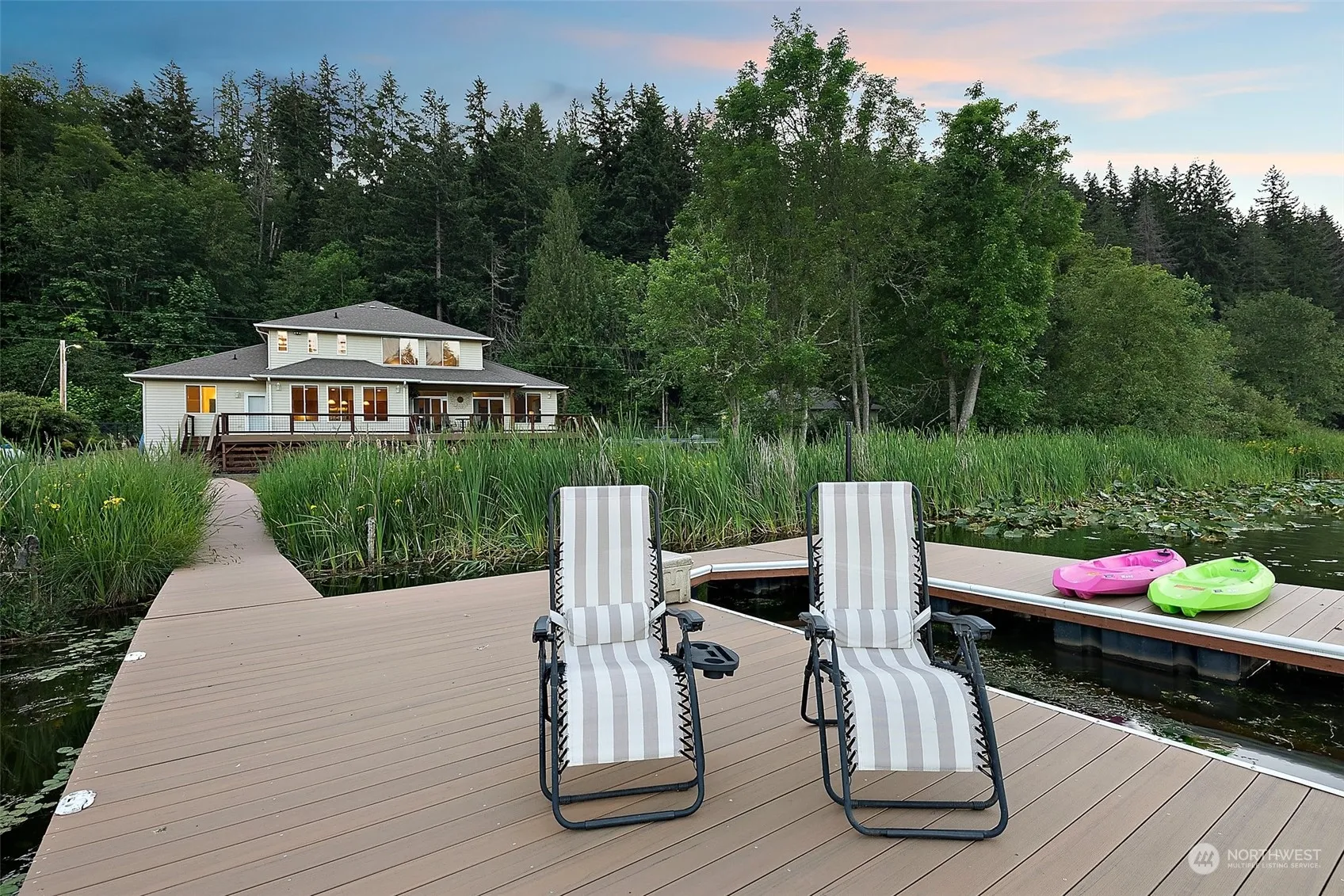 LAKE LIVIN’, This custom home is a fishing/car enthusiasts dream or maybe, you want to soak up the beauty. The detached shop (24×36) has its own gate, propane tank, furnace & storage for year round use. So much to list, please ask you favorite realtor for upgrade list, EV charge, A/C, boat lift, wired for gen. Use the mudroom/utility hall before entry on lake/shop days. Entertain in the expansive kit & great room w/2 sliders to the NEW Trex deck. Enjoy a fire next to the lake w/200ft of waterfront & a new trex (60k) private dock. You could utilize the main floor bonus room as MIL. Quite nights in the den. Upstairs we go, jaw dropping views from the primary oasis w/a 5pc ba. Across the hall are 2 generous size bedrooms & 1 full ba. Come out!