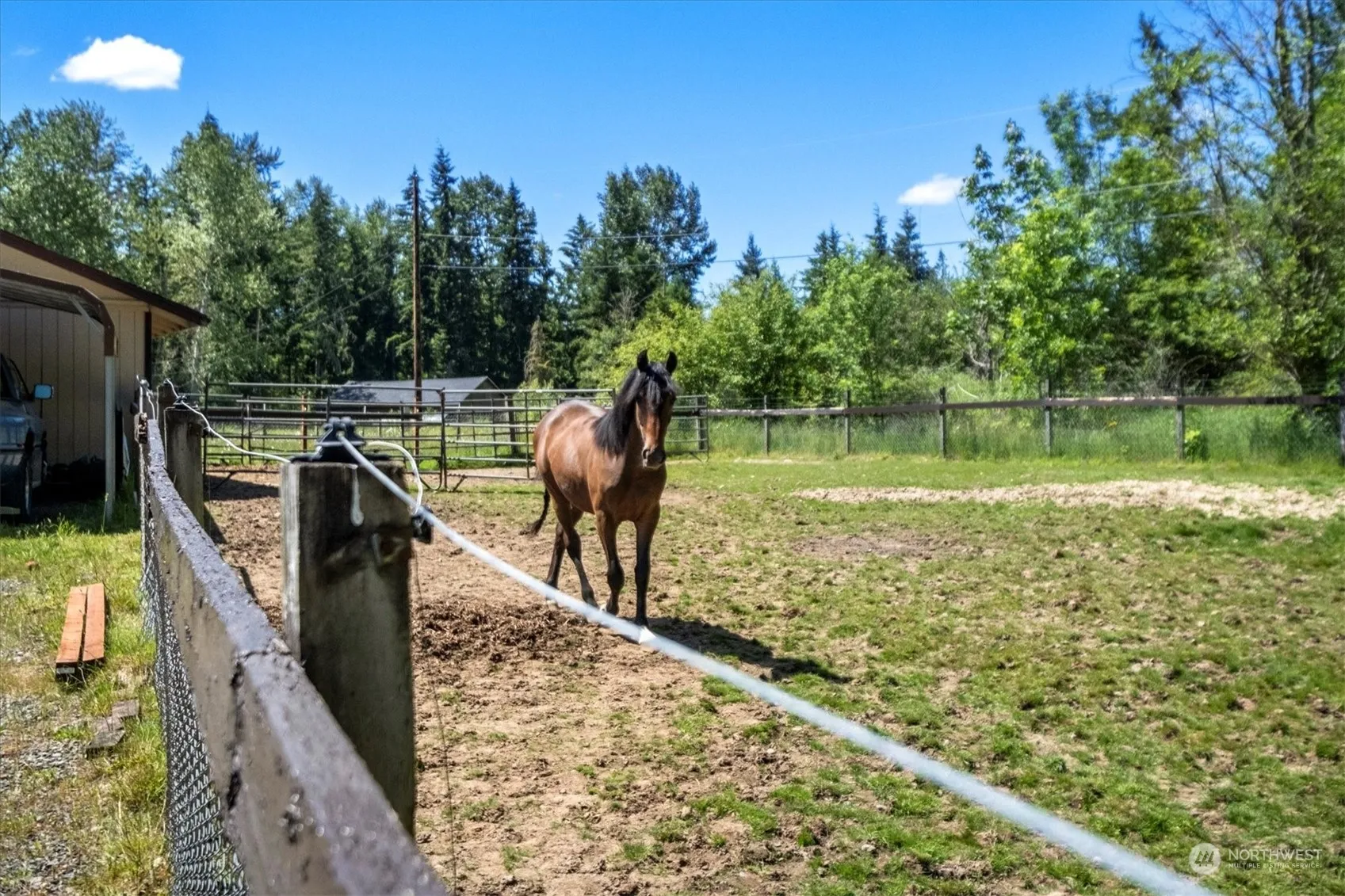 FINALLY a home for you and your horses on a budget that you can afford! House + barn + sand arena + fenced and crossed fenced pastures, this property MAXIMIZES the 2 acres to the fullest! 40×36 Barn boasts 5 stalls + tack and storage, multiple paddocks/pastures, hot/cold water, fenced and hot wired. The 192×99 (+/-) sand arena is ideal, you can even get glimpses of Mt Rainier while riding. Home features 2 bedrooms + 1 bath, an open living concept, large utility room and a 2 car garage. Home has an enclosed fully fenced yard too and a deck. 2 additional carports, gated entry and a round-a-bout driveway, perfect for turning those trucks around with trailers. Whole house generator too. This property offers SO MUCH!