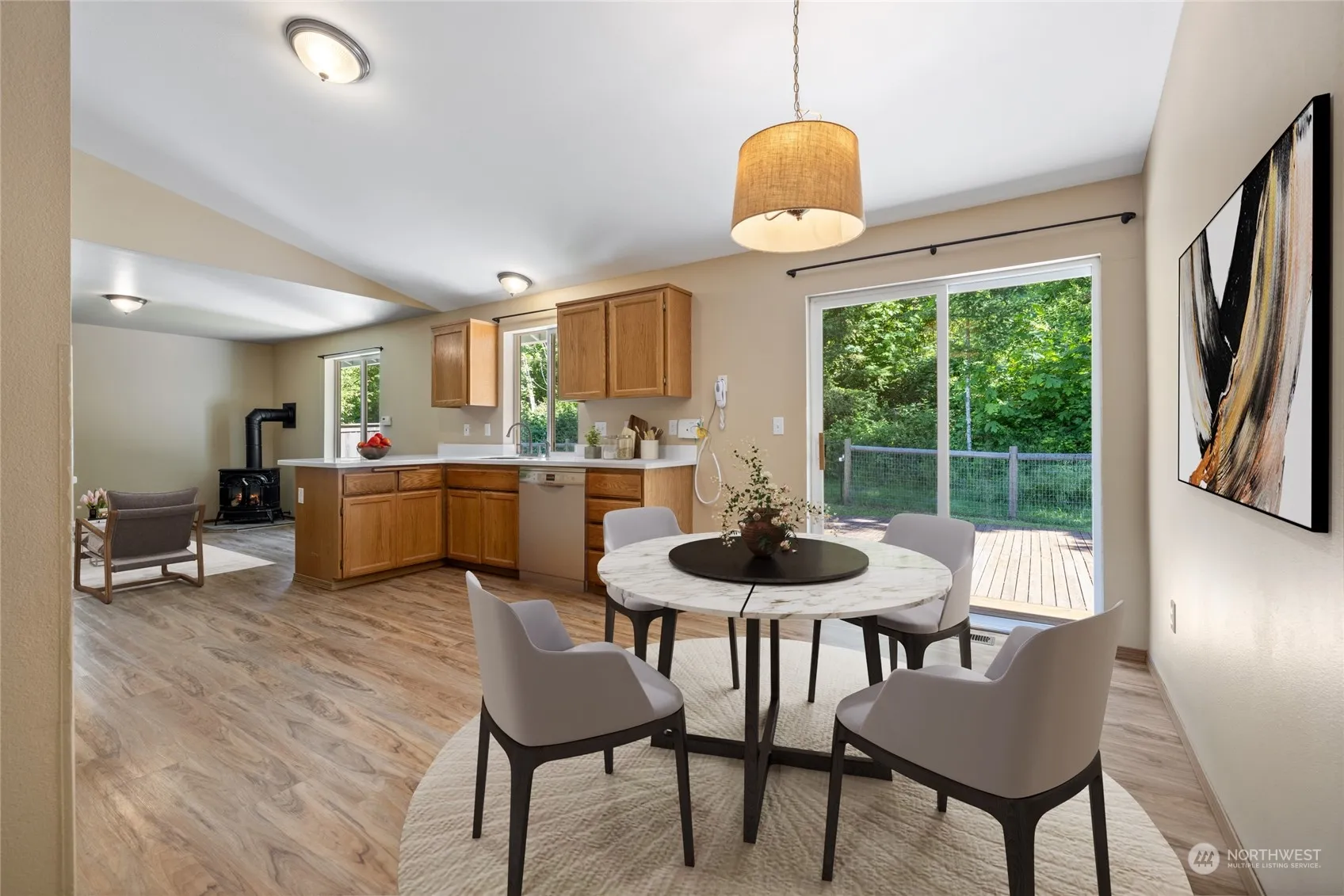 Discover this hidden gem in Eatonville! This charming 3-bedroom, 2-bathroom ranch-style home offers a serene retreat while still being in town. Nestled on a beautifully landscaped lot that backs up to a greenbelt, you’ll enjoy a sense of seclusion. This home is ideally located within a 5-minute walk to the Little Mashel River and within walking distance of all of Eatonville’s amenities. Find a cozy living room, and a spacious family room, for entertainment areas. The fully fenced backyard and a heat pump add comfort and convenience. Ready for summer enjoyment, this delightful home awaits its new owner!