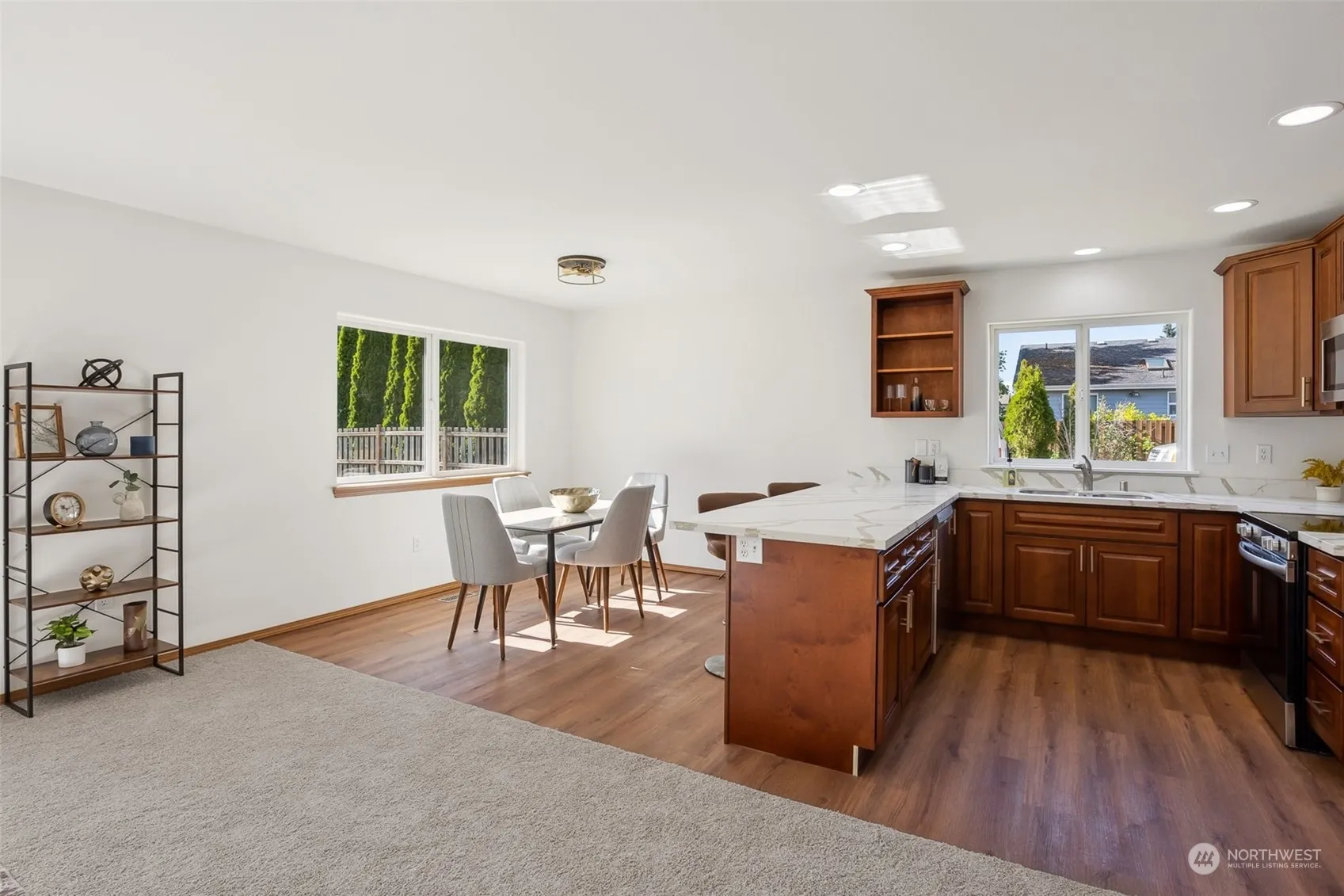 Welcome to 212 Antonie Ave – This great 3-bed, 2-bath rambler offers a welcoming front porch, light and open floorplan, and, best of all, has undergone extensive updates with new drywall, paint, cabinetry, vanities, countertops, kitchen appliances, doors, trim, lighting, fixtures, HVAC, and flooring! Nestled in a tranquil neighborhood on a dead-end road and steps from a park, the property features a fenced 0.26-acre lot and a 2-car garage. Located in the Town of Eatonville, just a short drive from Puyallup, this home offers a perfect balance of serenity and convenience, with easy access to amenities and effortless commuting via Meridian and Hwy 7. Come see this gem before it’s gone!