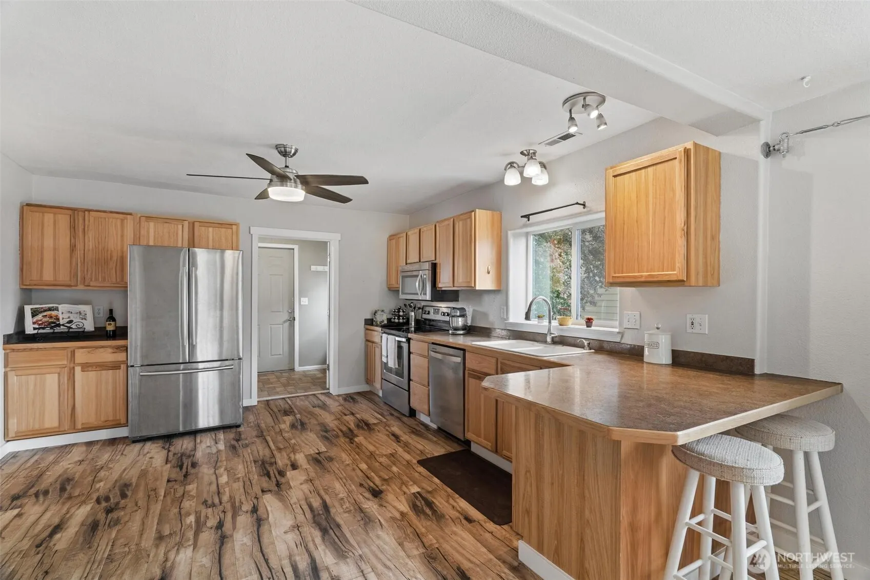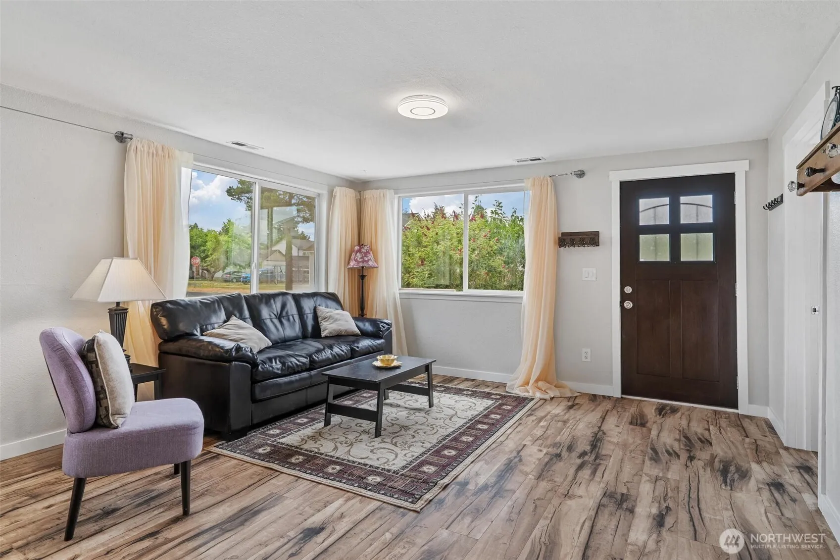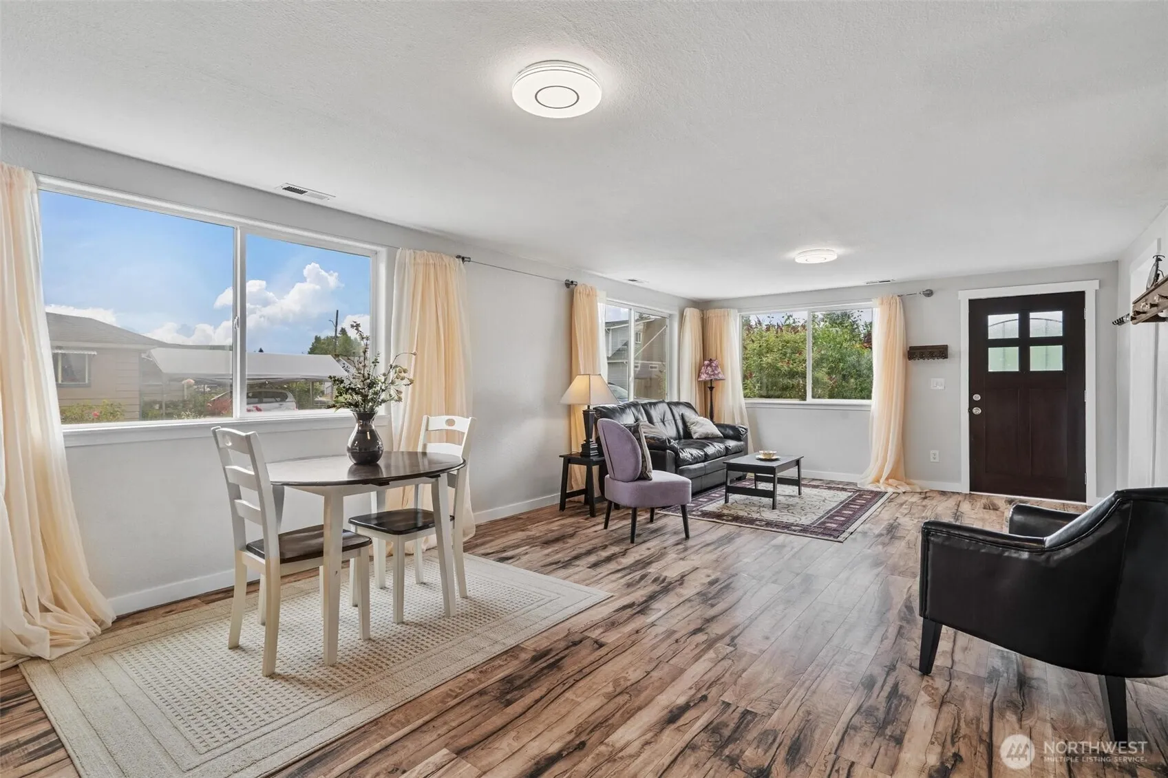 Charming Centralia home is Priced to Sell. Open concept home features 3 Bd & 2 Bth with attached garage & fully fenced backyard w/alley access, garden space & playset. The Primary suite w/attached 3/4 bath is on upper level which provides privacy from the other rooms & has space for an office area too. The main level features 2 beds & 1 full bath with easy care laminate flooring. Home feels spacious and bright with large windows. The large pantry and utility room provides great storage. There are attractive screen doors for both front and back for a lovely cross breeze. Home has forced-air heat, newer roof, on-demand gas water heater, cement plank siding, newer exterior paint & vinyl windows. Check out video tours and floor plan.