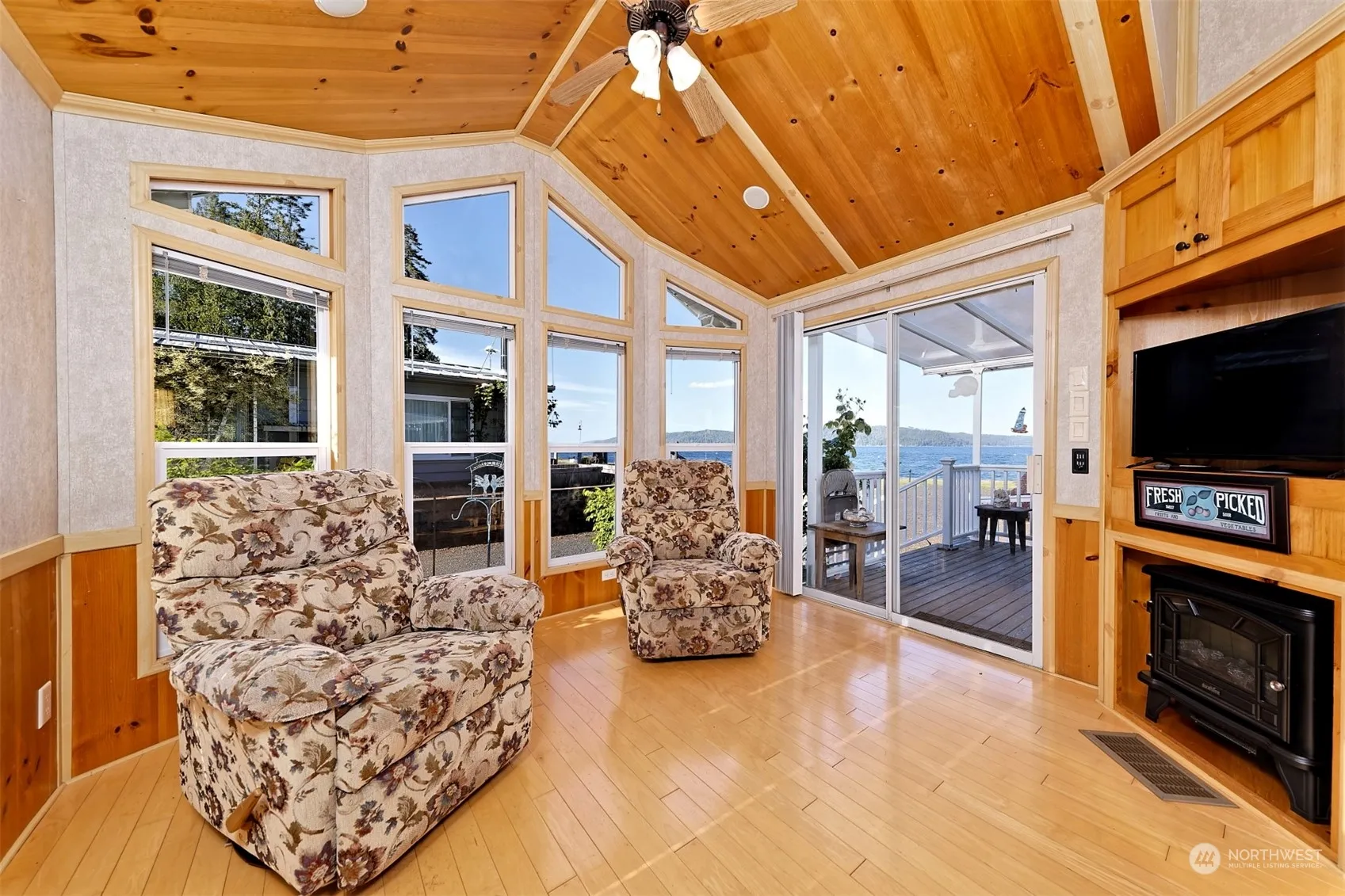 New Price! Live the Hood Canal tiny home life! This sweet spot sits in an amazing location w/ views that are hard to come by. It features 1 bedroom, 1 bath w/walk-in shower & large loft w/ample storage. Gorgeous cook-friendly kitchen w/stainless appliances. Living area includes vaulted ceilings, cozy fireplace & so much natural light. Bonus room, w/unique view, that is perfect to use for entertaining, hobbies or a media room. 2 large storage sheds on addition lot as well. Minerva Beach offers 285′ of gorgeous no bank frontage along the Hood Canal, as well as boat launch, kayak storage & waterfront clubhouse w/ guest suite. This well organized 55+ community is located next to Potlatch State Park & just 3 miles from downtown Hoodsport.