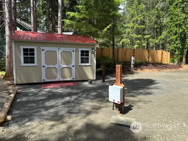 Nice, level, private cul-de-sac lot with water, power and septic already installed. This lot is partially fenced with gate. There are two RVV hookups and a nice 10 x 16 shed wired with sub panel. There is ample parking for cars and boat. The septic system is new. This is nicely done and ready for your dream home plans or just use on the weekends with your RV .Immediate access to a dog walking path. Come and take a look.