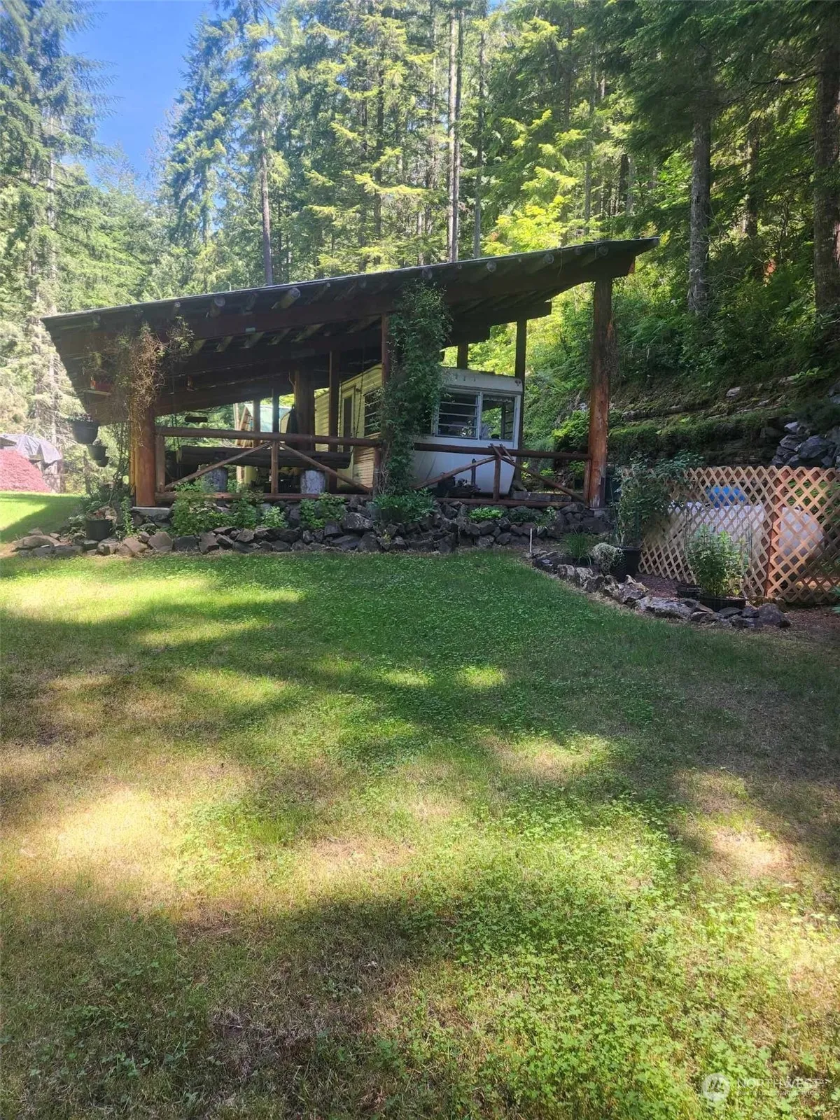 Paradise at Dow Mountain. Whether you seek a vacation retreat, or a full-time residence, this off-grid haven awaits. It’s a canvas for your dreams. This meticulously maintained off grid property is what dreams are made of. Take a stroll down this gorgeous hand-built bridge where the creek’s murmur becomes your lullaby. Over the bridge you will see a pond and a water wheel that provides water to the outdoor sink area and lawn care. This oasis boasts a cozy camper under a hand-built lean-to with picnic area. All of this in addition to everything that Lake Cushman has to offer, golfing, boating, fishing, hiking, sports courts, and multiple parks & boat launches! Inquire within, and let the adventure begin!