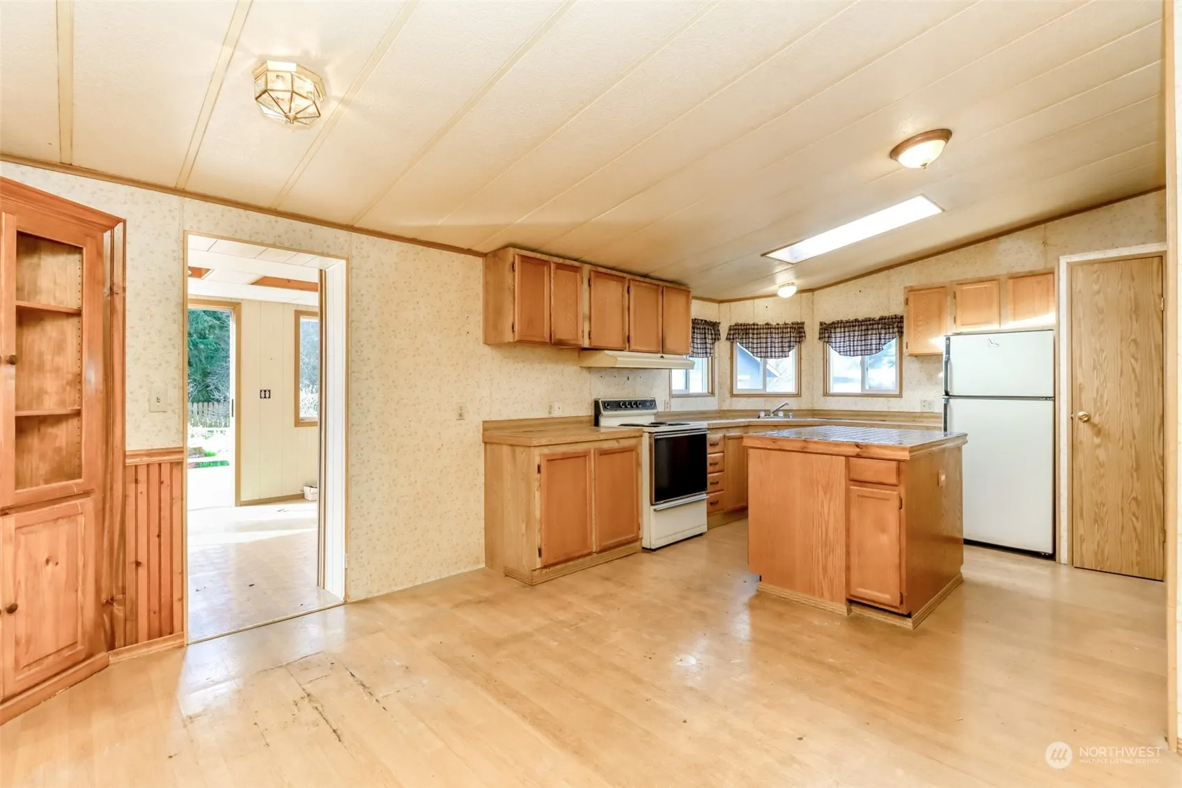 Bring your dreams and tool belt: This home is the perfect project for visionaries and brims with potential for the right buyer! Currently, this home features two bedrooms and two bathrooms. Additionally, the second living room offers flexibility as a potential third bedroom. The living room, kitchen, and dining room share an open concept with vaulted ceilings, creating a seamless and spacious feel. The kitchen boasts ample cabinet and countertop space, including an island. The quarter-acre lot includes a large deck, a fire pit, and abundant space for gardening or any pursuit your heart desires. As a bonus, there’s room to park an RV. With a little bit of work, this house could become a wonderful home!