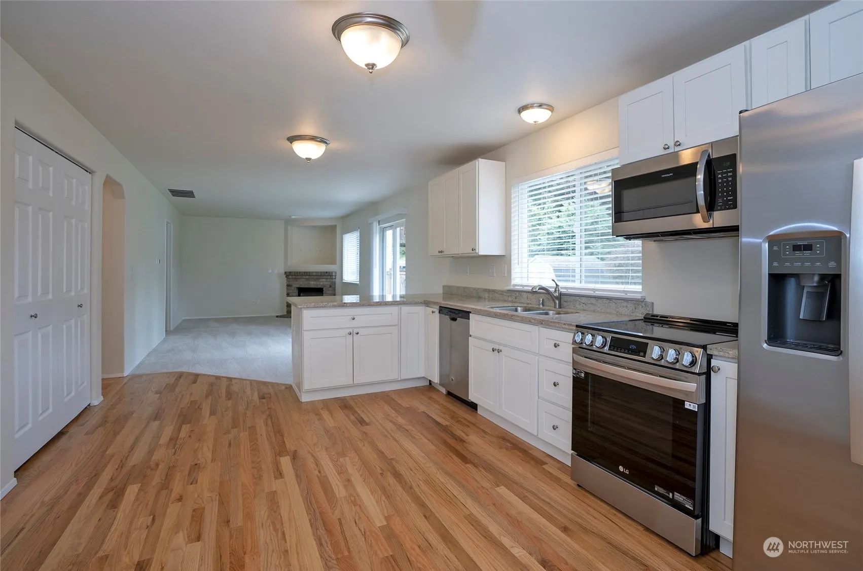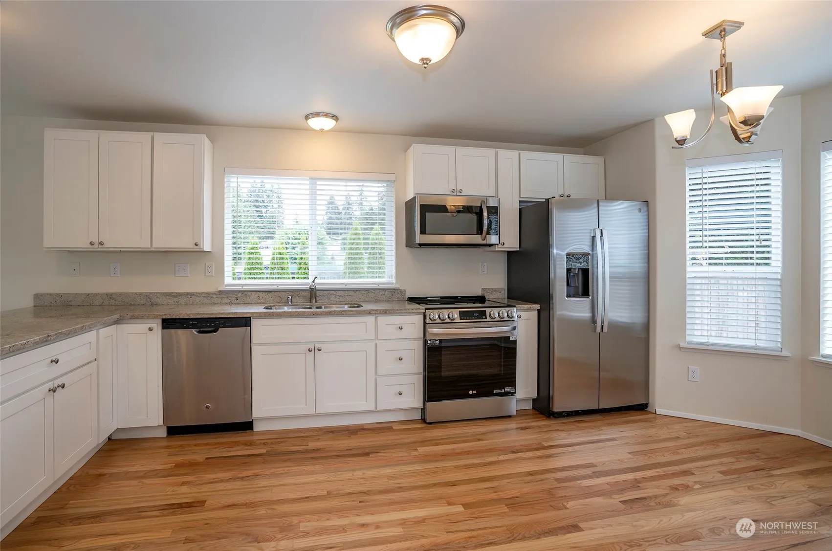 Welcome home to this Gorgeous 2 story home in Gated Falcon Creek. Stunning gourmet kitchen with Quartz countertops and White Cabinets, Stainless Steel Appliances, and Huge Pantry. Family Room with gas fireplace. Huge Primary Suite with bath and walk in closet. Brand new carpeting throughout. 2 car garage. Professionally landscaped, fully fenced backyard with shed. Great location, minutes to shopping, parks & schools. This home wont’s last!
