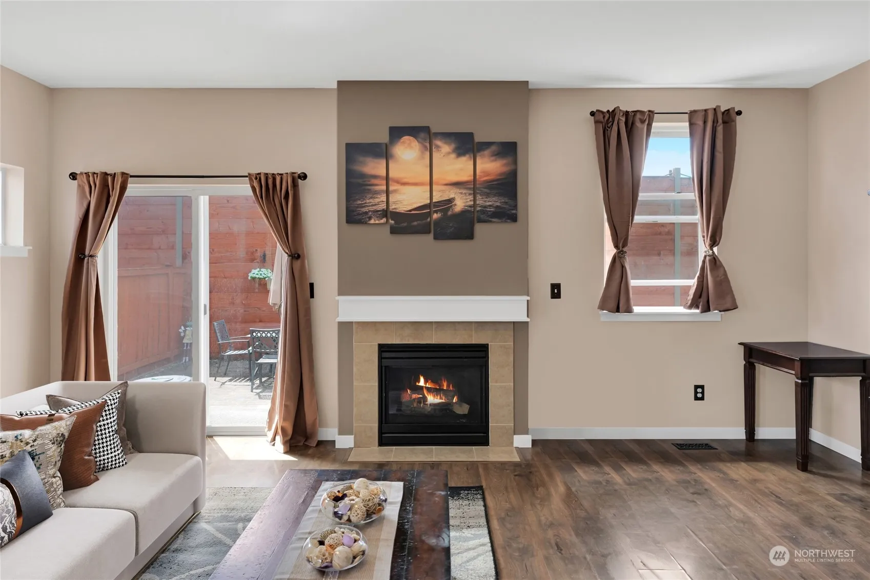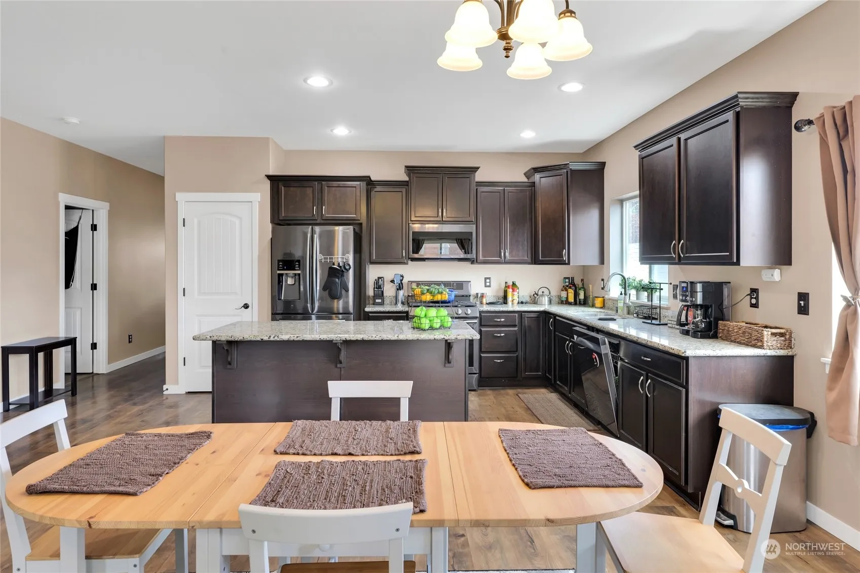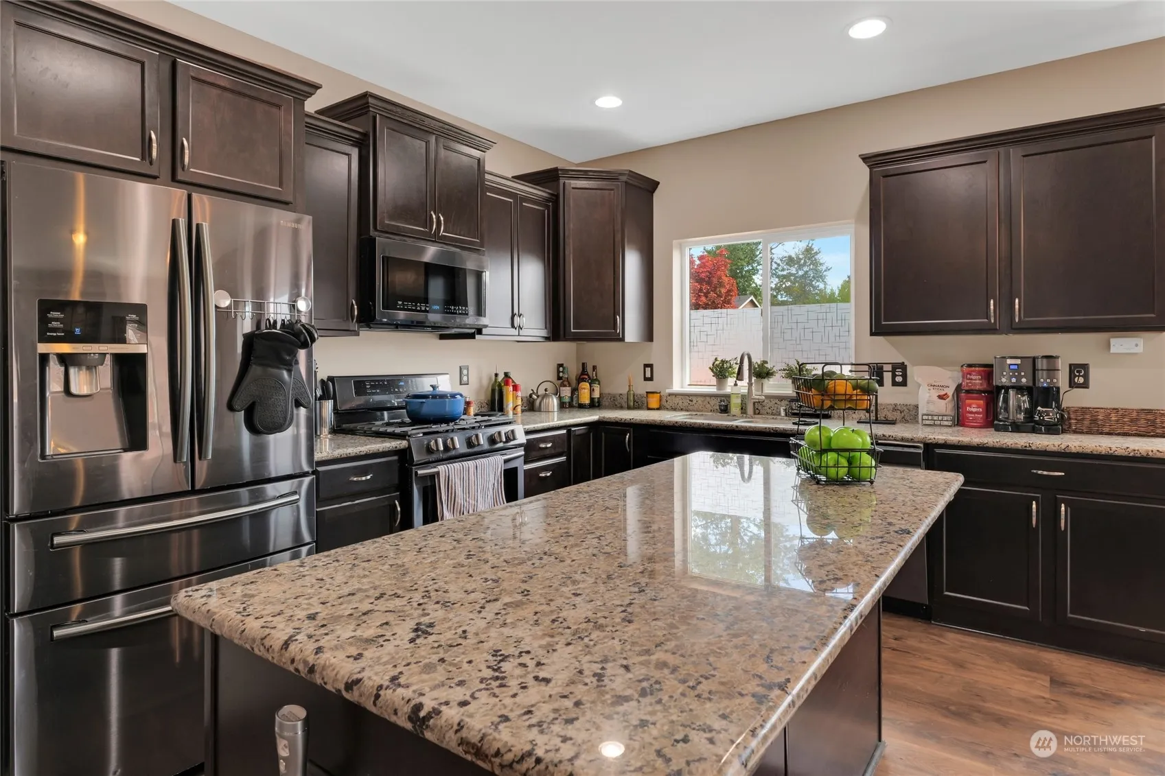 Welcome home to this modern rambler in the shadow of beautiful Mt. Rainier. Come home to relax in the open layout living room that is filled w/natural light, ideal for entertaining in the summer, or snuggle up to the cozy gas fireplace in winter, the stylish kitchen features a large island, ample cabinetry, beautiful stone counters, & SS appliances. The spacious primary bedroom offers a luxurious 5-piece bath & large walk-in closet. Use the other 2 rooms as bedrooms or home office! Enjoy whole-house-AIR CONDITIONING, gated access to the side yard, and summer BBQ’s in the private & fully fenced back yard. Conveniently located with easy access to JBLM, shopping, restaurants, parks, and more!