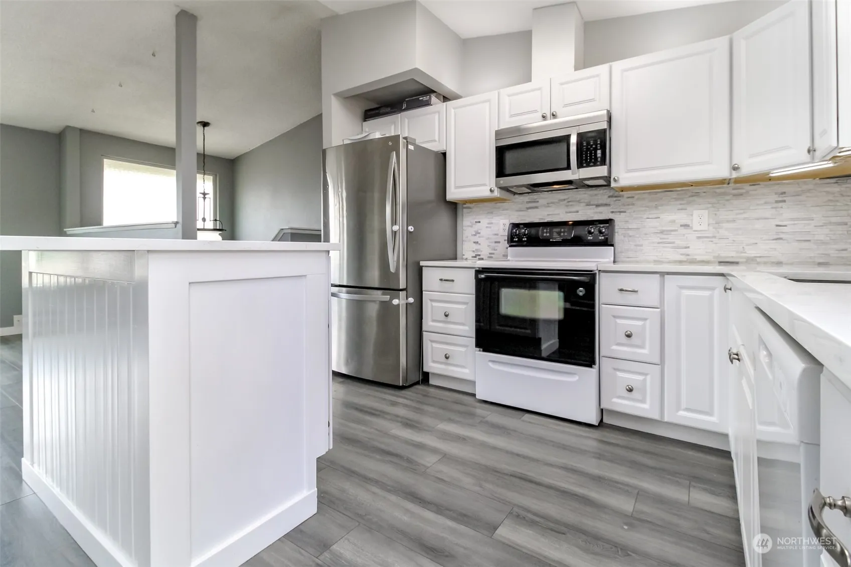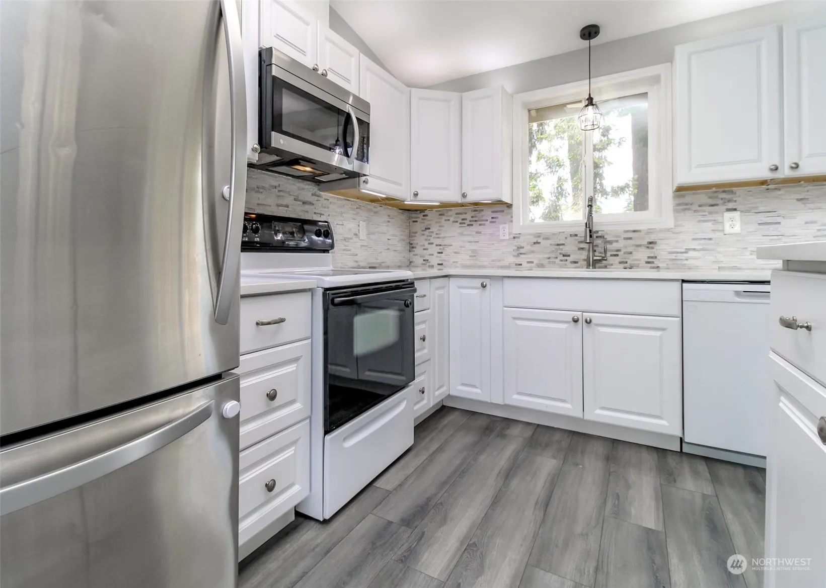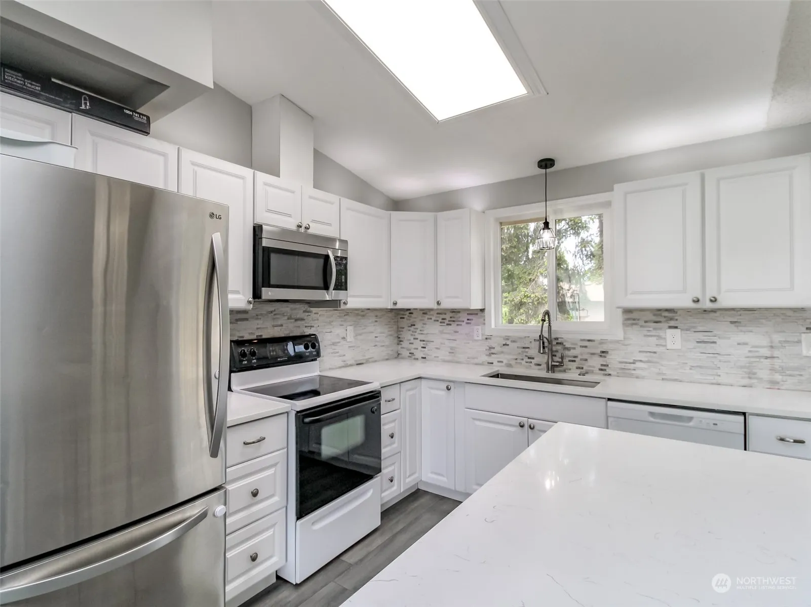Discover your dream home! This updated 4-bedroom, 2-bath split-level beauty features a bright living room with vaulted ceilings and a cozy wood fireplace. The formal dining room opens to a large upper deck, leading to a fully fenced backyard with a 10′ X 10′ shed and fire pit. The updated kitchen, perfect for entertaining, includes a breakfast bar, quartz counter tops, and ample cabinets. The spacious primary bedroom has an adjacent continental bath. With two bedrooms and a full bath on each level, it’s ideal for multi-family living. Enjoy the convenience of a utility room with washer/dryer and storage, an attached garage, and a large driveway. This home is a must-see—schedule your visit today!