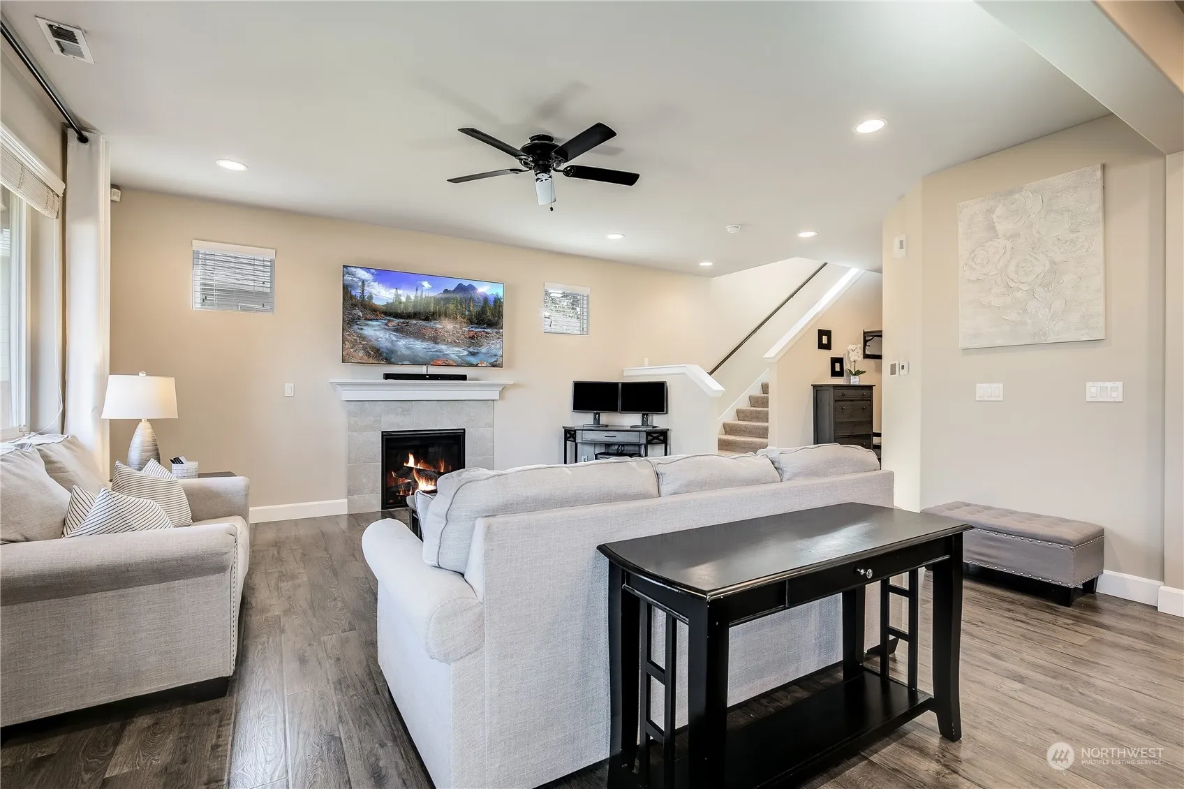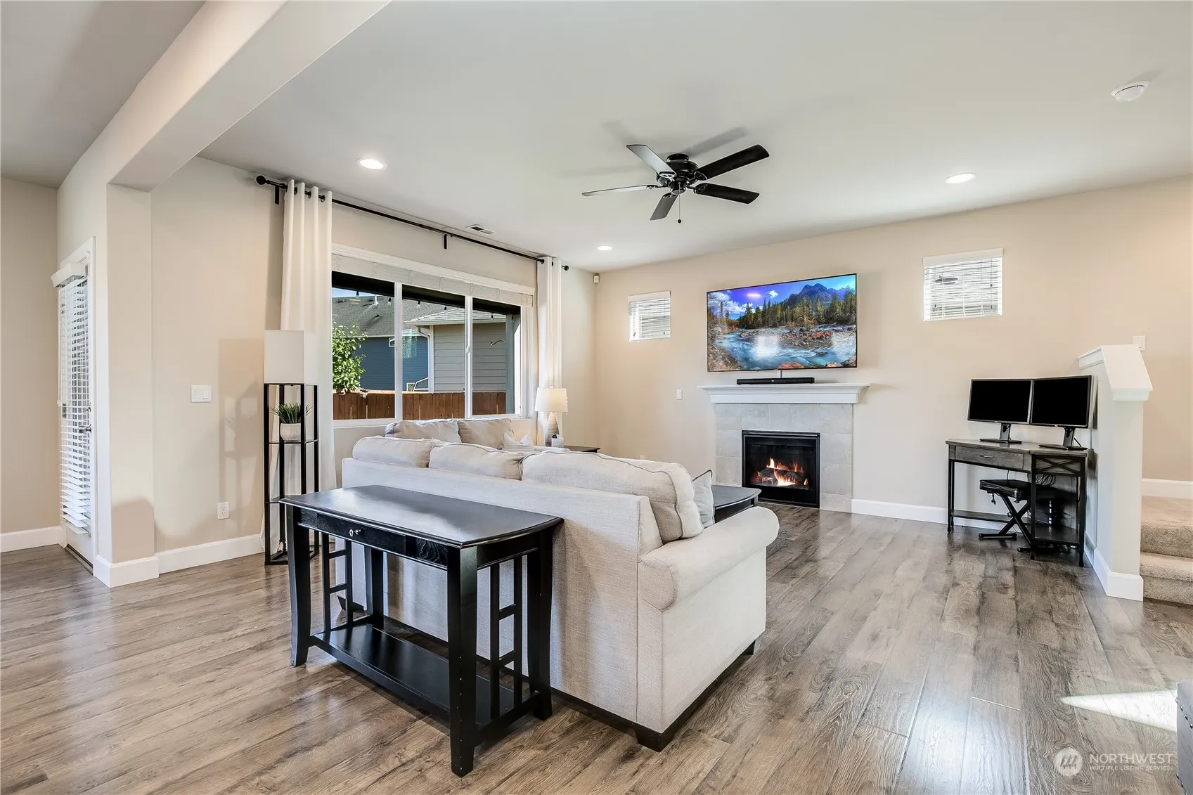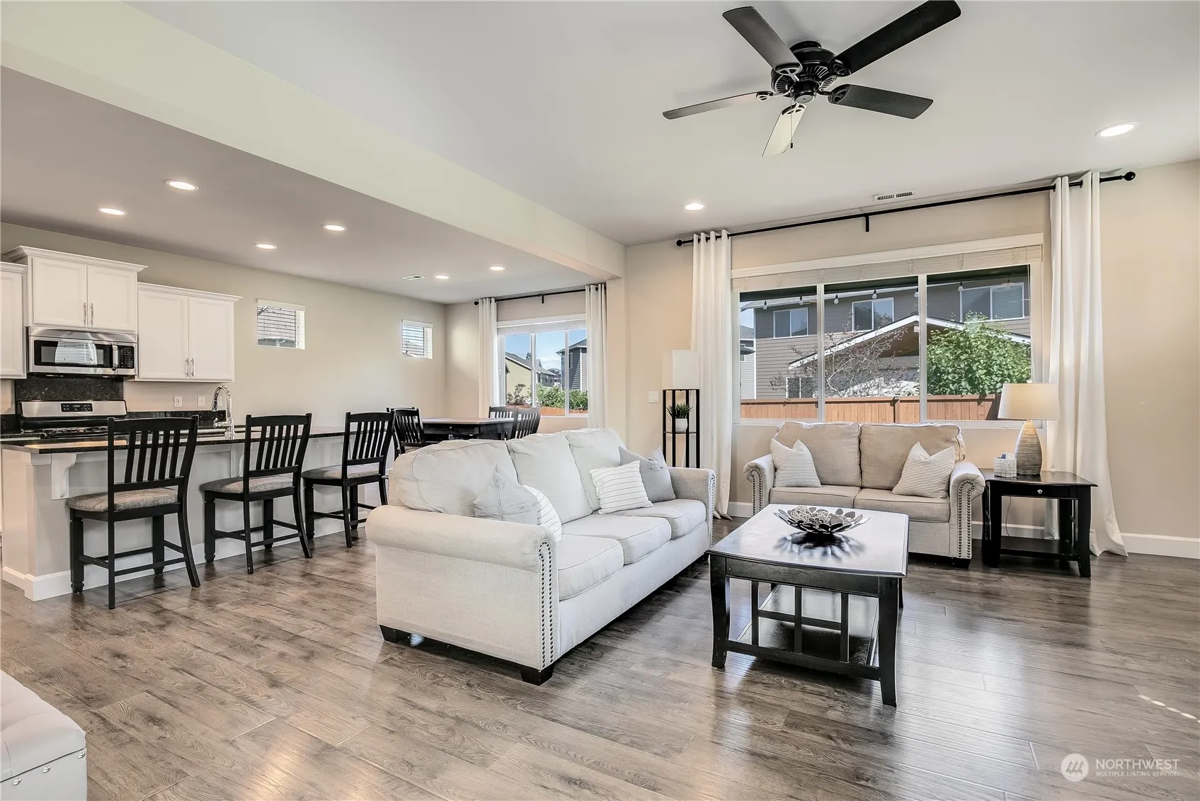 Your search is over! This meticulously maintained 3 bed 2.5 bathroom + bonus is turn key and ready to go. Upon entry follow the flowing laminate flooring to the open concept kitchen and main living space. The chef’s kitchen comes complete with solid granite countertops, white shaker cabinets, matching SS appliances, large dine-in island, and walk-in pantry. Upstairs pass by the large bonus area to your large primary suite with attached 5 piece ensuite bathroom and generous walk-in closet. Upstairs laundry with storage space. 2 additional rooms accompanied by a full bathroom. Out back relax year round under your covered patio and fully fenced yard. Come enjoy everything the highly desirable Brink Ranch community has to offer.