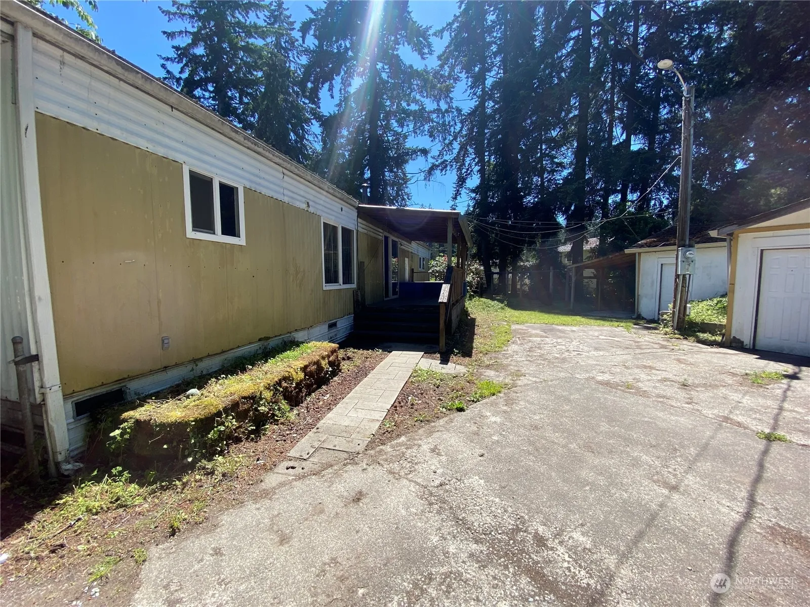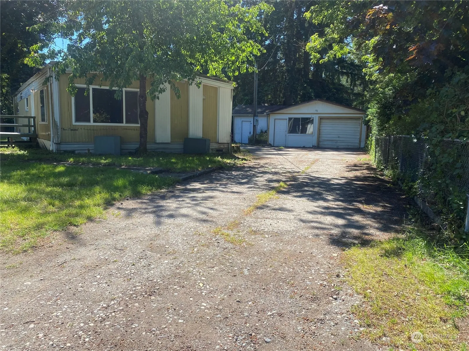 Investor alert! Nestled on its own land, this once-charming mobile home sits on a shy quarter acre and includes a large shop/garage and carport. NO HOA! Remove the manufactured home, rehab the existing home or remove and place a new mobile home, tiny home, modular home or ground up new construction home on this wonderful lot and create your own private oasis, or add it to your portfolio as a rental unit. Possibility of adding an income-producing ADU, buyer to verify. The sky is the limit here! Three bedroom septic has been recently pumped and it’s ready to go! Sold AS IS, seller to do no repairs.