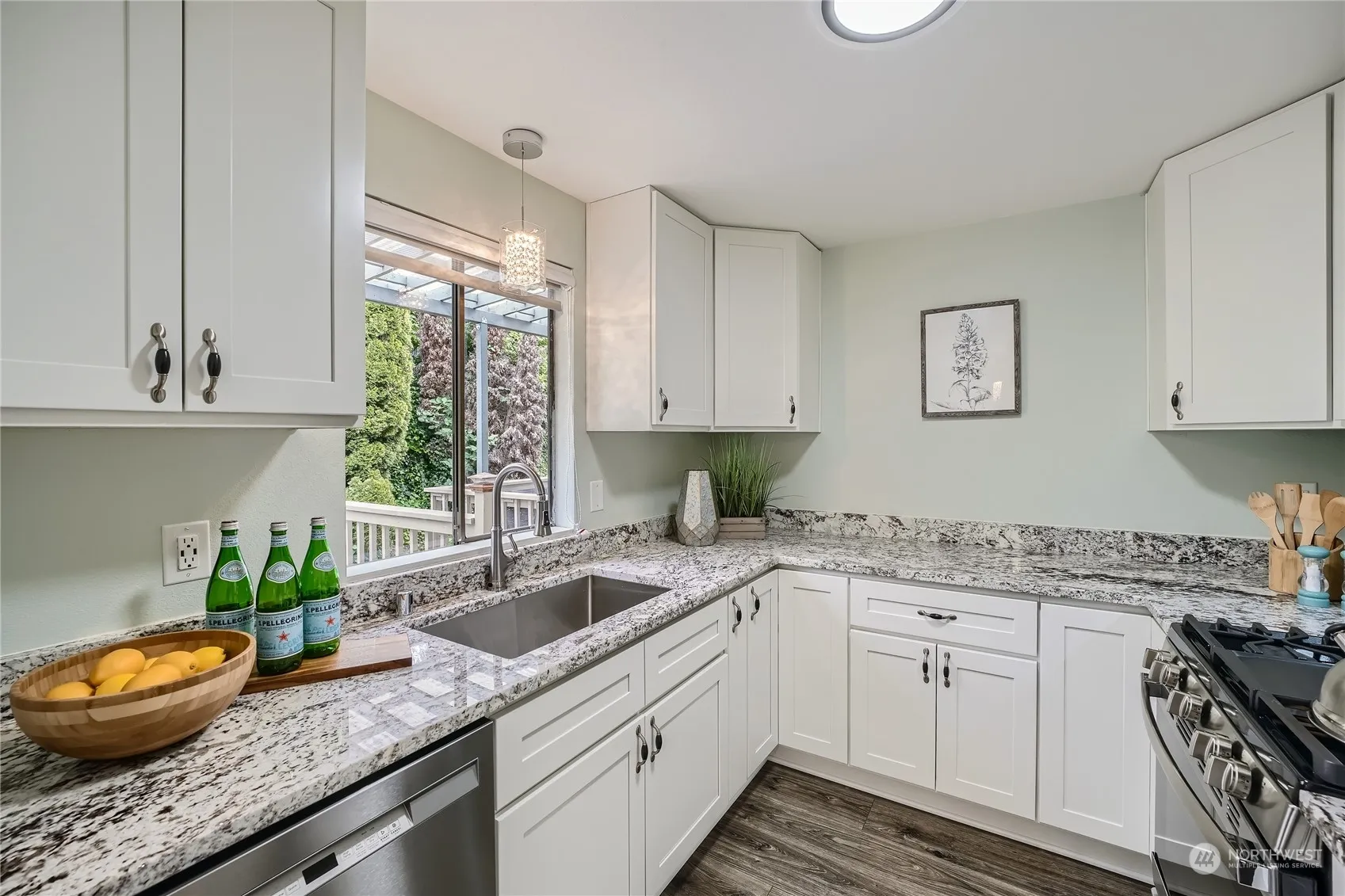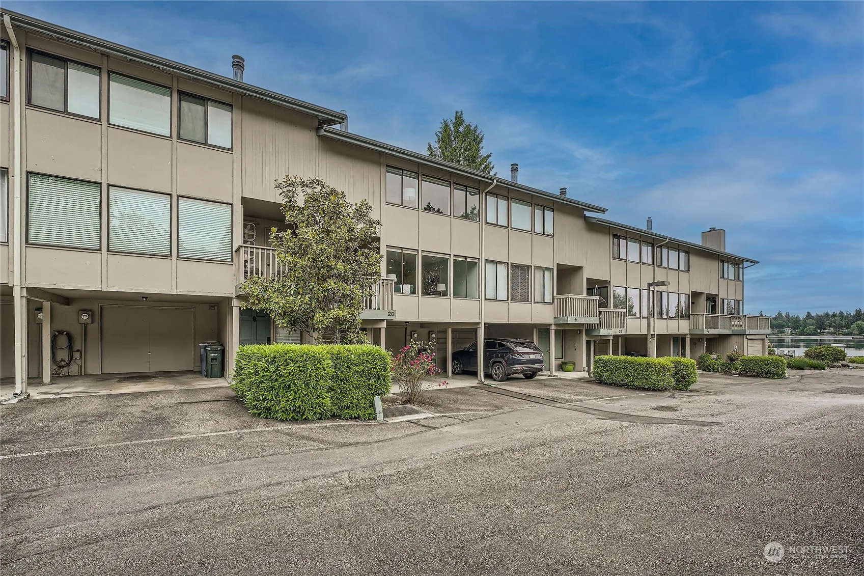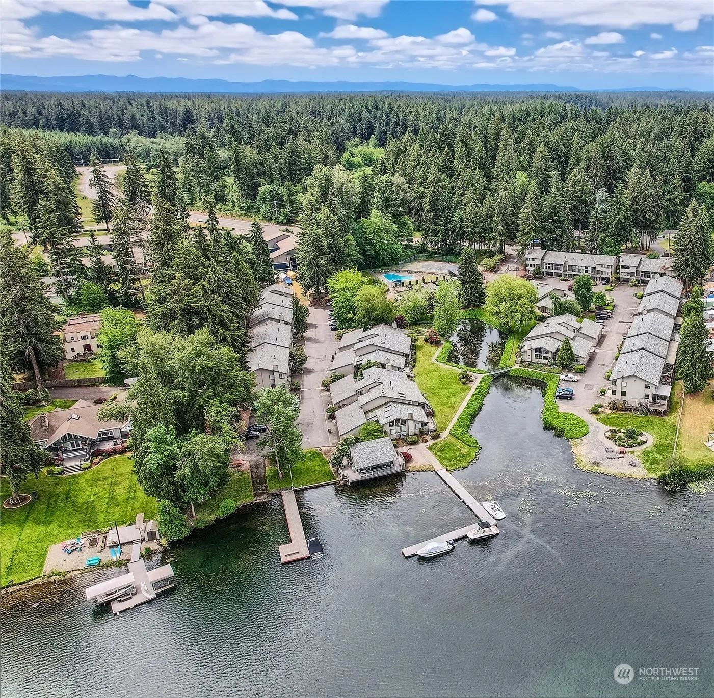 Lake Views! Updated 2 Bed/2.25 Bath townhome at Coffee Creek on Spanaway Lake. Stylishly remodeled kitchen has granite counters, new white cabinets, & staineless steel appliances. Guest bath & laundry on the main level. Lots of built-in storage throughout. Upper level has two spacious bedrooms. Primary has an attached bathroom and huge walk-in closet. 2nd bedroom has built-in storage & full bathroom in the hallway. Covered back deck with serene lake views. Front deck has views & a bonus storage closet. Attached 1 car garage with a big storage area great for bikes, kayaks, or lake toys. Additional carport space. This gated community has private lake access, tennis courts, pool, & clubhouse. RV/Boat storage & dock spaces for a fee.