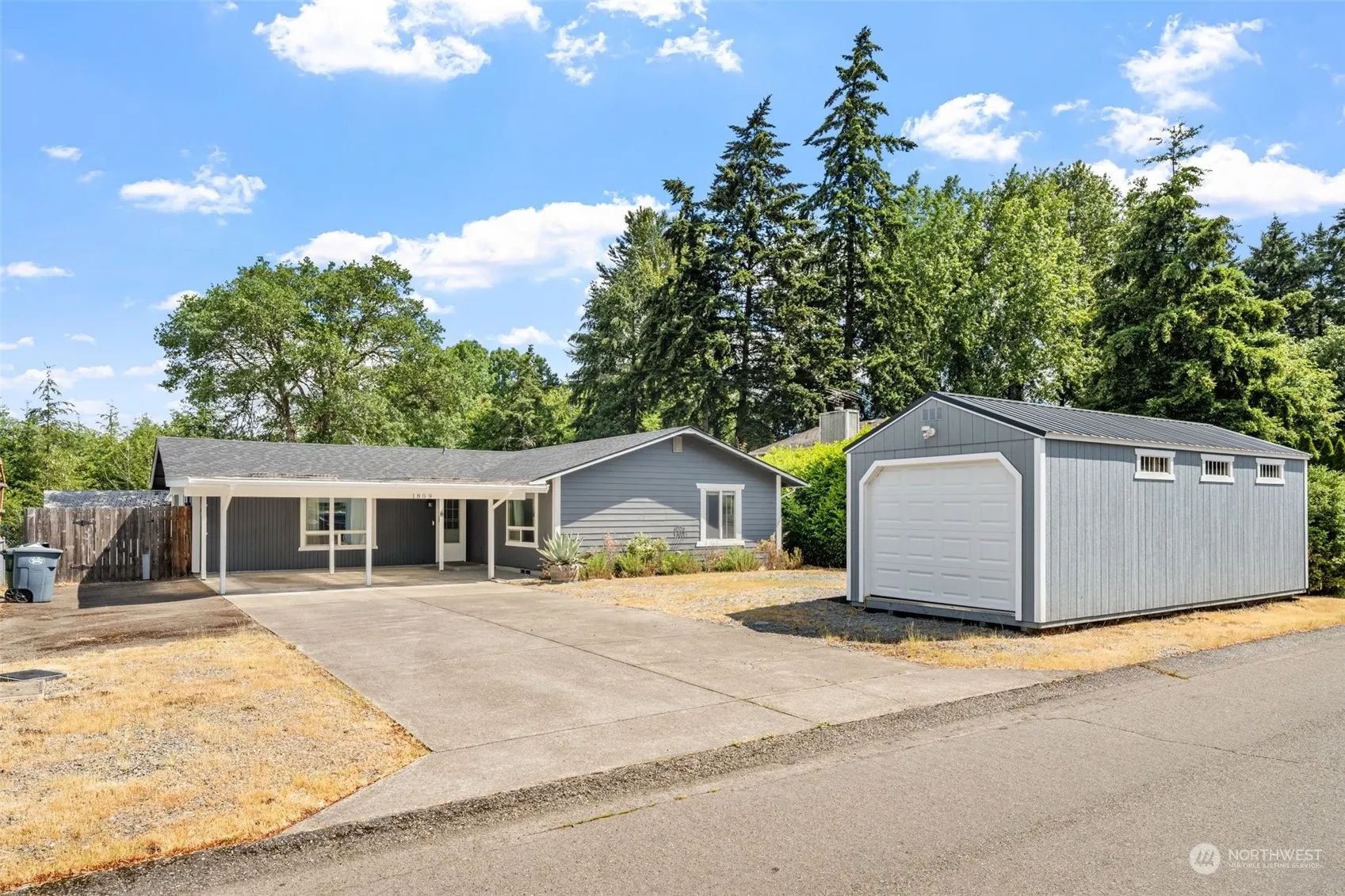 **LOW INTEREST ASSUMABLE VA LOAN** This home was freshly updated in 2021 with new paint and flooring and a freshly updated kitchen. Enjoy the light and bright dining area, and home office. The backyard is fenced with a spacious patio and garden beds along with several large outbuildings. This home is easy one-level living with four bedrooms and one bathroom, and a large laundry/utility room—maybe room to add a second bath? VA Approved buyers may wish to take advantage of seller’s super low interest rate! This home is on a quiet street but still just minutes to schools and shopping and major commute routes. Super convenient to JBLM. Brand new furnace/heat pump/AC in 2023.