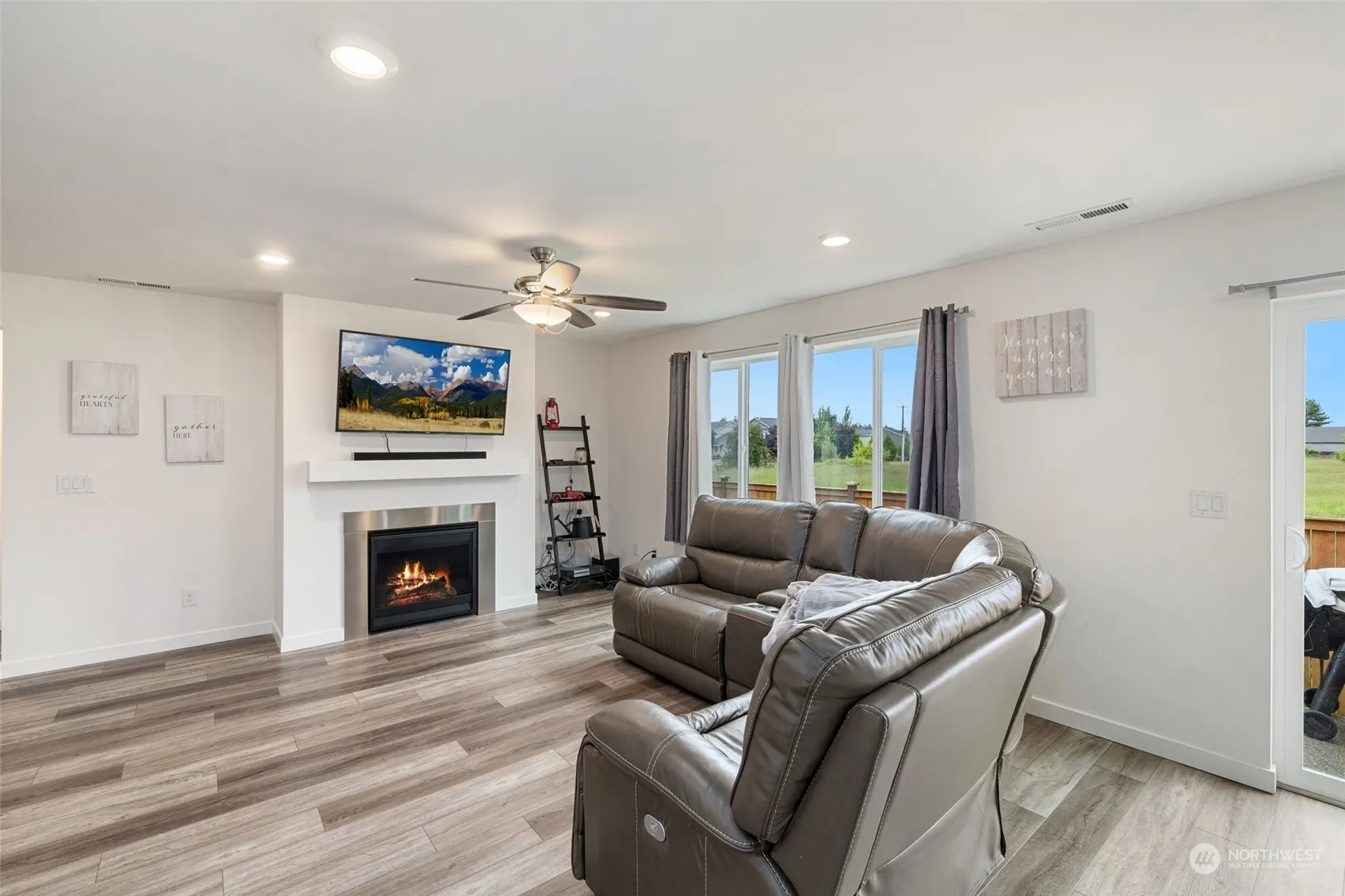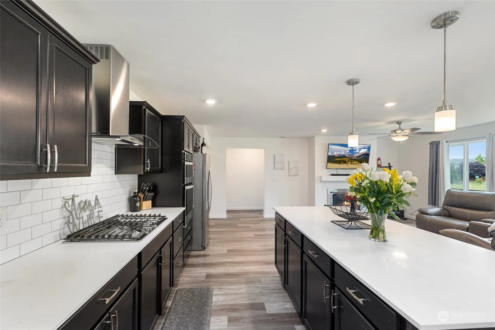 This is the one! Close in, beautiful neighborhood, incredible house! Home backs up to a pleasant meadow, perched slightly higher on a nice corner lot for an incredible panoramic view. Home has all the extras. 3+ bedrooms, to include the spacious primary with en suite bath and walk-in closet. Kitchen is impressive, all stainless steel appliances stay to including W/D. Quartz counters, subway tile backsplash, big pantry, lots of gorgeous shaker style cabinets and a huge island separating the dining area and the generously sized great room. Surround sound, AC, Hi end LVP flooring throughout, upgraded trim package. Every upgrade available was chosen for this gorgeous home. Lovely landscaping, completely fenced yard, super clean. SEE IT TODAY.