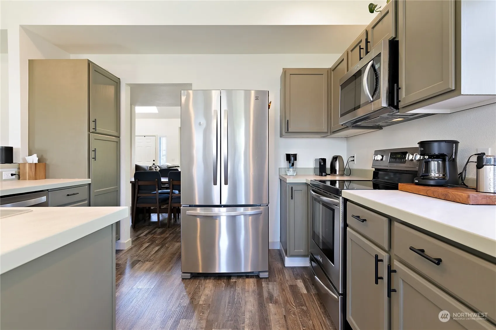 Welcome to this meticulously maintained 3 bed 2.5 bath 2 story with Primary suite on the main floor! This home is quietly situated in a gated community, on large lot on a quiet cul de sac. and comes with a lot of updates. Upon entry notice the large vaulted ceilings and flowing open floor plan living space. Follow the sleek LPV flooring into the country kitchen complete with SS appliances, ample cabinet and counter space. The large primary suite comes complete with an attached 5 piece ensuite bathroom and walk-in closet. Upstairs you will find another 2 bedrooms accompanied by a full bathroom and bonus space. Relax out back in your large fully fenced backyard with patio, great for entertaining. New roof in 2024.