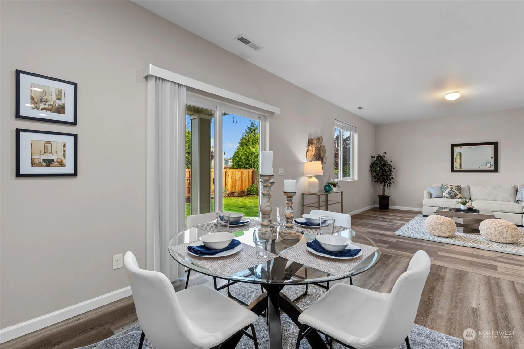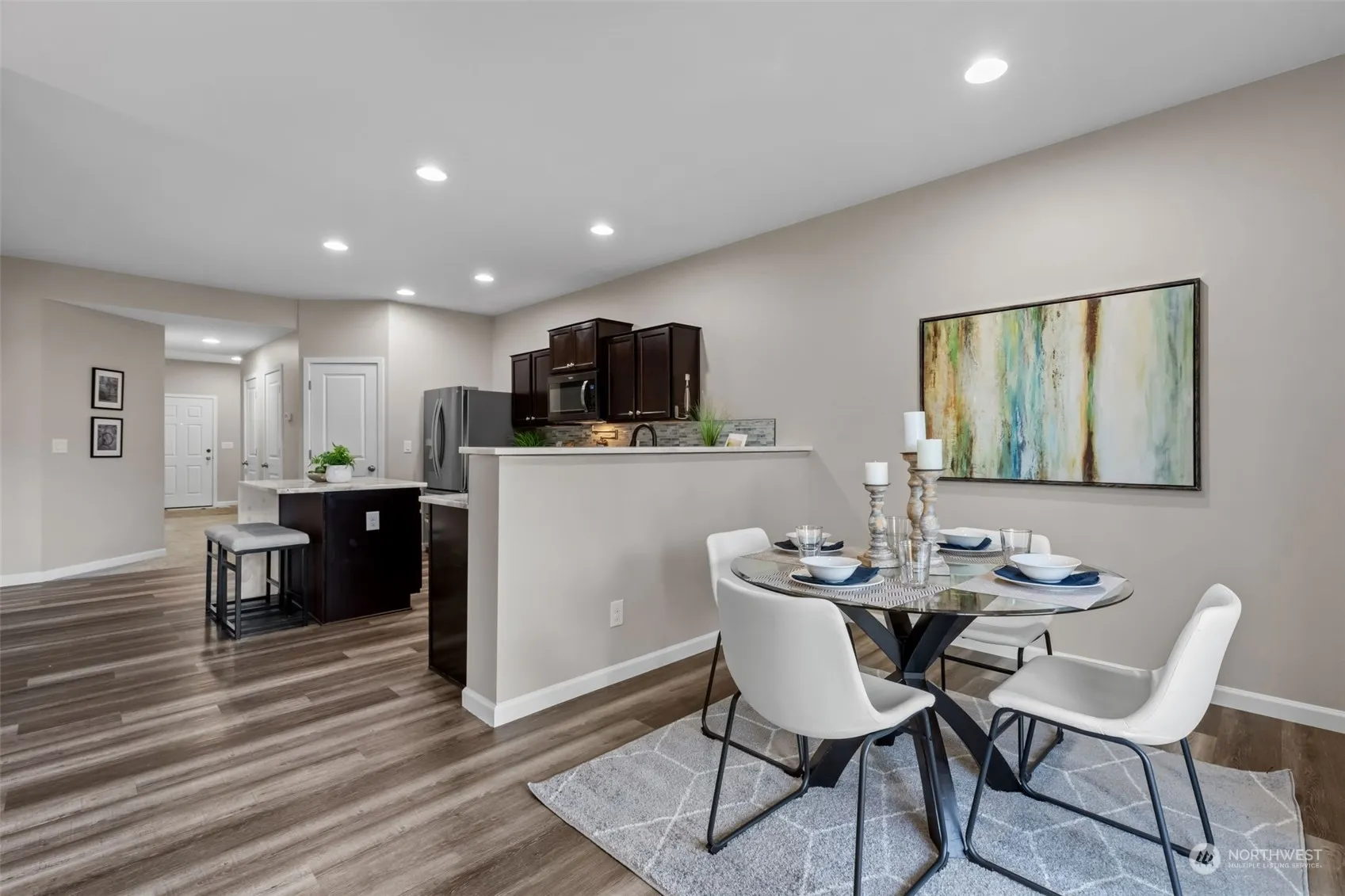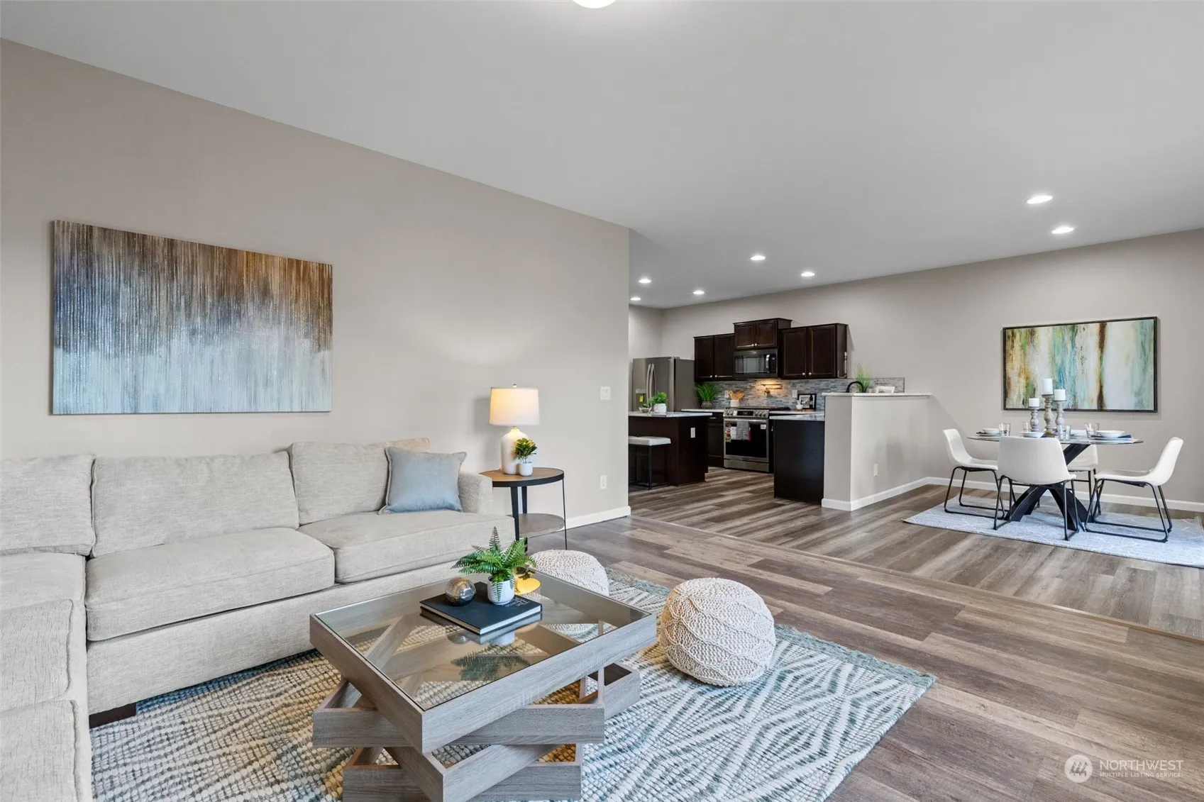 This stunning 5-bedroom, 3-bathroom home in Frederickson, Spanaway offers a modern living experience with 2,400 sq ft of spacious elegance. The property features a contemporary open-concept kitchen and family room, perfect for entertaining and daily life. The chef’s delight kitchen includes updated granite countertops, a stylish island with a waterfall edge, and new stainless steel appliances. The home also boasts new paint, toilets & sinks, and sleek laminate flooring throughout. With one bedroom on the main floor and a luxurious primary suite on the upper level, along with a bonus loft area, this home offers flexibility and comfort. Its location provides easy access to JBLM and major highways, as well as convenient shopping and amenities