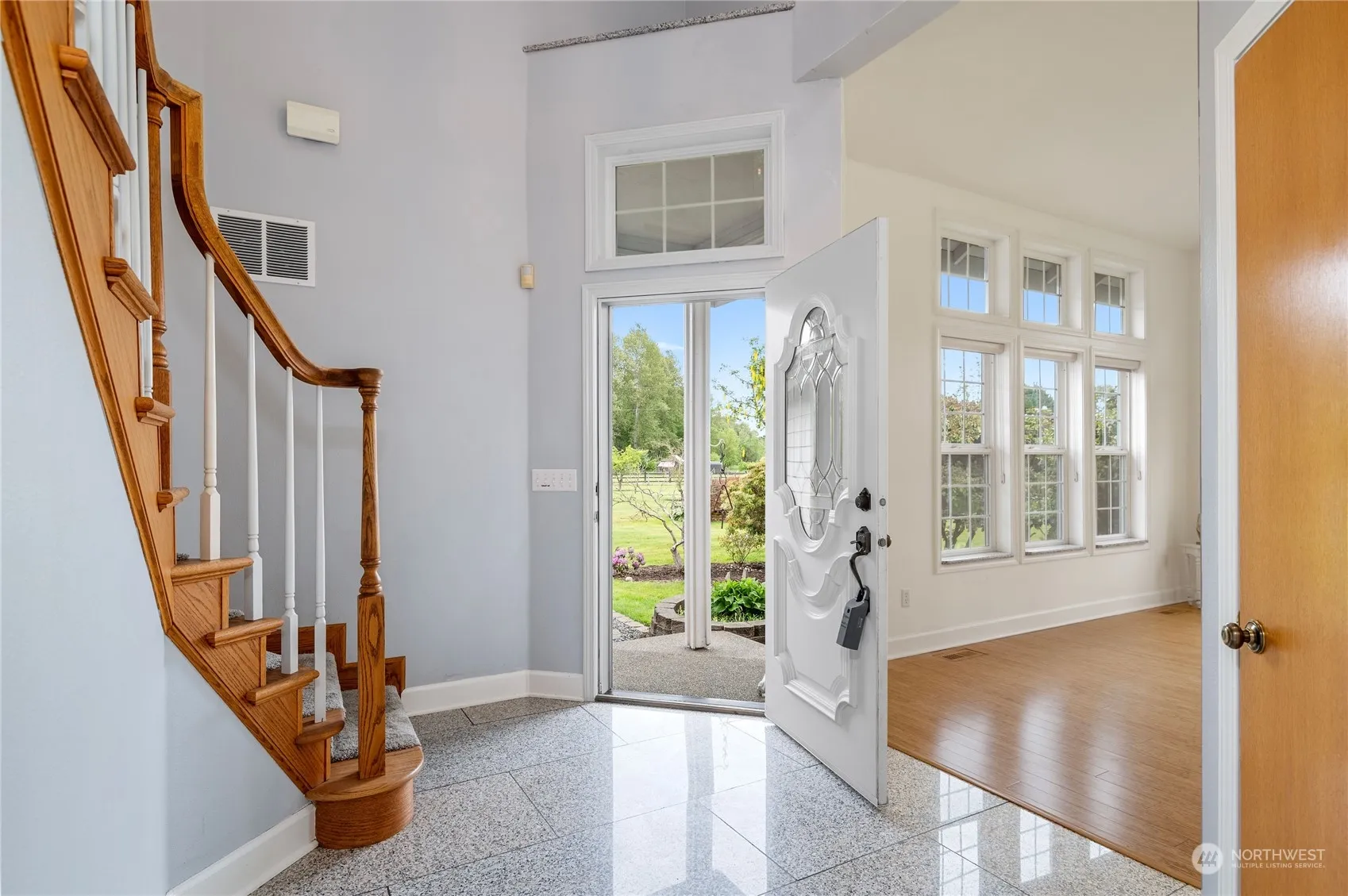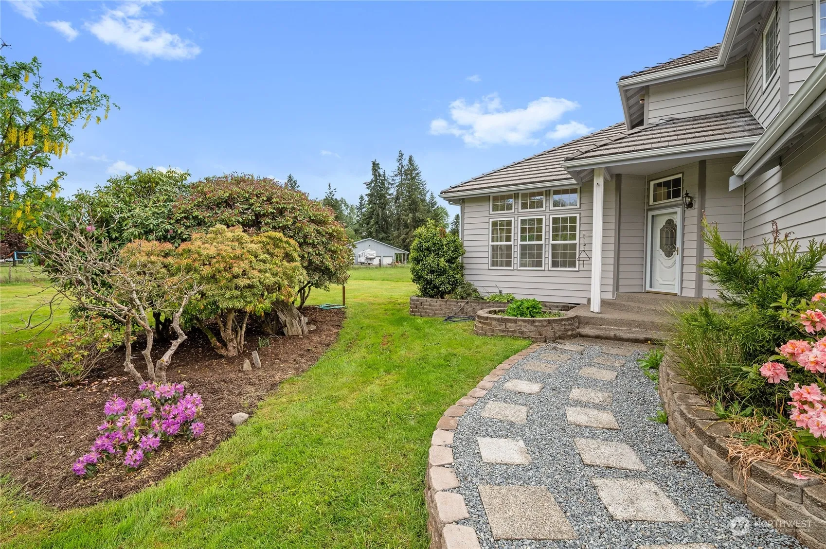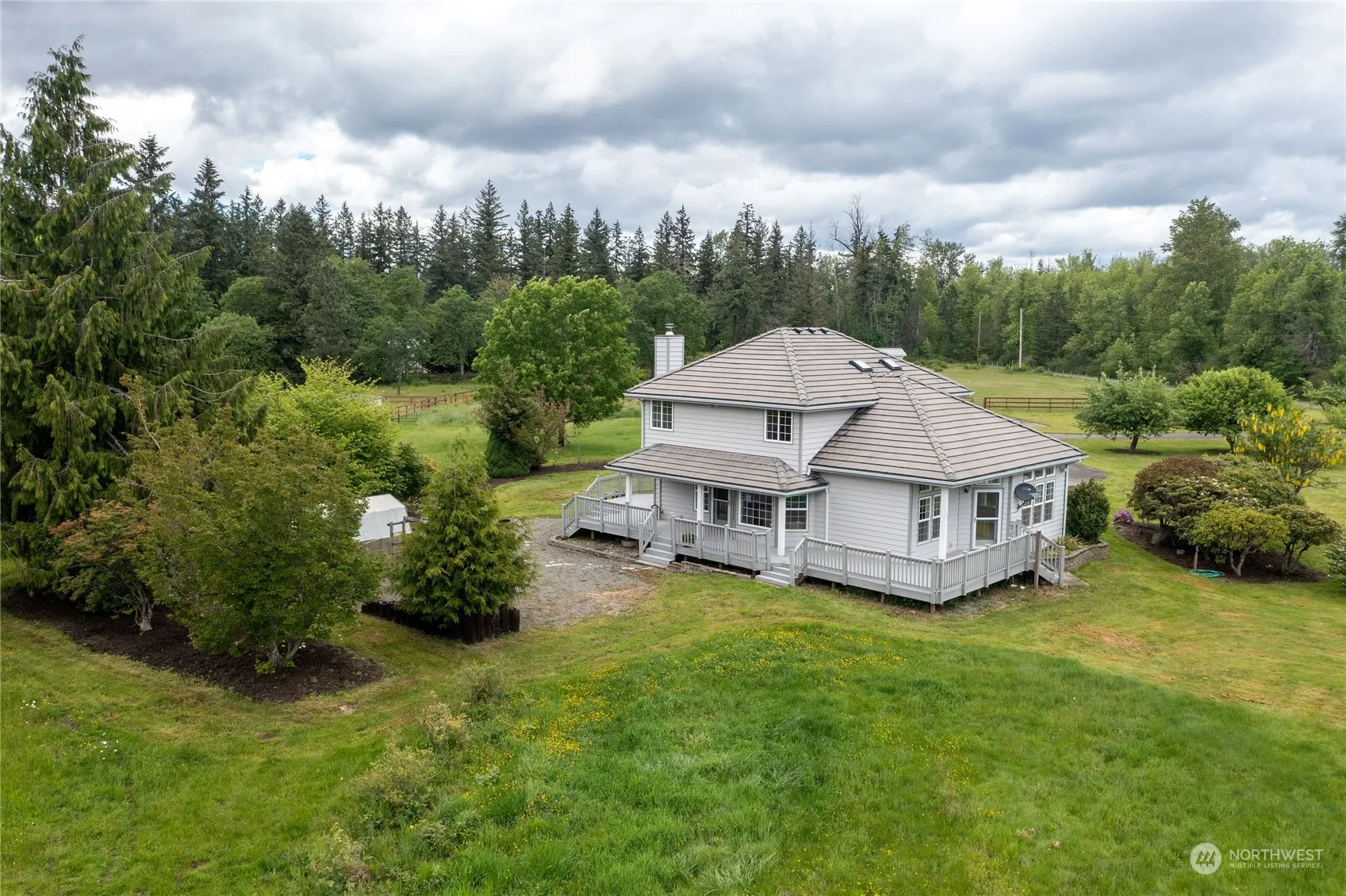 Welcome to your private sanctuary, nestled on 10 acres of pristine, level land with breathtaking views of Mt. Rainier. This luxurious property features a large shop with a new metal roof, partially prepped for conversion into a chic loft or additional living space (ADU). Delight in the lush fruit trees, expansive horse pastures with stables, and a 60×120 horse riding arena. The custom-built home exudes elegance with an office on the main floor and three bedrooms upstairs. The living room impresses with soaring vaulted ceilings and expansive windows, flooding the space with natural light. If you seek tranquility and a home that embodies peace and pride, this property is for you. Schedule your viewing today! Two parcels 0318352050;0318352049.