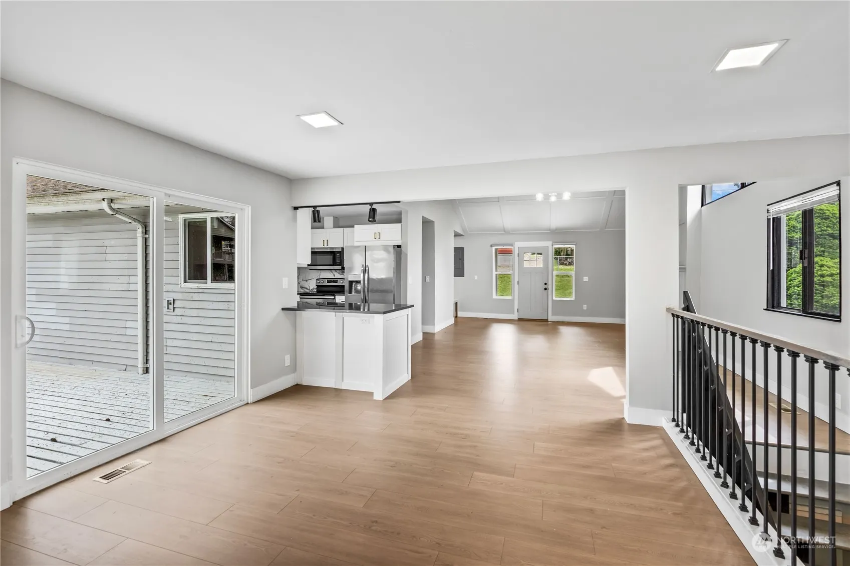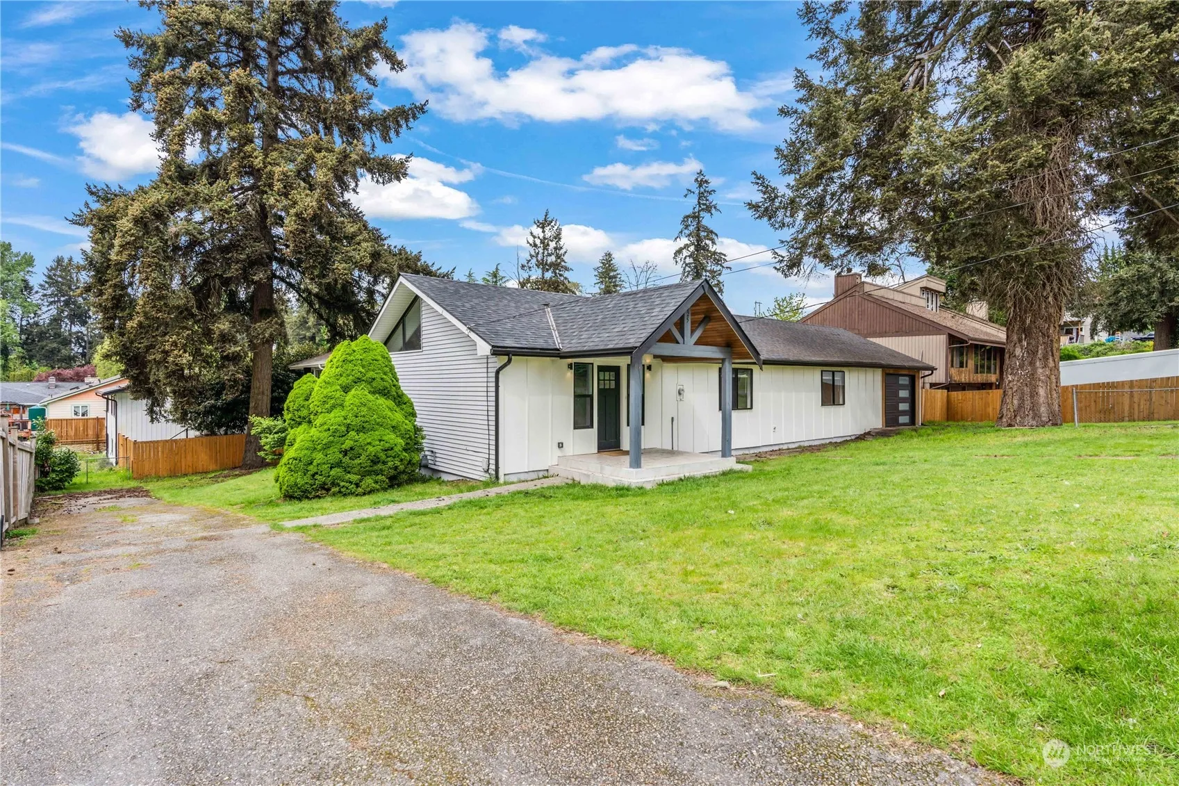 Spanaway Lake WaterfrontThis contemporary, single-level home offers potential moorage for a small boat and features a finished basement with a kitchenette that opens directly to the yard—ideal for entertaining. The open-concept living space is flooded with natural light, boasting a spacious living room with vaulted ceilings and an electric fireplace for added coziness. The dining area leads to an expansive, fully updated covered deck, perfect for gatherings and offering stunning views. The large, fully fenced yard provides direct access to the lake. Ample parking is available for your boat, RV, and other recreational vehicles. The home is situated in an excellent location, surrounded by parks, hiking trails, and in close proximity to I-5.