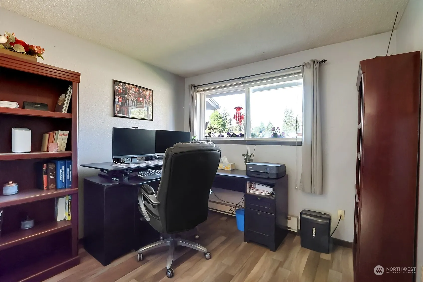 Updated rambler with 4 bedrooms and 1.5 baths, fresh paint, gutters, electrical panel and roof done in 2023, newer LVP flooring throughout and tile kitchen floor, half bath off utility room and full bath in hallway with tile floor, dbl pane windows, b/b electric heat, large back deck, fully fenced with dog run in back. 3 storage sheds and large back yard. Great location near JBLM, shopping, schools and bus lines.