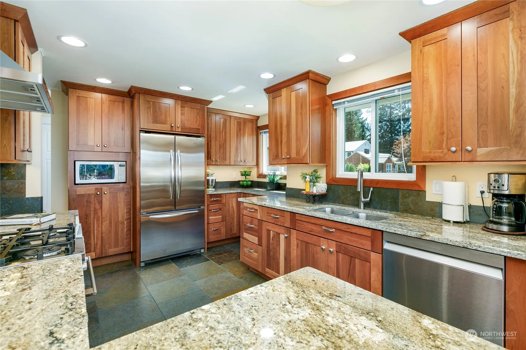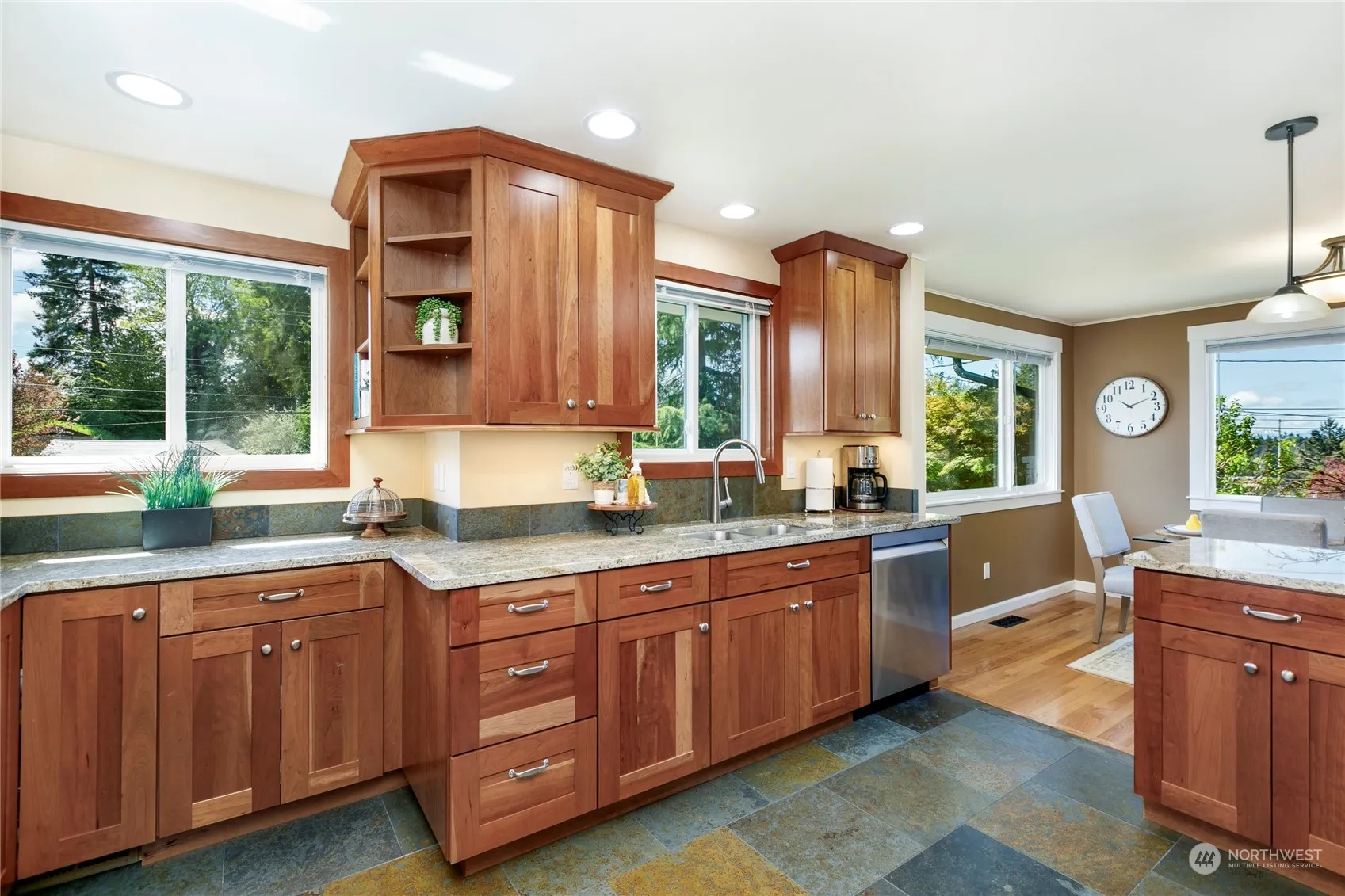 Discover tranquil living in the heart of Edmonds at this beautifully remodeled home. An open floorplan welcomes you home w warm hardwood floors & natural light throughout. Gorgeous, remodeled kitchen complete w shaker cabinetry, slab countertops, modern SS appliances, heated slate floors + peekaboo mountain views! Retreat to the primary suite w a spa-like ensuite bath + heated tile floors! Relax/entertain year-round thanks to the large deck w covered outdoor seating/BBQ areas! Fully fenced & level lot + mature landscaping offers areas for projects, play or privacy. Massive garage & outbuilding provide plenty of room for any vehicle or hobby you have in mind, even RV/boat storage! Easy access to downtown Edmonds’ charming shops & waterfront.