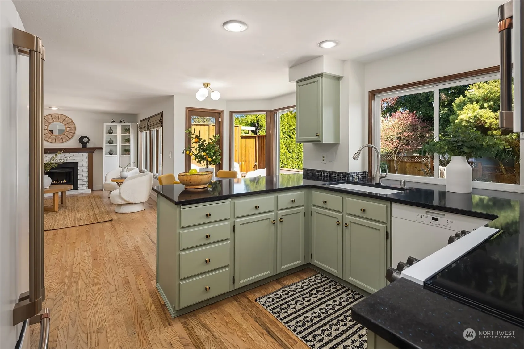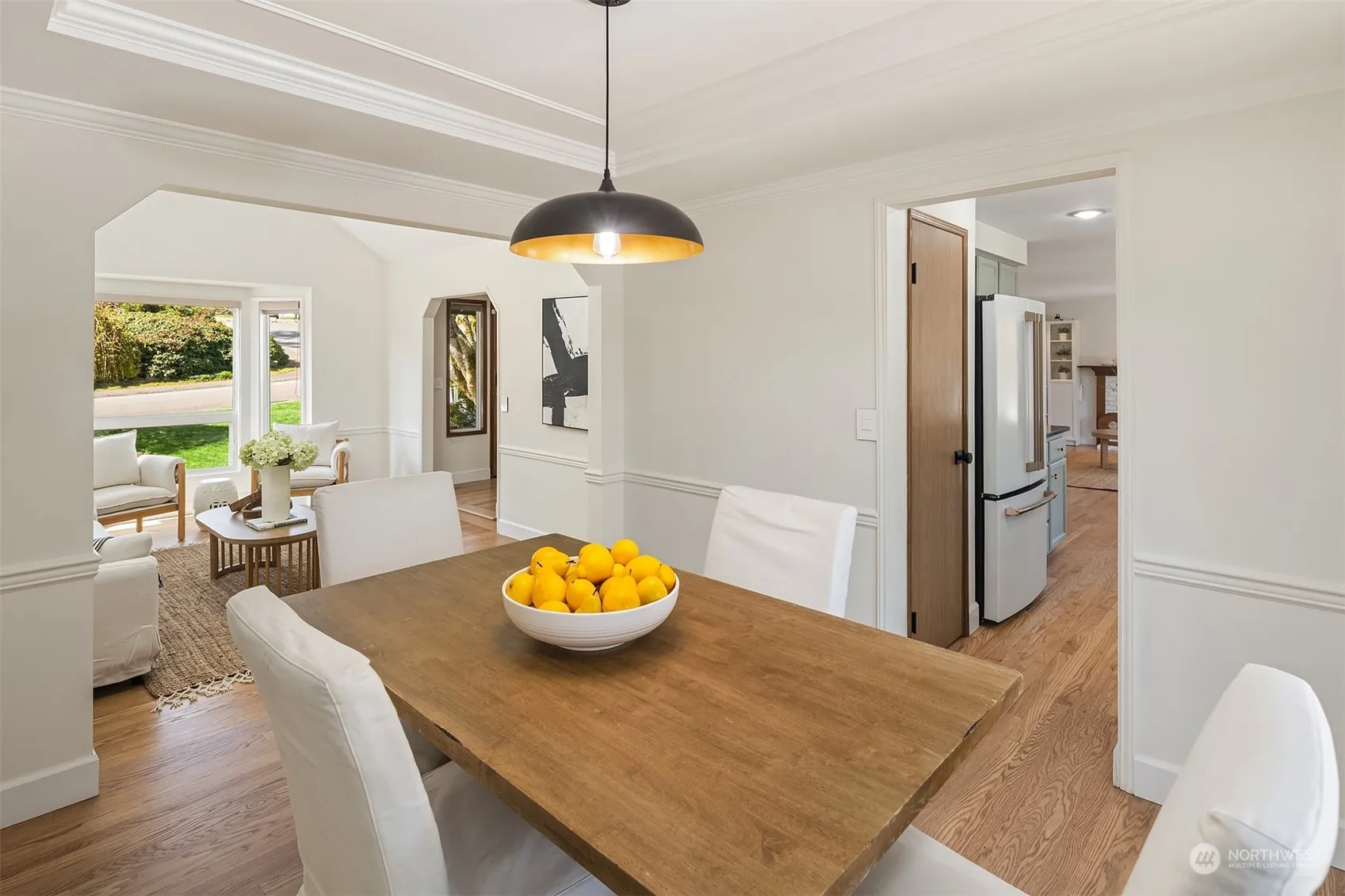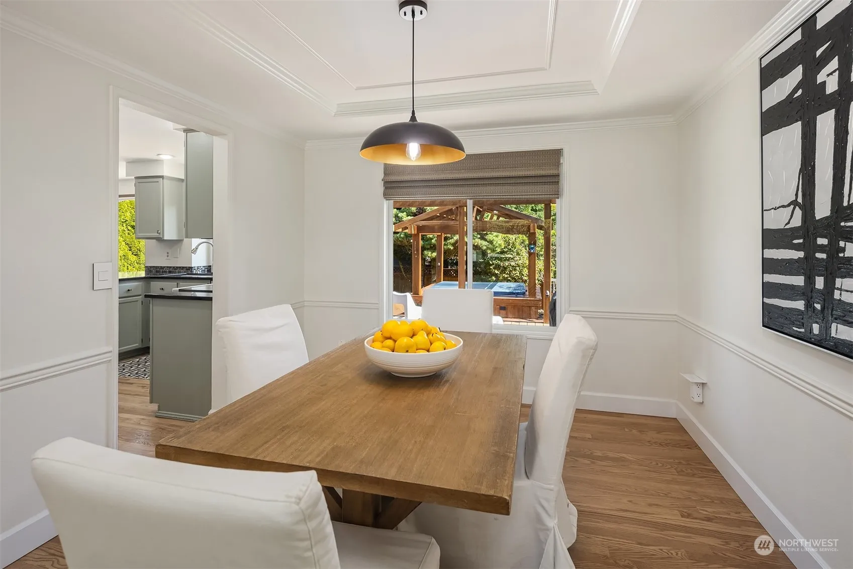 Tastefully updated 2-story residence nestled on serene street w/amazing mountain views in coveted Education Hill. Timeless floorplan flows from sun filled living room w/vaulted ceiling & bay windows to formal dining room. Refreshed kitchen showcases quartz countertops & top-of-the-line appliances, opens to breakfast nook & family room w/cozy gas fireplace. Upstairs, primary suite offers beautifully remodeled 5-piece bath & walk-in closet. Accompanied by 2 additional bedrooms & well appointed hallway bath. Step out to enjoy expansive composite deck & patio overlooking private fully fenced backyard oasis w/water features, covered hot tub & 10X12 shop. A/C included & NO carpet! Sought after LWSD. Minutes to DT Redmond, trails, parks & schools.