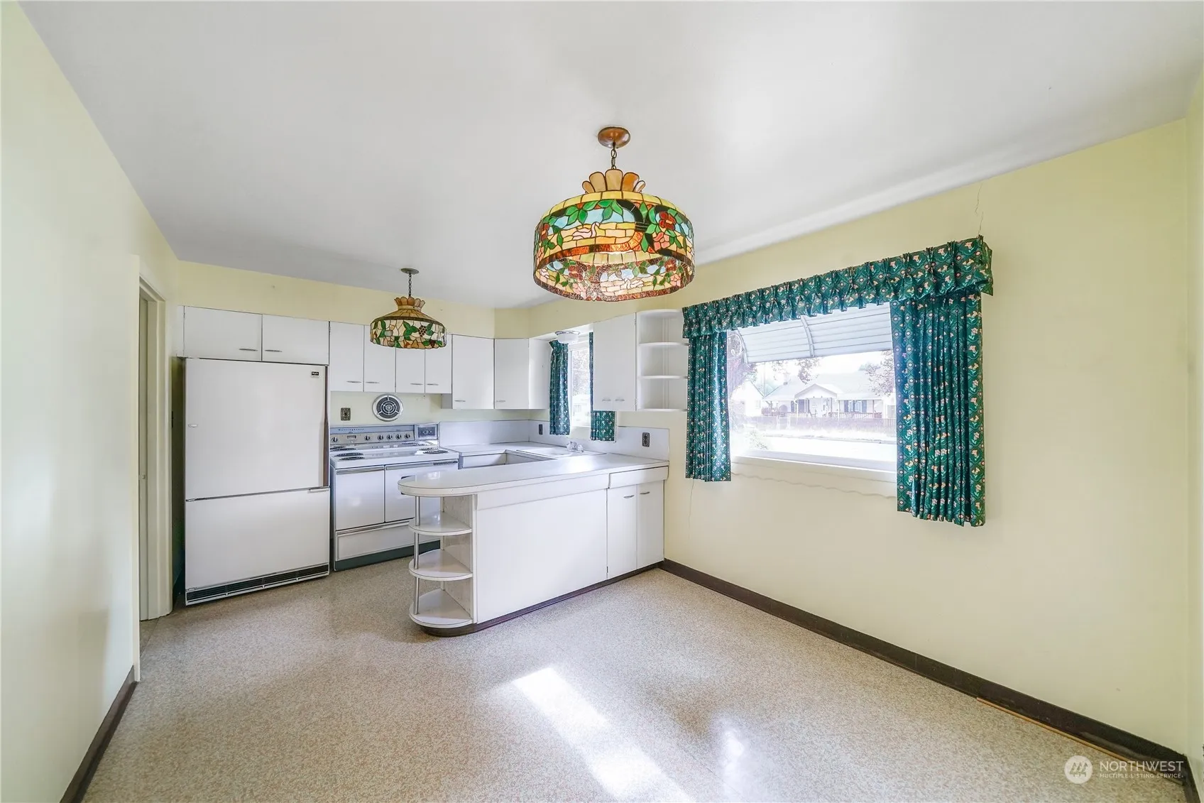 Come see this 1950 constructed 2 bed, 1 bath home just a few blocks off of Lake Sacajewea. Home boasts 867 sq/ft of living space w/ charming antique light fixtures, hardwood flooring under carpets, Trane heat pump & furnace, separate utility rm, and a spacious living rm. Exterior backyard features a covered patio, 2 car covered parking in the detached garage & carport along with a paved alleyway and an electric garage door w/ shelving.
