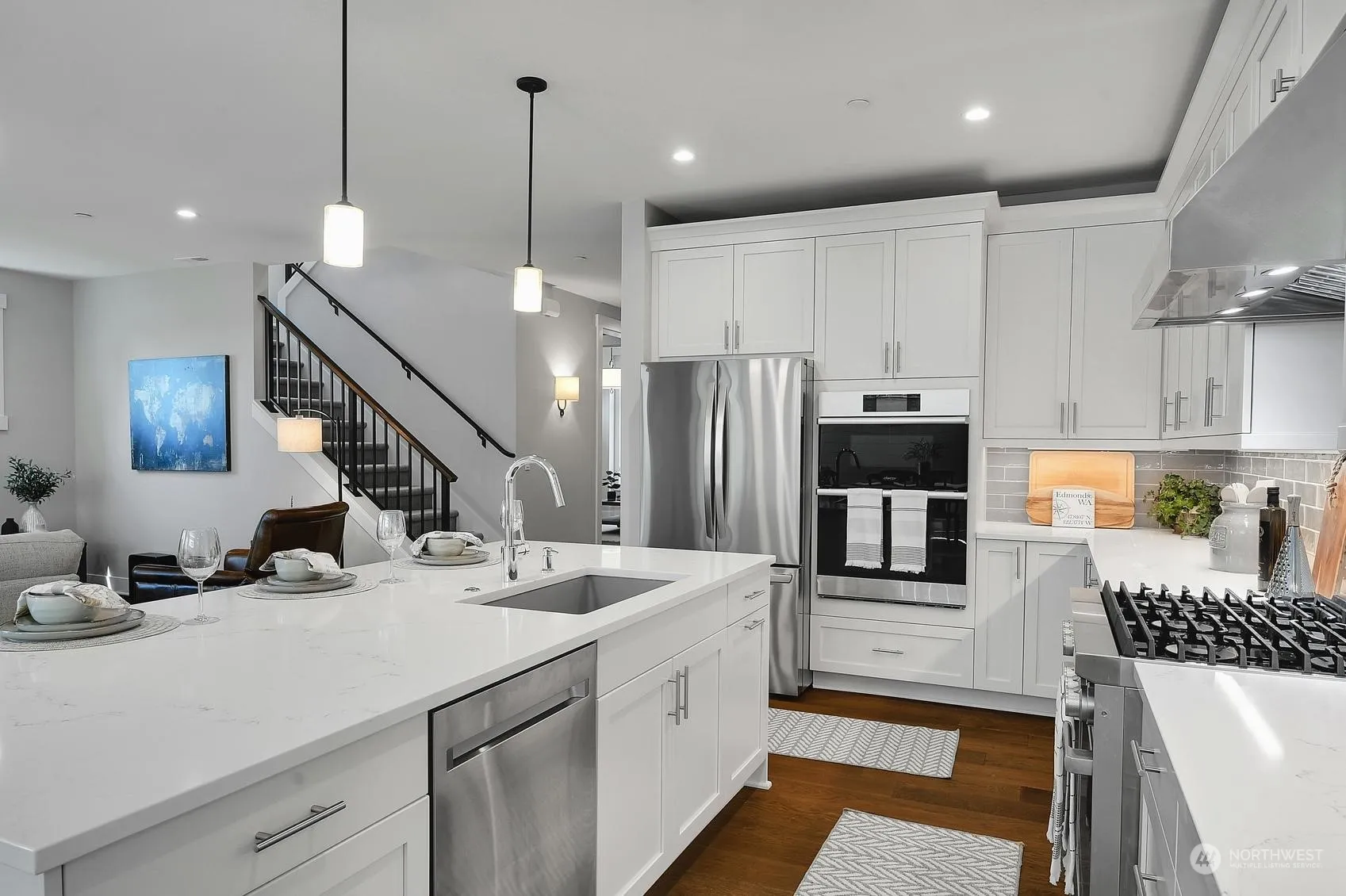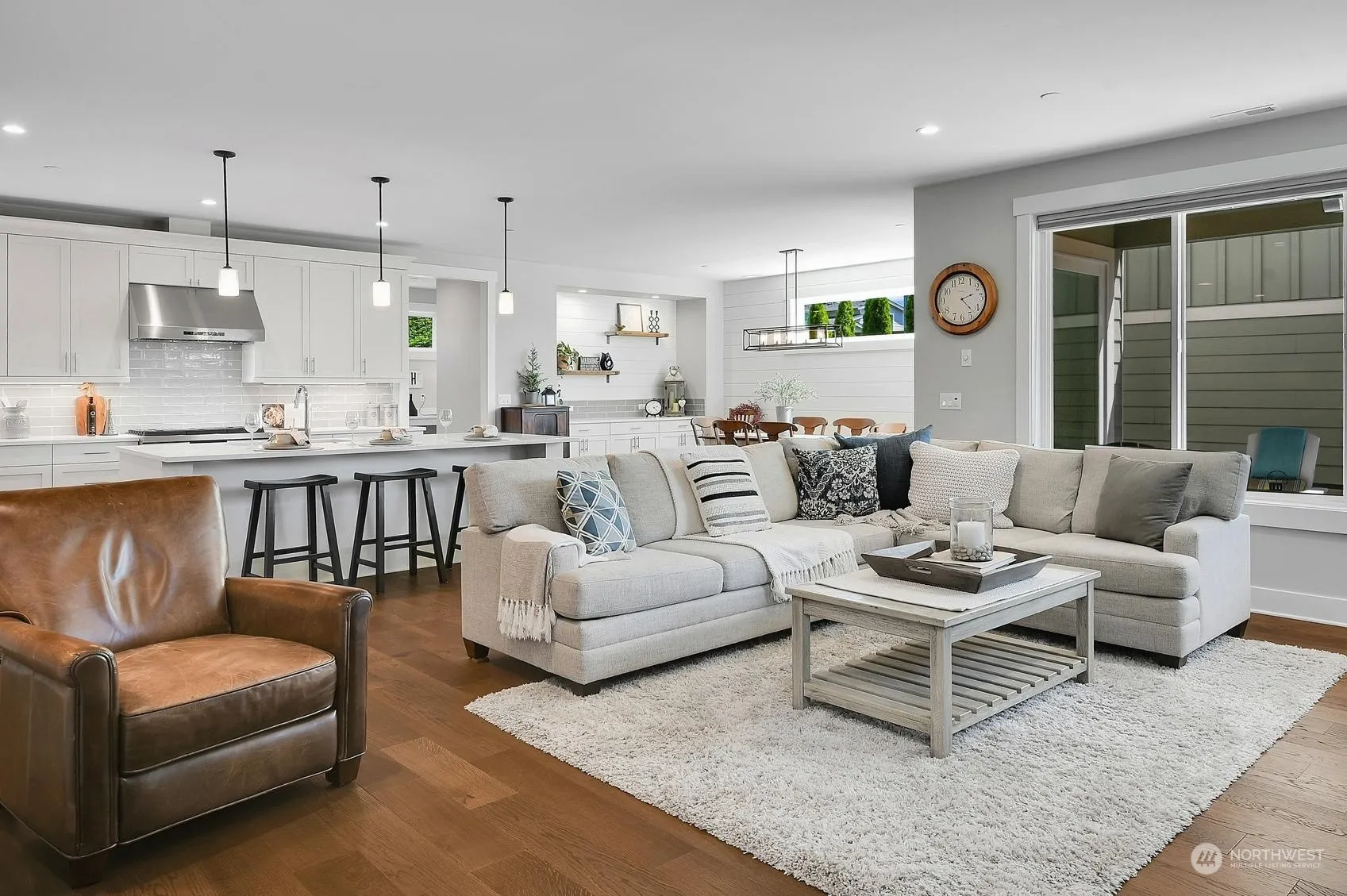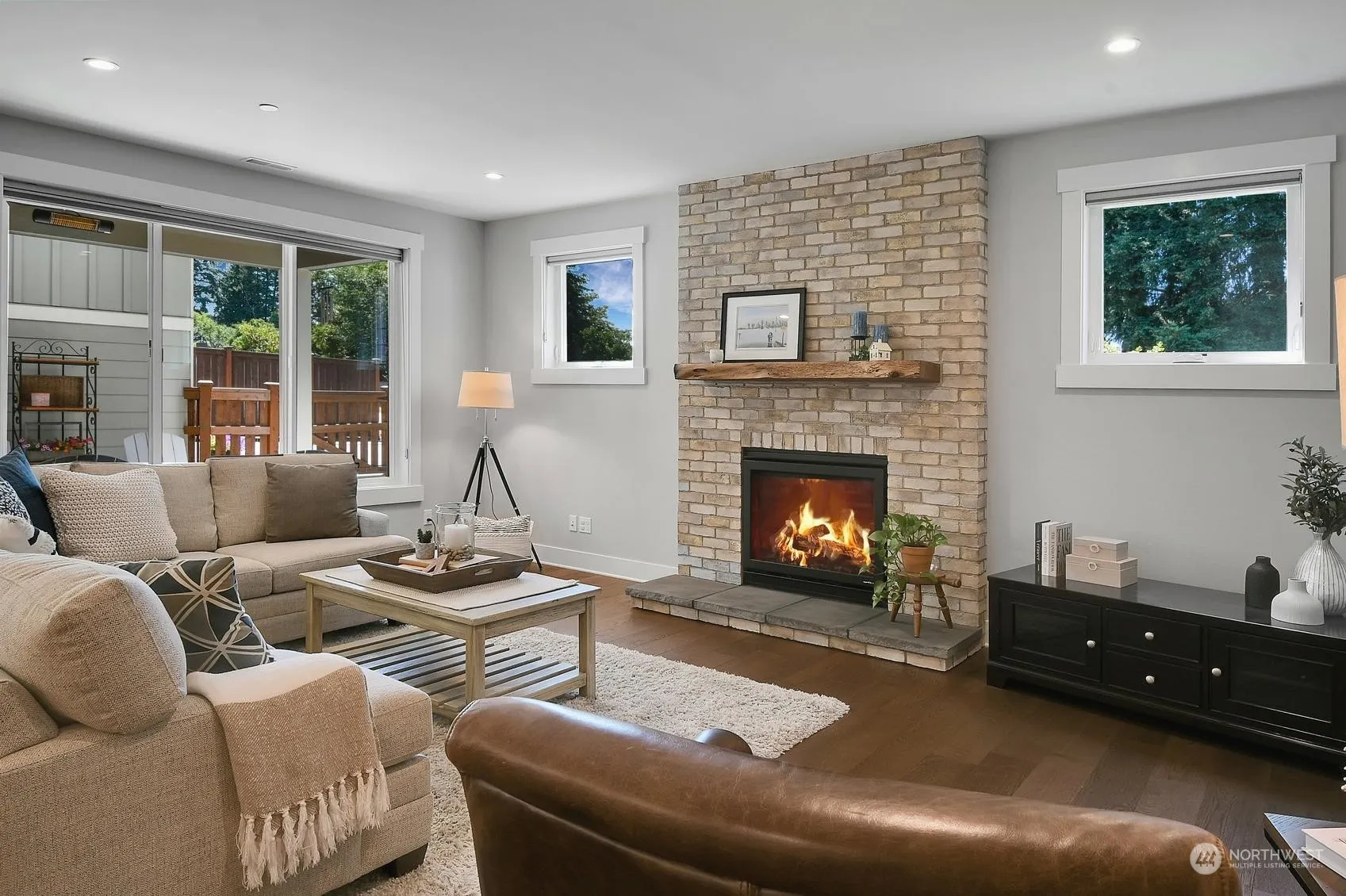 4-bed Builder’s own home in Edmonds features an open-plan design for modern living. Chef’s kitchen w/ huge island, SS Dacor appl, quartz counters & shaker cabinets. Oversized fireplace w/ floor-to-ceiling brick & live edge wood mantle. Built-in buffet. Dining has ship-lap wall & transitions to covered patio w/ built-in heater for year-round use. All beds have walk-in closets & ceiling fans! Retreat to the Primary Suite w/its own covered deck: peekaboo views & cedar plank details. 5-piece bath w/ rain shower & heated floors. Generous bonus w/ blackout shades for movie nights. 2-car attached garage w/ EV plus 2-car detached; insulated w/ 40 amps, possible ADU. No detail overlooked: solid core doors, soundproofing. Meticulously cared for.