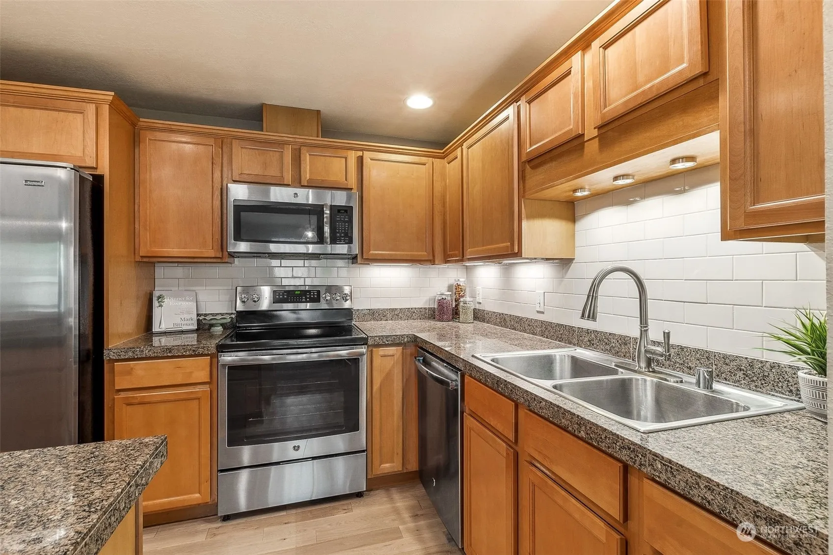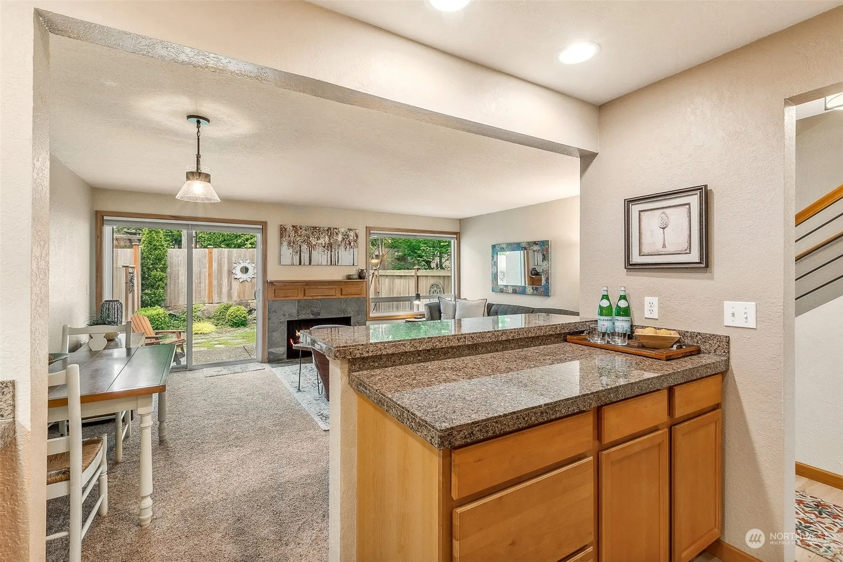 Enjoy the inviting ambiance and serene setting of this spacious townhome-style condo, nestled in the boutique community of Fir Groves, just moments to many Edmonds amenities. Updated kitchen w/crisp subway tile, granite counters, stainless appl’s & breakfast bar flows seamlessly to an open concept living/dining room with cozy fireplace & lovely outlooks to backyard greenery. Enjoy sunny summer evenings in the fenced yard, exercising your green thumb or relaxing on the patio. Two spacious Bedrooms up, including dreamy primary w/double closet, updated full bath & laundry. Rare, oversized, attached garage & 2 add’l parking spaces. So conveniently located w/EZ access to I-5, 99, transit & shopping/dining & downtown Edmonds.