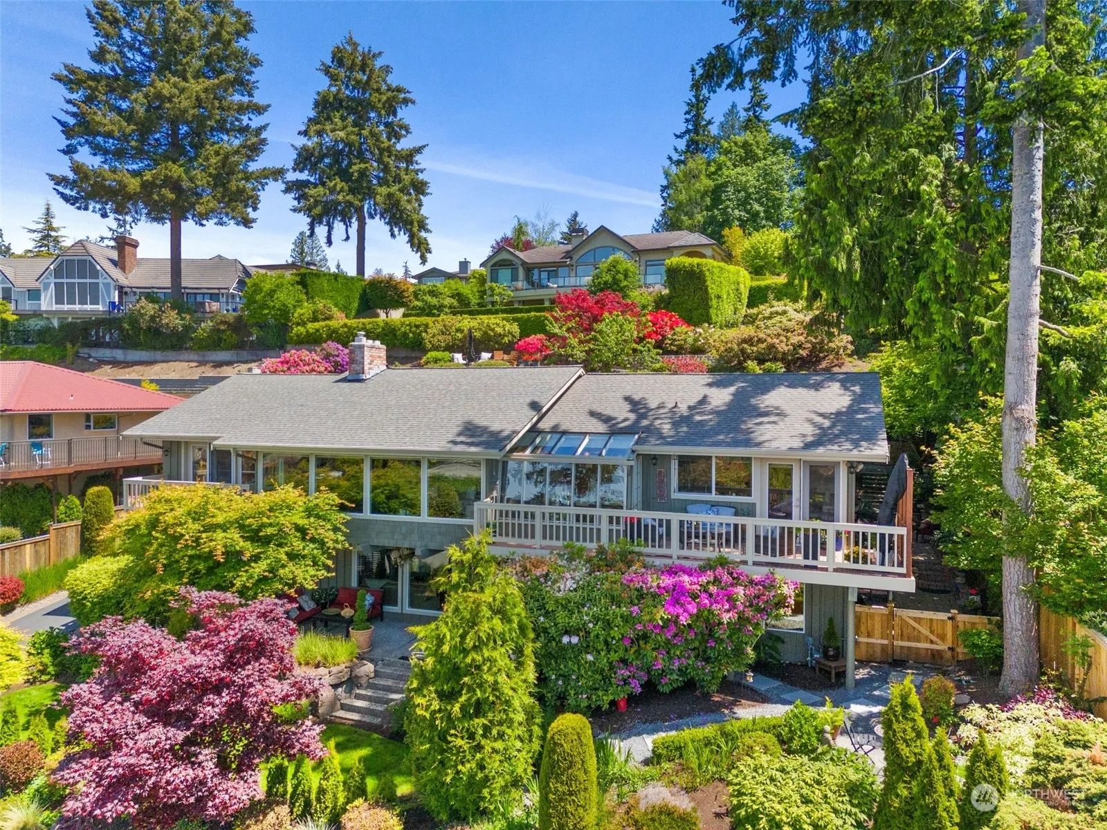 Stunning Puget Sound & Olympic views from end to end in this Emerald Hills beauty. A perfect floor plan w/ updates throughout. Vaulted ceilings, grand size living, dining & kitchen with sweeping views. You will enjoy entertaining in your chef’s kitchen w/ granite counters, SS appliances, abundance of cabinets w/ pantry & french doors to deck. Main floor includes master suite w/ bath & walk in closet along w/ 2nd bedroom. Lower level consist of spacious family room w/ 3 beds, bath w/jetted tub & double walk in shower, full kitchen w/eating bar, dining & separate entrance (MIL). Outdoor oasis has beautiful mature landscaping & 5 patio areas w/ an amazing “view deck”. Oversized 2 car garage w/storage. Walk to the heart of downtown Edmonds.