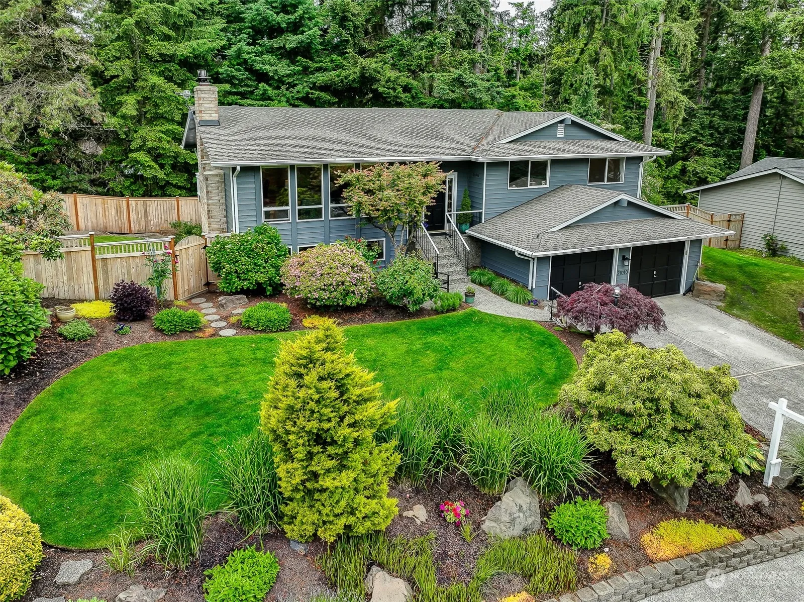 Located on an attractive cul-de-sac in the 5 Corners neighborhood, bordering on a greenbelt and 4 minutes from downtown Edmonds. Potential conversion to an ADU in the downstairs rec room. An oversized garage with amazing workbenches, shelving, and extra storage area. This home has been thoroughly updated! New exterior and interior paint (including doors and closets), new finish trim, new and newer engineered carbonized bamboo, new carpet, new quartz counters, new built-in oven/microwave/induction cooktop. Downstairs has a level access with exterior entrance and garage entrance, a large bedroom, large rec room, 3/4 bath. Outside, enjoy newer fencing, a large Azek deck, an irrigation system supporting an “Edmonds in Bloom” award landscaping.
