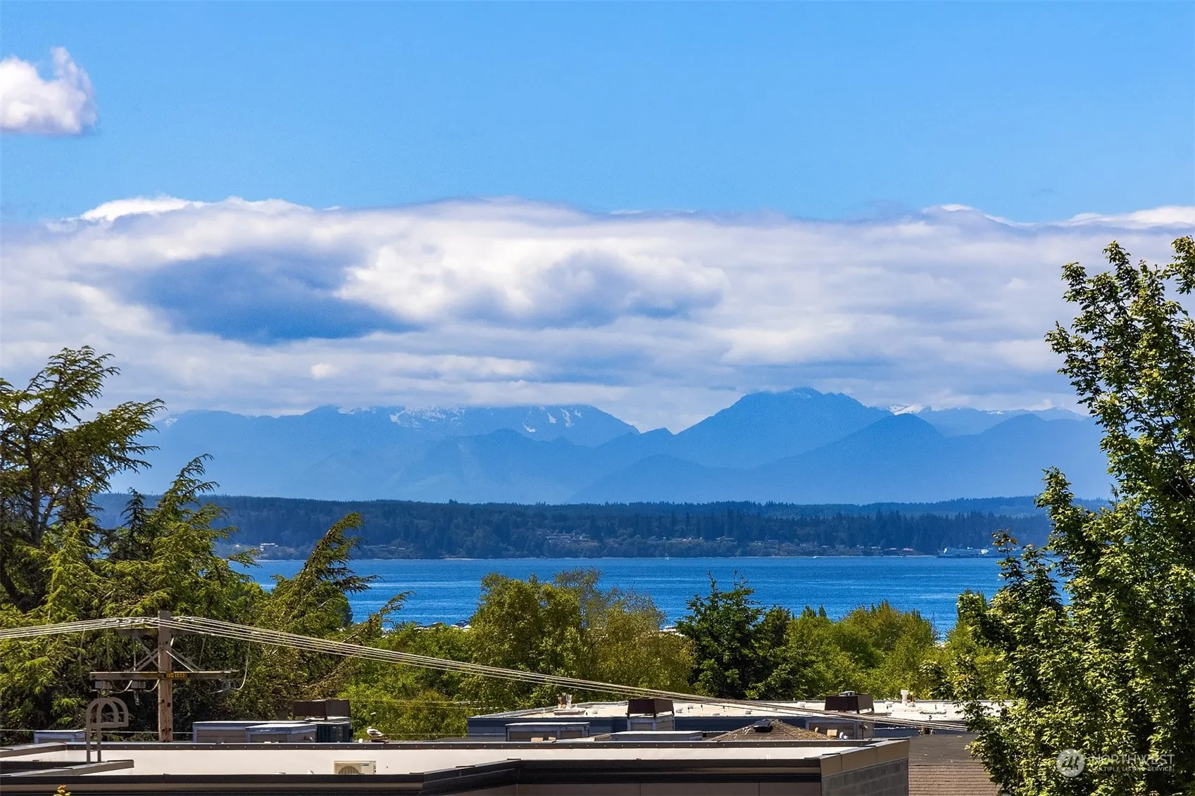 Majestically perched over iconic 5th Avenue in the heart of highly desirable downtown Edmonds, with mesmerizing unobstructed 180° views of the Puget Sound & Olympic Mountains, this immaculate top-floor jewel box boasts one of the most scenic vantage points in town! Thoughtfully oriented floor plan with hardwoods throughout features stunning living room with wall-to-wall floor-to-ceiling view windows opening to covered glass-rail balcony. Gorgeous cherry, granite & steel kitchen opens to view dining room. Chic full bath & in-unit laundry. Covered parking with storage. Extensively upgraded in 2000, this quaint, secure, low-turnover, high-demand, 8-unit community is well-managed with low $325 HOA dues. Walk to shops, dining & beachfront parks!