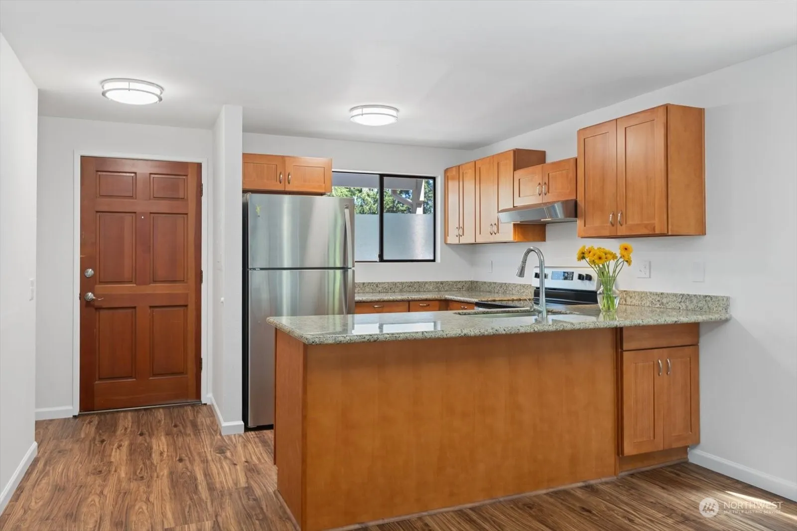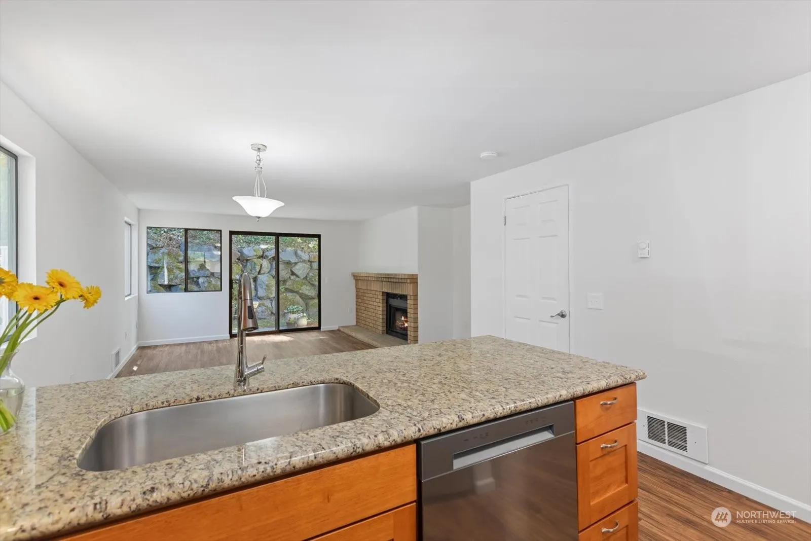 Setback off Edmonds Way, and surrounded by wooded greenery, this updated end-unit townhome features a covered porch entrance to open living & dining area. The wood-burning fireplace, new vinyl plank floors and easy access to private patio add to the main floor appeal. Kitchen boasts lots of storage including walk-in-pantry, granite counters & stainless steel appliances (2 of 3 are brand new). Upper level has two spacious bedrooms, large full bathroom, full size washer / dryer and new carpet & water heater. Assigned parking directly adjacent to unit, new roof on this building in 2020, storage unit & no rental cap. Truly turn-key! Relax and enjoy the convenient Edmonds location near dining, schools, shopping, waterfront & commute routes!