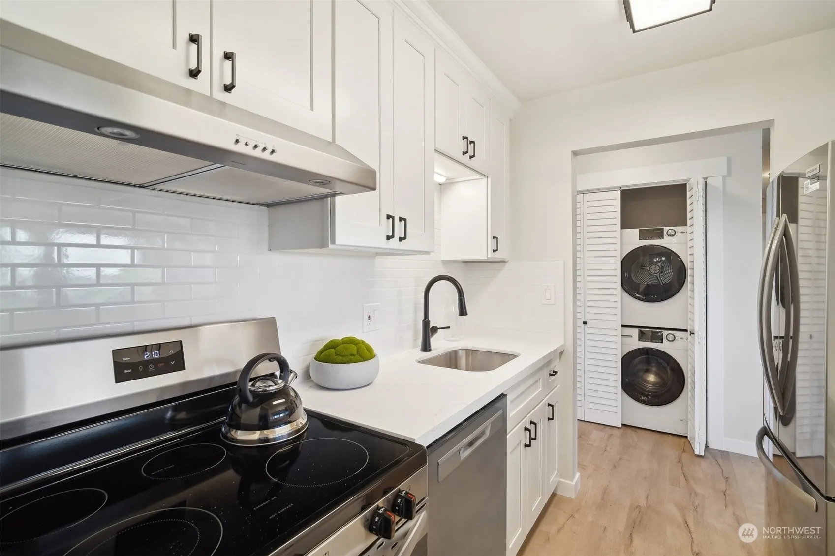 Welcome to Highland Park! Fully remodeled 2bd unit with no expense spared or detail missed. Desirable west facing view with extra large private balcony. Brand new kitchen boasts stainless steel appliances, Quartz counters and high-end cabinets, fixtures. New LVP flooring and carpet throughout with updated fireplace. Quiet community in the heart of the Edmonds Bowl, walking distance to town. Amenities include outdoor heated pool and lounge room. Designated off street parking space and extra large storage closet. Building has undergone recent major capital improvements including new siding, plumbing, and balcony updates. $72,000 special assessment has been paid in full!