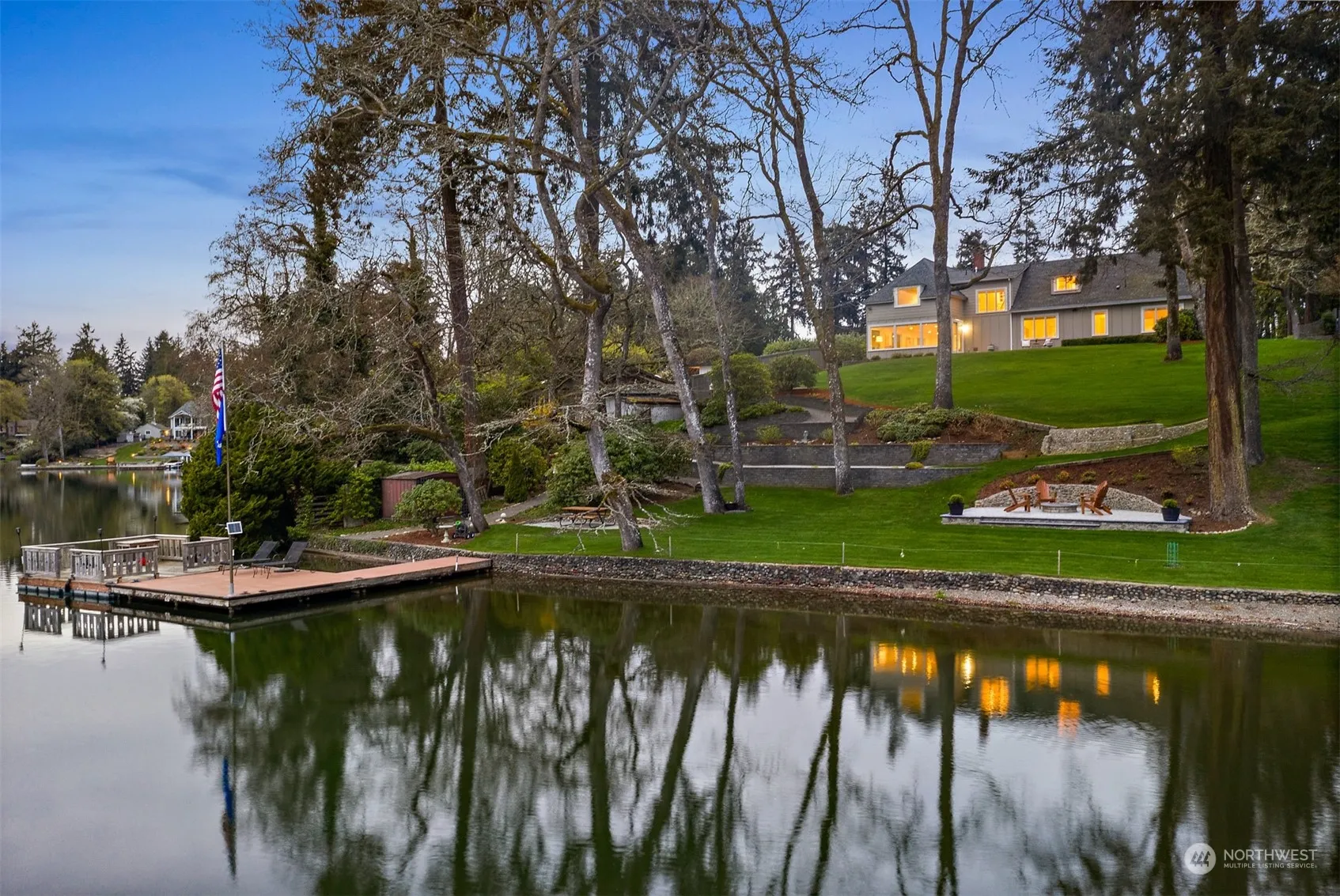 Rare to market, this private legacy estate offers unmatched beauty w/~3/4 acre of parklike grounds. 95 ft of Lake Steilacoom frontage, you will enjoy spacious main level living w/breathtaking views from nearly every room. Primary, office, living + kitchen on main w/bedrooms + ADU upstairs. Thoughtfully renovated while preserving the heritage + charm. Abundant natural light, heated cement flrs, original fir flrs + the architectural details all provide a tranquil sanctuary. The heart of the home has everything needed for elevated cooking. Secluded primary retreat features ensuite, WIC + laundry. Entertainer’s dream w/many indoor/outdoor gathering spaces. The lake, private dock + spectacular sunsets promise endless days of lakeside enjoyment!