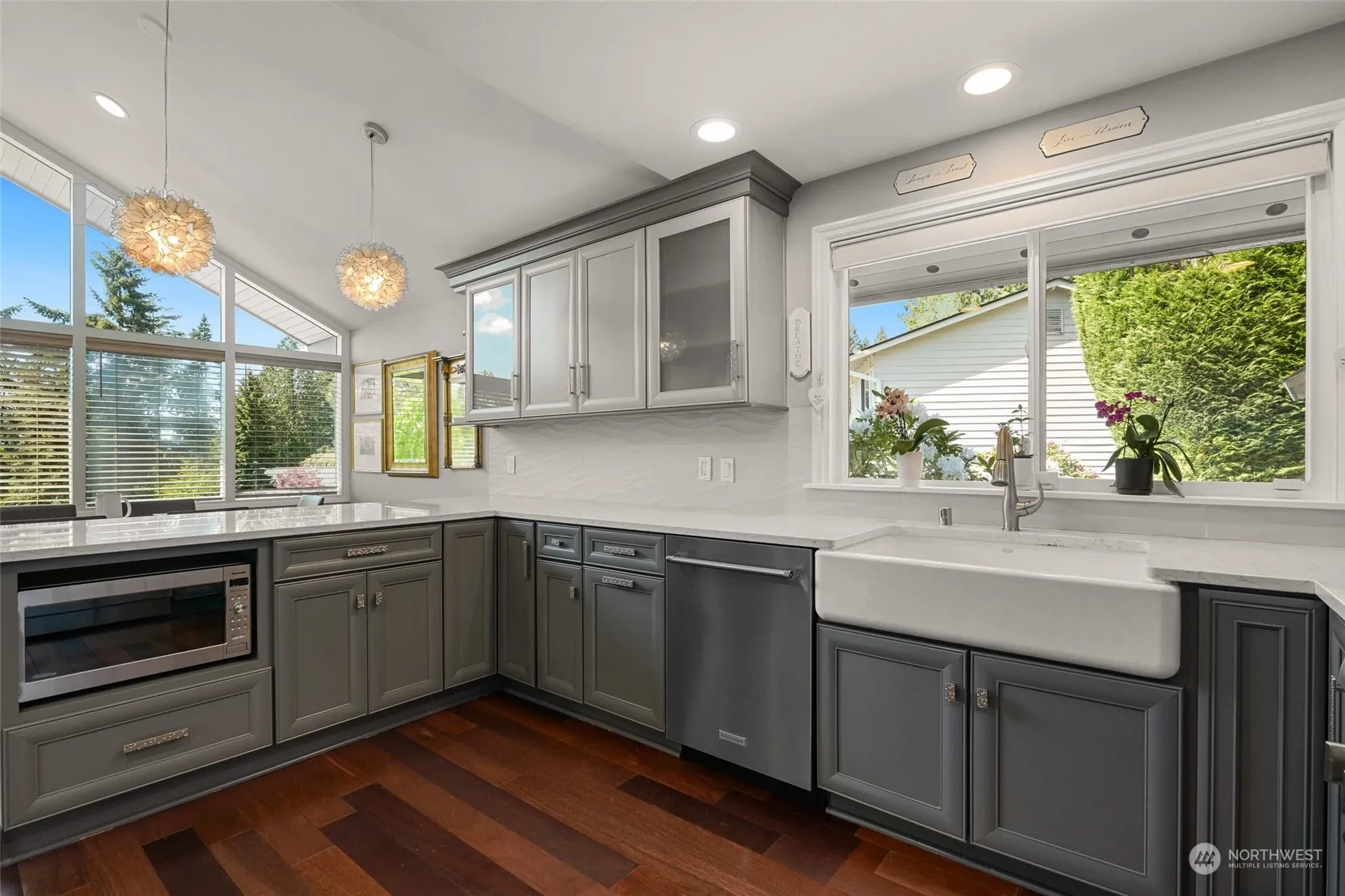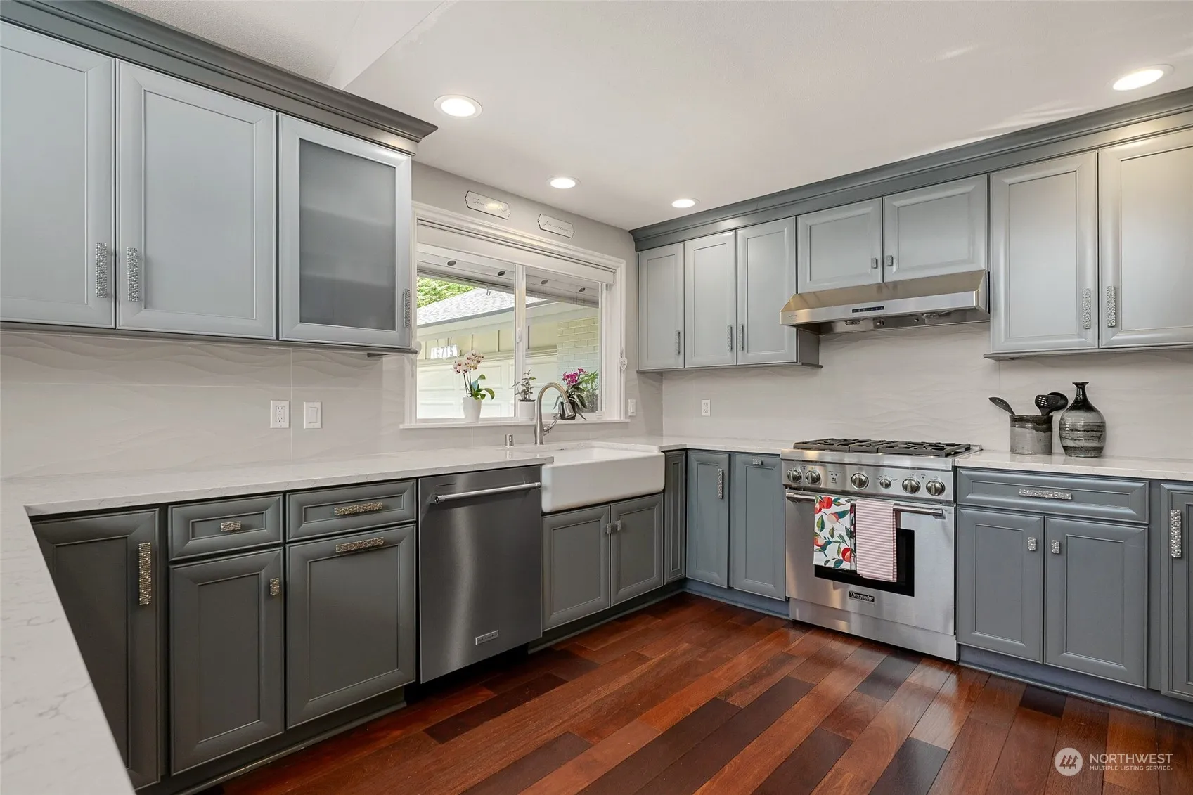 Super spacious, fully remodeled home at the heart of Education Hill. Pacific NW mid century style with vaulted great room filled w natural light from beautiful Western exposure. Kraft maid cabinetry in spacious kitchen w stainless appliances. Brazilian chestnut hardwood floors throughout upper floor. Hunter Douglas blinds. Great floorplan w 3 bedrooms up incl remodeled hall bath, primary suite w all new ensuite & walk in closet. Walk out lower level has expansive rec room, 2 additional bedrooms w sitting room & full bth. Large laundry area w expanse of cabinetry ideal for creating a 2nd kitchen area. AC. Expansive deck, patio & lawns perfect for entertaining. Great location close to transport, incoming light rail, restaurants & retail.