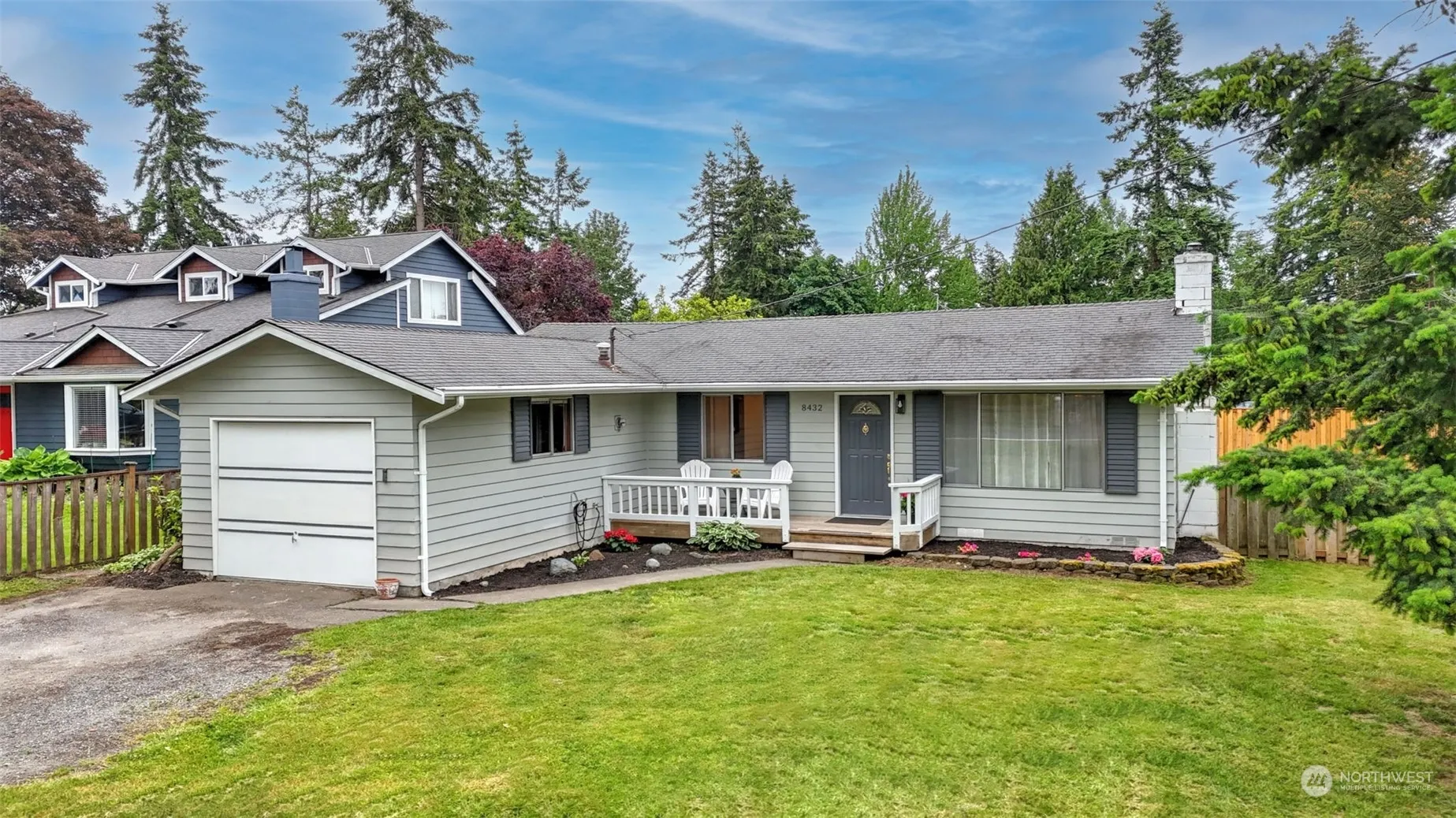 Presenting a delightful Edmonds rambler on sprawling corner lot! This home exudes charm and functionality, the inviting layout features three bedrooms and 1.75 baths, complemented by two distinct living spaces. Main living room has hardwood floors, gas fireplace and is bathed in natural light. Family room with wainscoting and new vinyl plank flooring. Primary offers attached bath. New bathroom vanities, new lighting fixtures throughout, new interior paint. 1 car garage with extra storage space and driveway for additional parking. Outdoors finds a generous fully fenced yard with 700 sq ft rear deck including a covered bar area, all ready for summer entertaining. Tons of space for potential gardening. Minutes from all amenities!