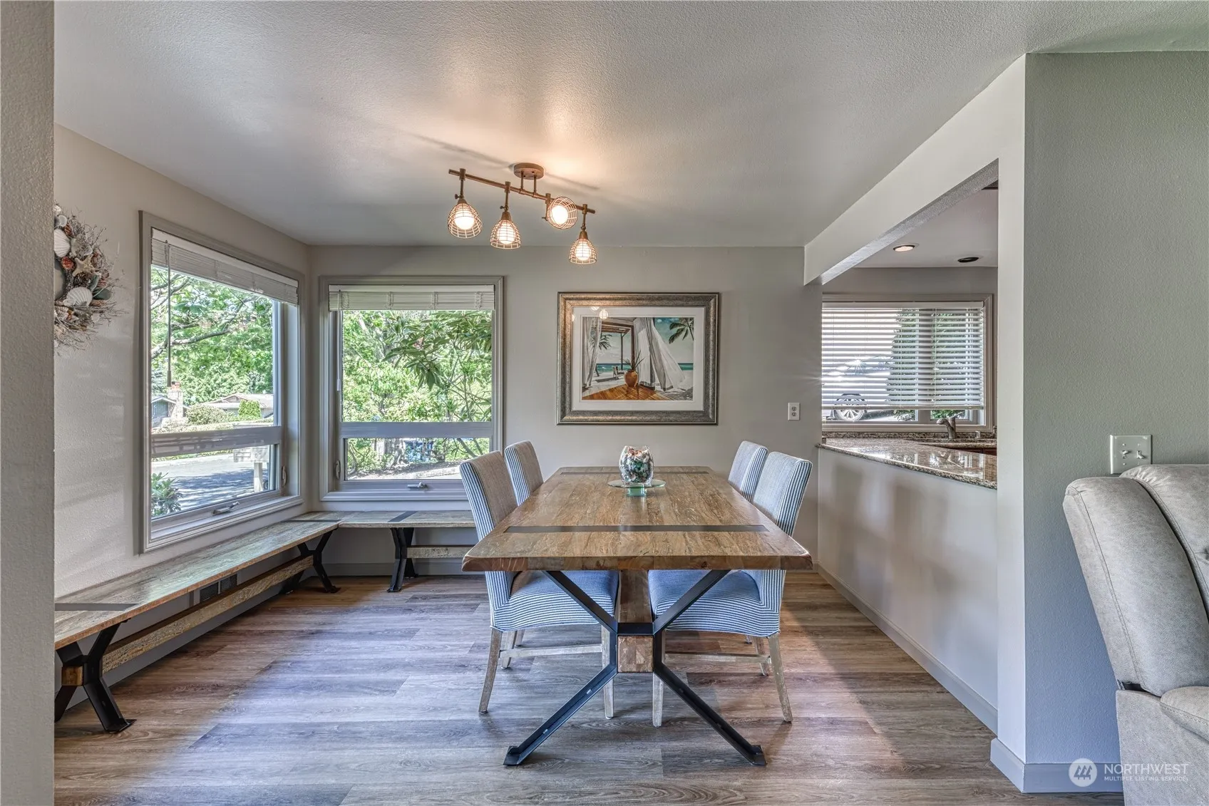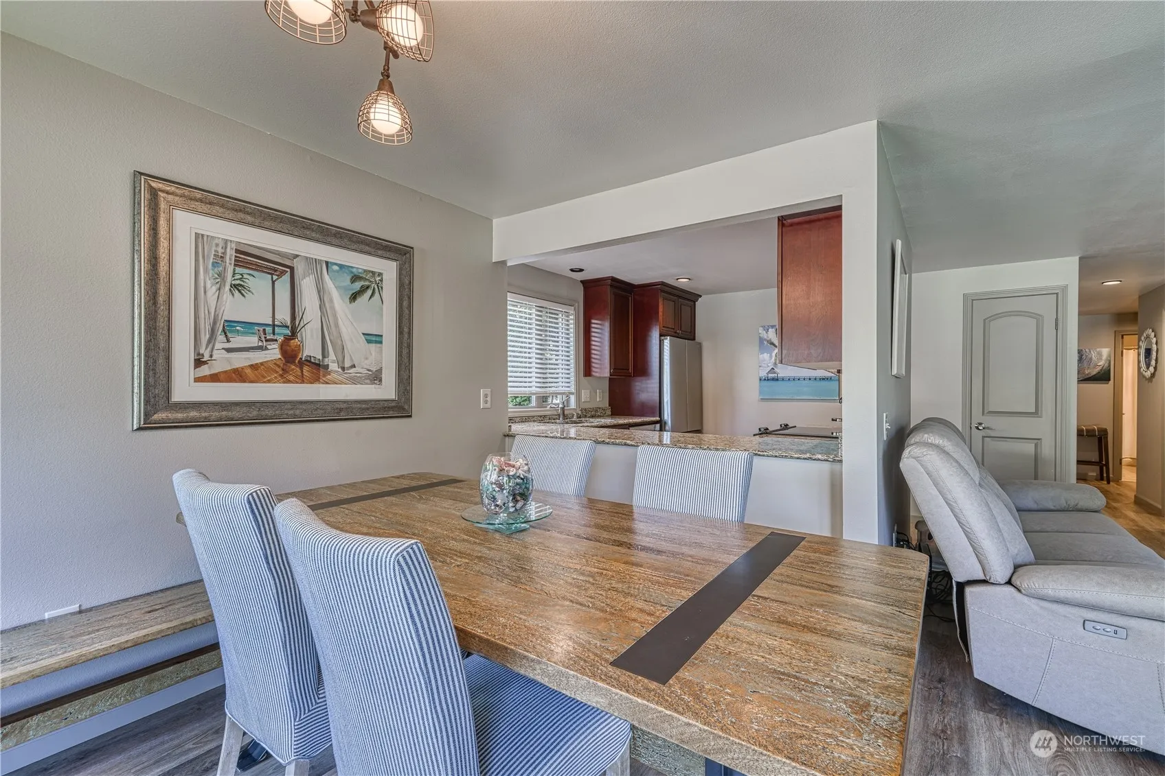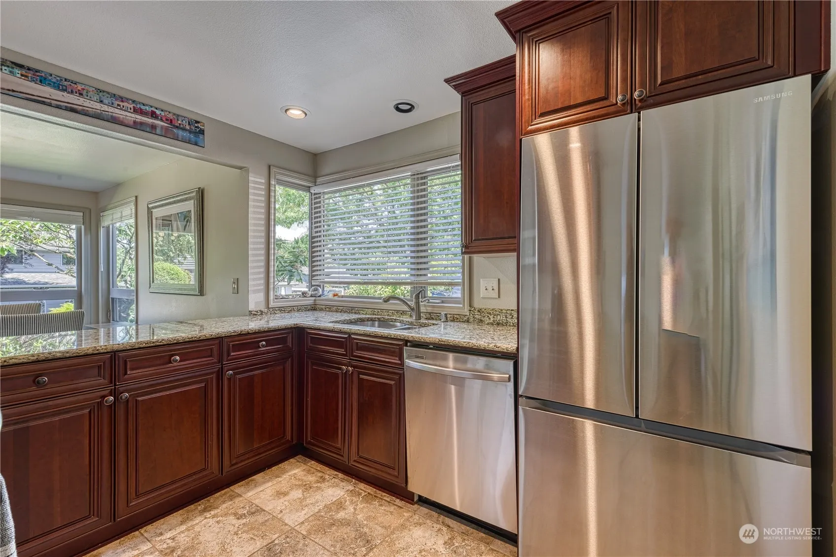 Welcome to The Calais, nestled within a boutique complex of just 12 units, this 2-bed, 1.75-bath gem epitomizes upscale urban living. Bathed in natural light from west-facing exposure, this main floor, end unit offers seamless indoor-outdoor living w/a walk-out patio. Open floor plan with new vinyl plank flooring throughout lives comfortably. The kitchen, open to the dining room, features stunning granite counters, rich cherry cabinets, & stainless appliances. Primary bedroom w/ensuite & walk in closet & large additional bedroom. 2 parking spaces including one covered w/additional on street parking. Tucked away on a quiet dead-end street, yet just blocks from downtown Edmonds’ vibrant array of restaurants, shops, and waterfront attractions.