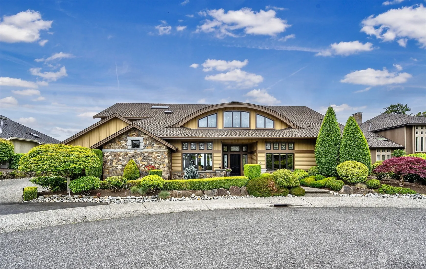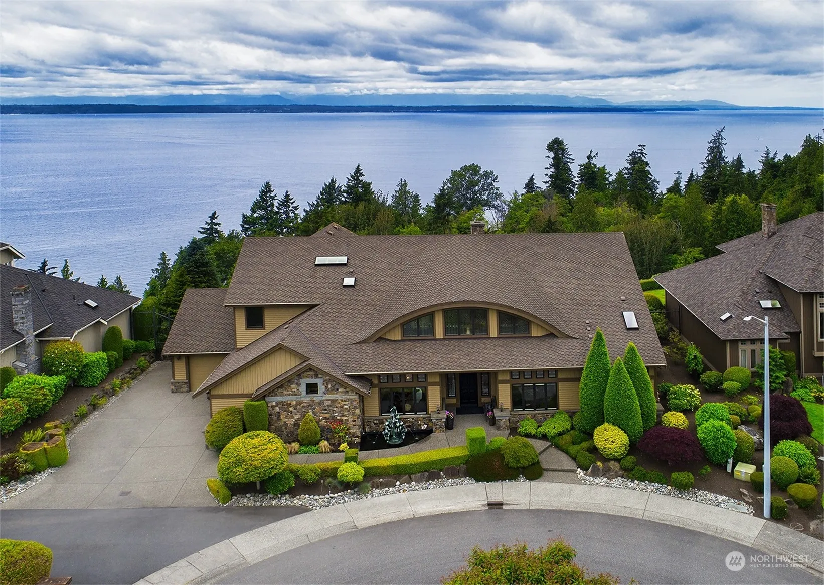 Experience unparalleled luxury in this magnificent custom estate located in Picnic Point-Edmonds, offering panoramic views of the Sound and Mountains. Built in 2006, this masterpiece sits on over an acre of bluff view property, providing both privacy and grandeur. The dramatic view living room features 20′ ceilings, striking chandelier, stately fireplace, and French doors leading to a spacious view patio. The spectacular chef’s kitchen is a culinary dream, enhanced by a formal dining room and wine room. The vast main floor primary ensuite is a sumptuous dream sanctuary. Ascend the grand staircase to enjoy barrel-vaulted ceilings, leaded glass windows, view deck, media room, office, and 3 ensuite bedrooms with walk-in closets. Simply Superb!